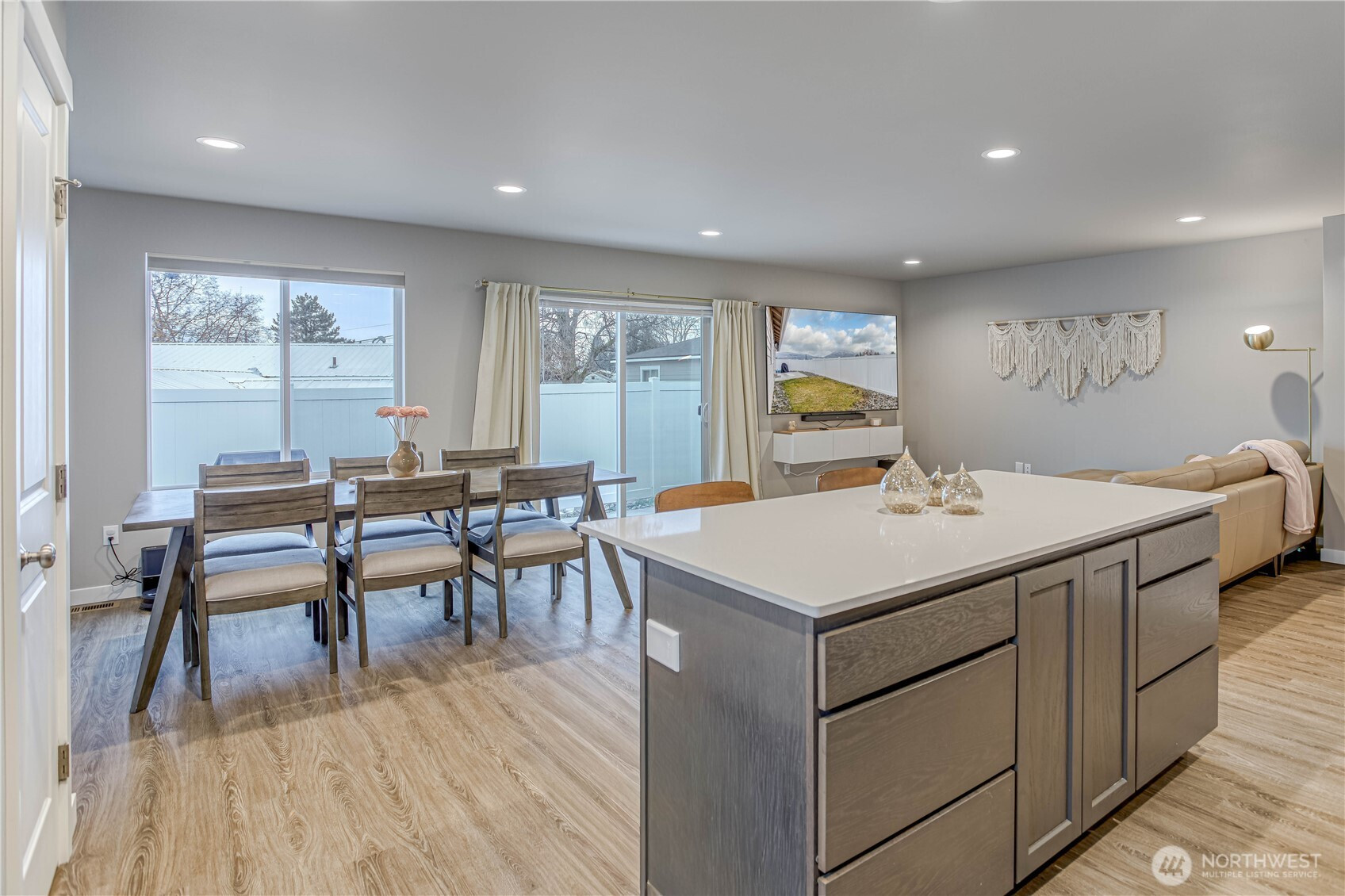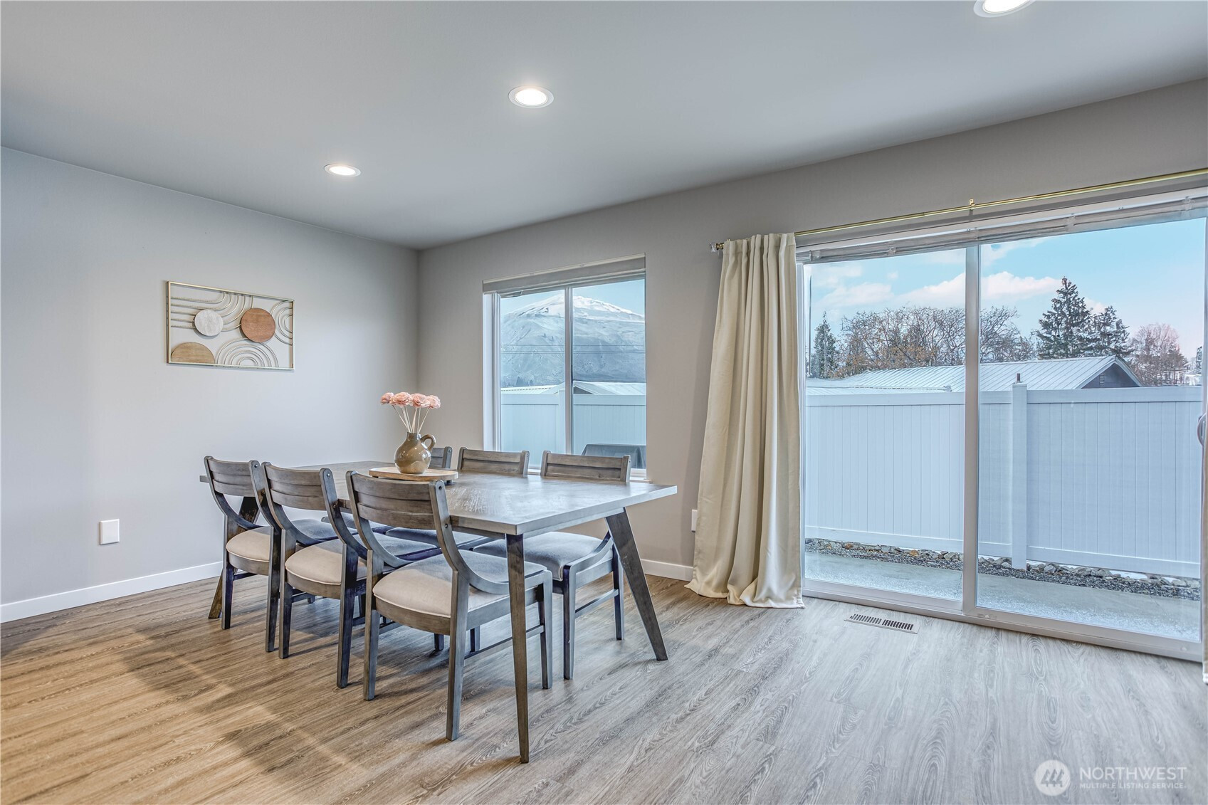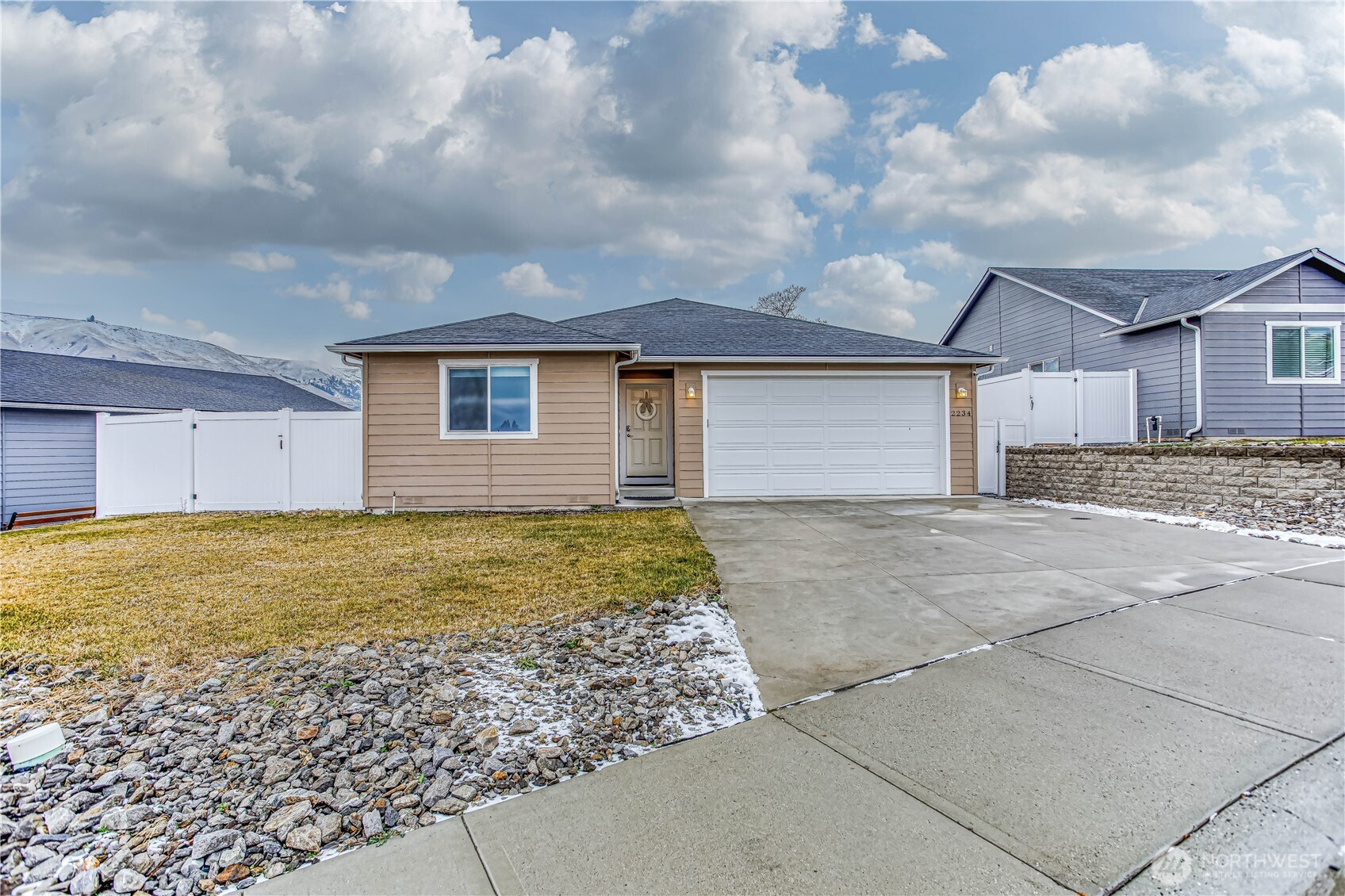 Experience easy, single-level living in this stunning 1,382 sq ft home. The modern open-concept design seamlessly connects the kitchen, dining, and living areas, creating an inviting space filled with natural light. Sleek quartz countertops and high-end appliances, including a Bosch refrigerator, elevate the kitchen's style. Custom top-down/bottom-up blackout blinds offer both privacy and comfort throughout the home. Located on a 0.12-acre lot, this 3-bedroom, 2-bath residence offers beautiful mountain views and a peaceful atmosphere. Situated in a welcoming community, this property perfectly balances modern luxury with a serene setting. This is a rare opportunity for a move-in-ready home that prioritizes both function and beauty.