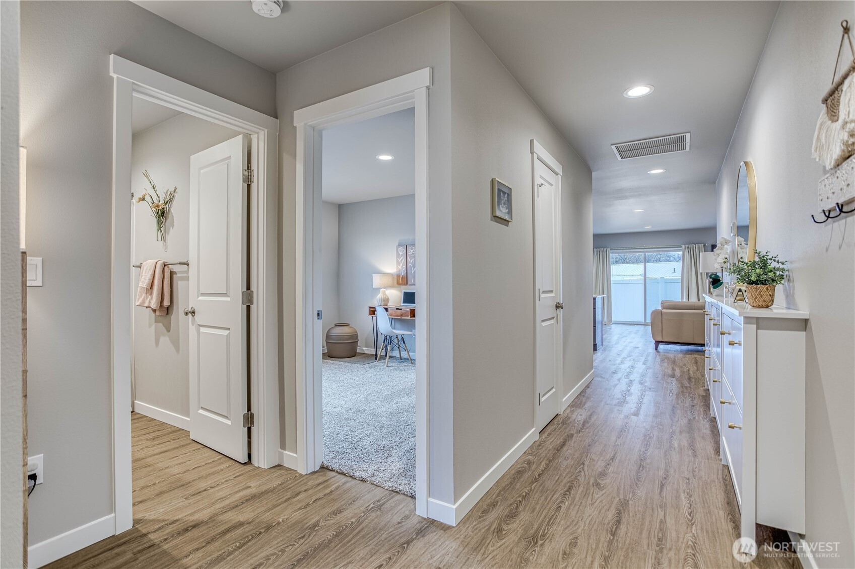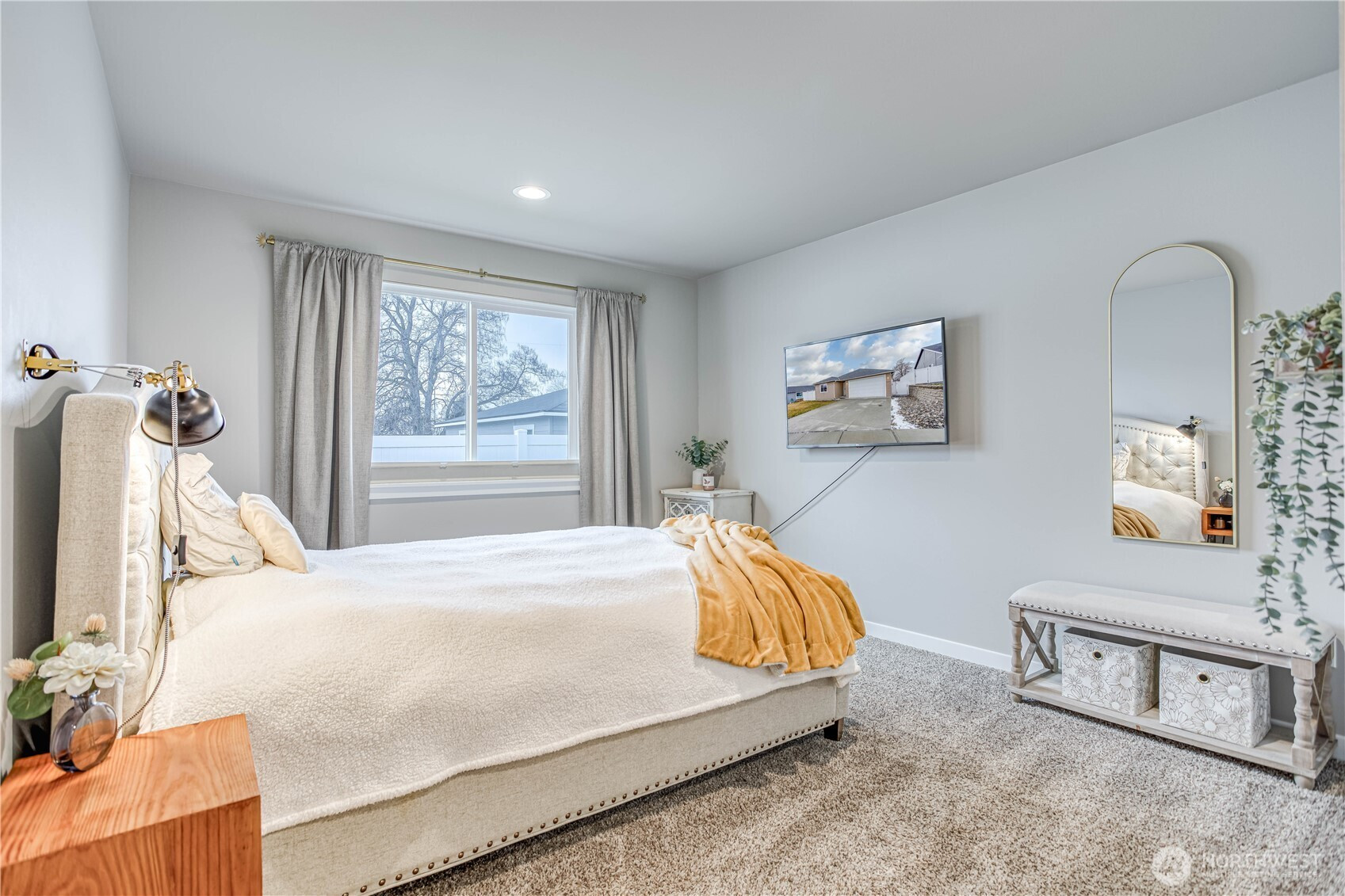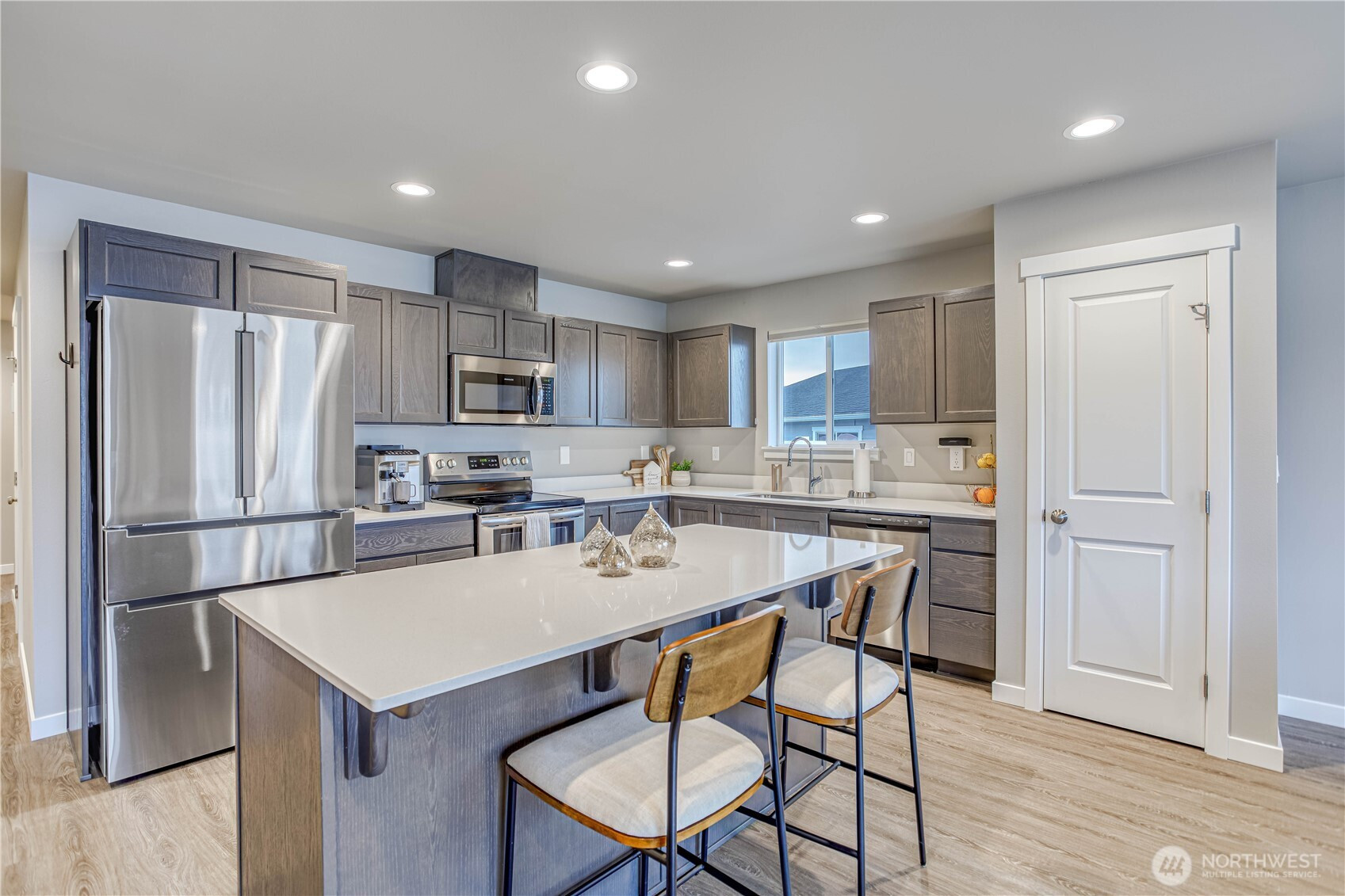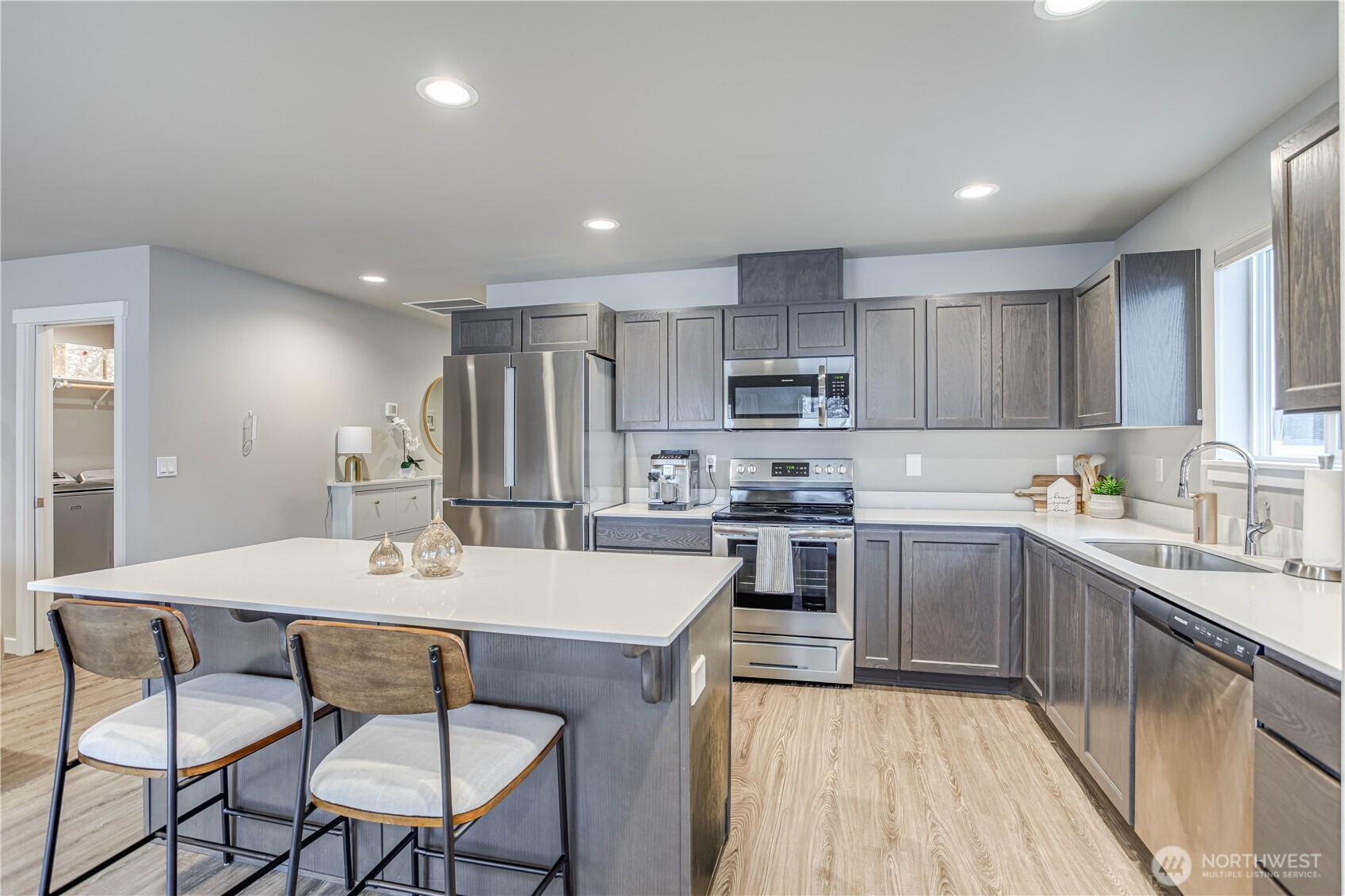 Experience easy, single-level living in this stunning 1,382 sq ft home. The modern open-concept design seamlessly connects the kitchen, dining, and living areas, creating an inviting space filled with natural light. Sleek quartz countertops and high-end appliances, including a Bosch refrigerator, elevate the kitchen's style. Custom top-down/bottom-up blackout blinds offer both privacy and comfort throughout the home. Located on a 0.12-acre lot, this 3-bedroom, 2-bath residence offers beautiful mountain views and a peaceful atmosphere. Situated in a welcoming community, this property perfectly balances modern luxury with a serene setting. This is a rare opportunity for a move-in-ready home that prioritizes both function and beauty.