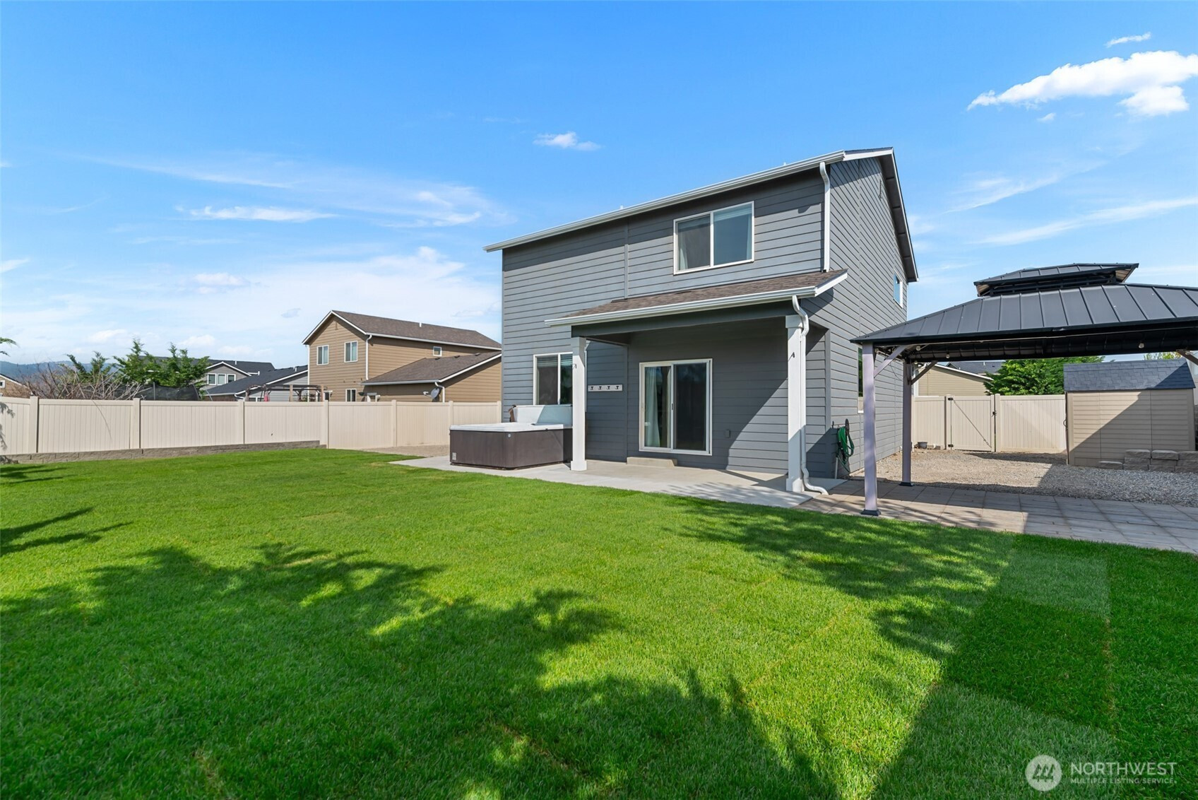 Beautiful home tucked away on a a quiet cul-de-sac that is move in ready! Spacious and well maintained 3 bedroom, 2.5 bath home with all bedrooms conveniently located upstairs for added privacy. The main level features a functional layout with a bright kitchen, dining area, and inviting living room complete with a cozy fireplace - perfect for everyday living and entertaining. Enjoy the outdoors with a newly installed lawn, sprinkler system & irrigation. Fully fenced expansive lot, RV parking w/ hook up, covered pergola, plus a storage shed for all your extras. Located near a shared sport court, this home offers both comfort and recreation in one great package!