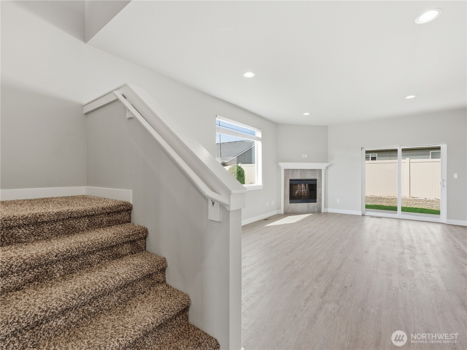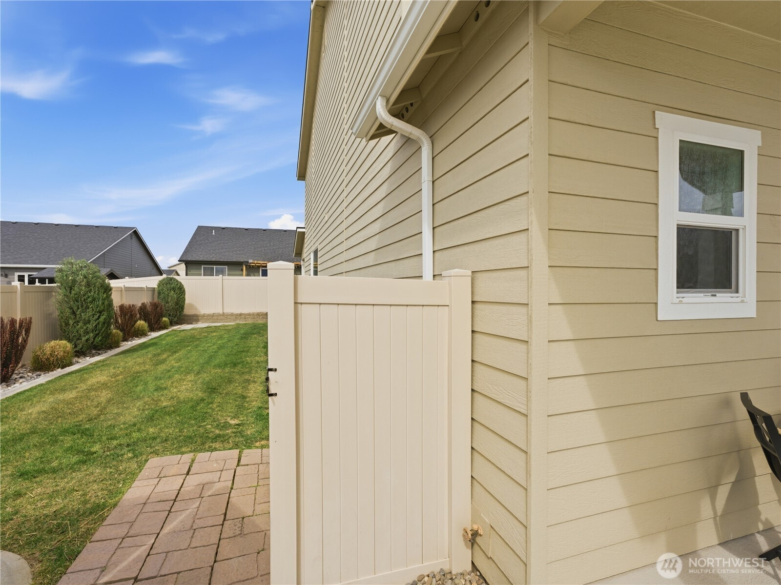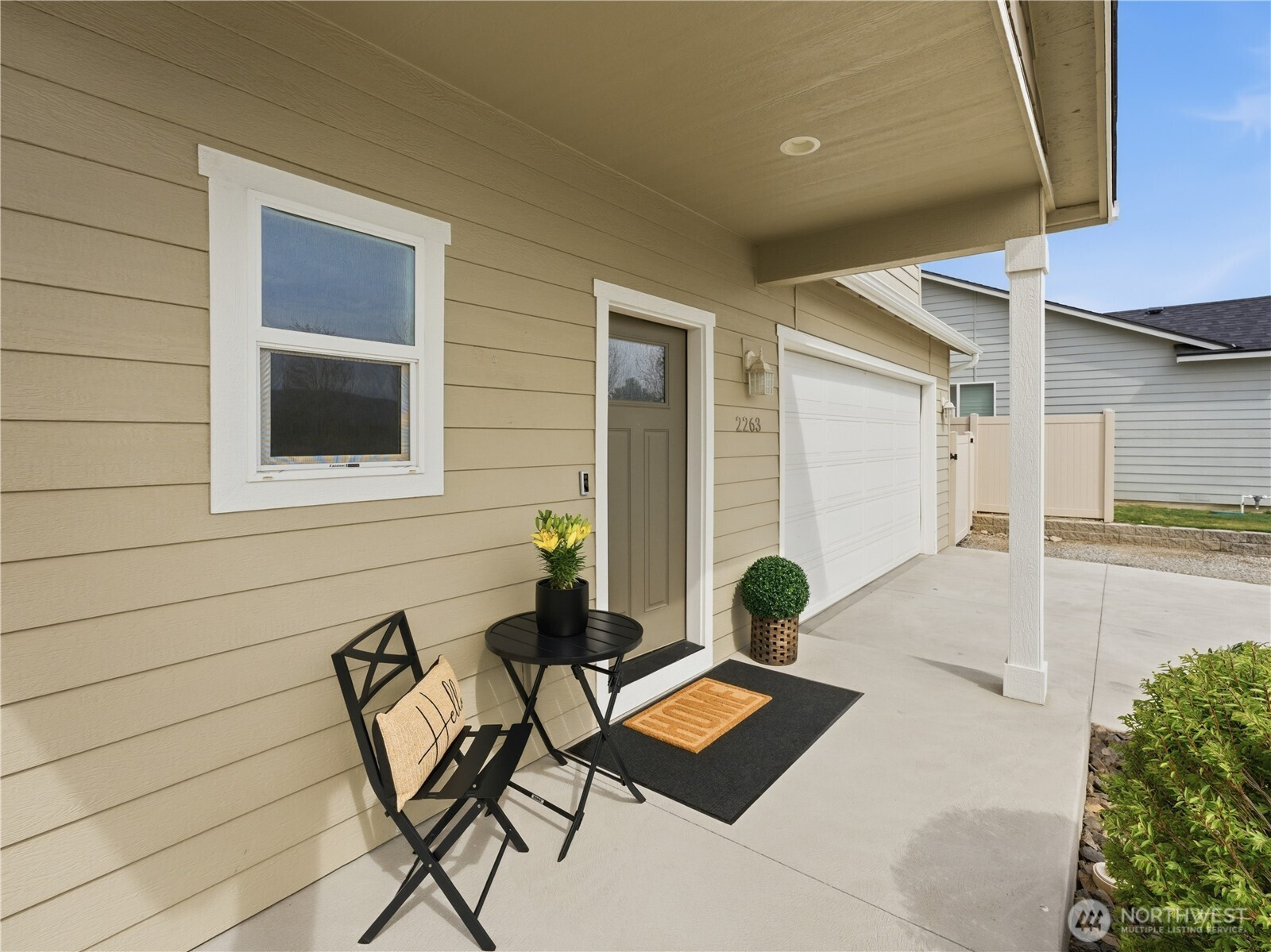 This adorable two-story home is better than new and truly move-in ready. The main level features durable luxury vinyl plank flooring, a cozy electric fireplace, and a convenient half bath. The open-concept kitchen shines with granite countertops, stainless steel appliances, and an eating bar—perfect for everyday living and entertaining. Upstairs, all three bedrooms, two full baths, and the laundry room are thoughtfully located together for added convenience. The spacious primary suite includes dual sinks, a large walk-in closet, and an additional closet for extra storage. Enjoy outdoor living with a covered patio, fully fenced backyard, and irrigation water. Ideally located near schools and shopping, this home also sits directly across from the neighborhood park—offering easy access to outdoor recreation. Don’t miss this fantastic opportunity!