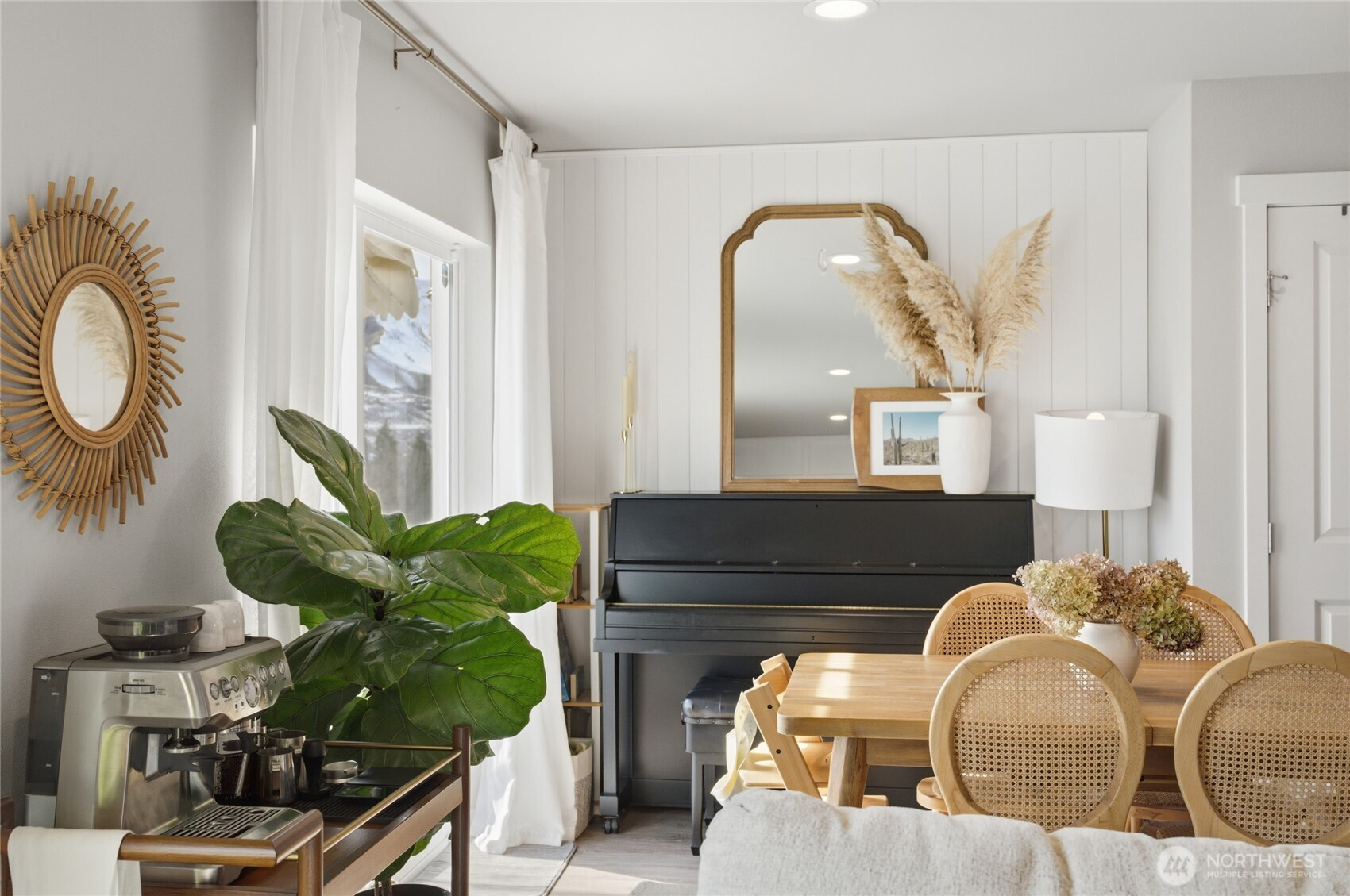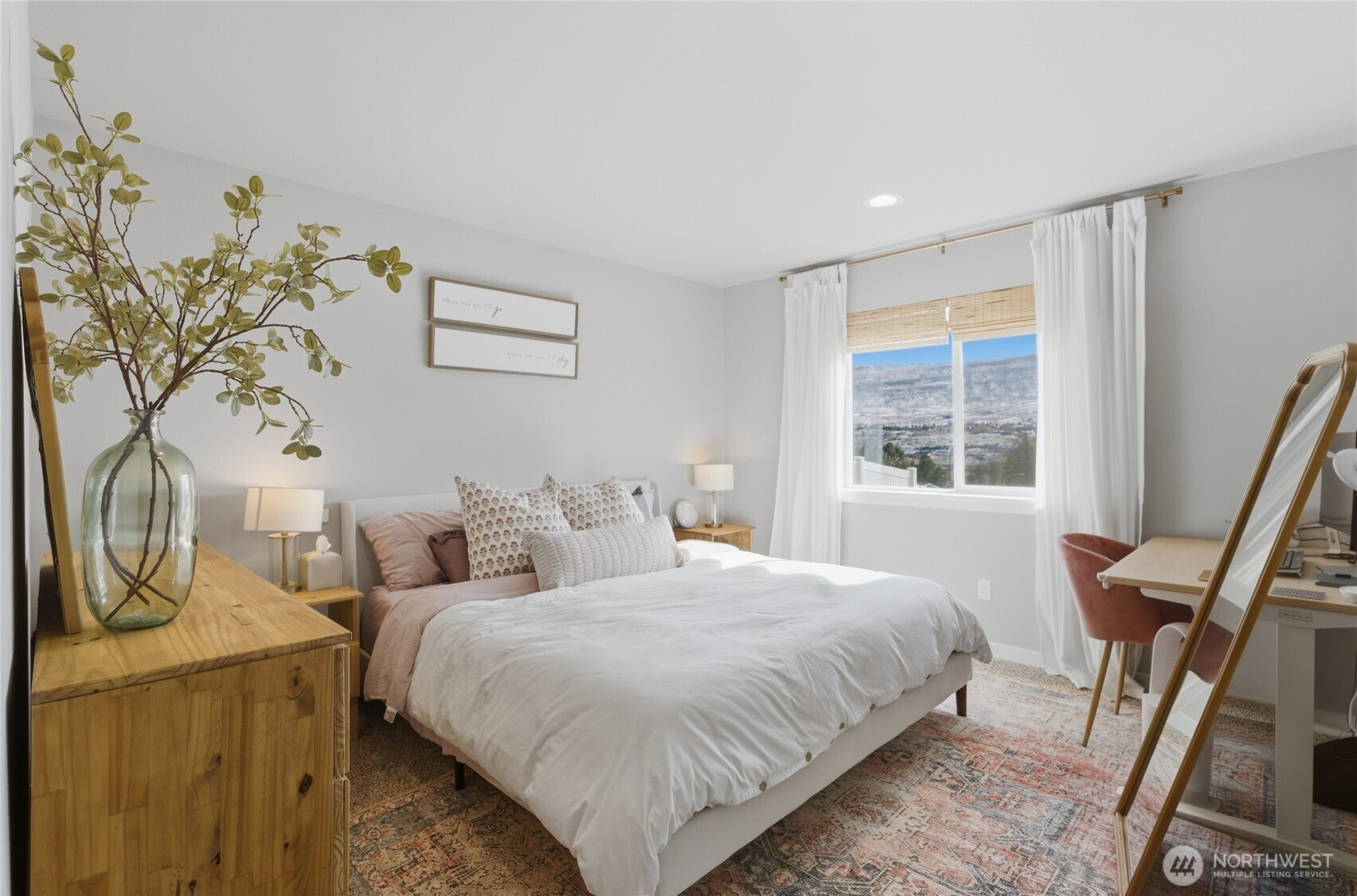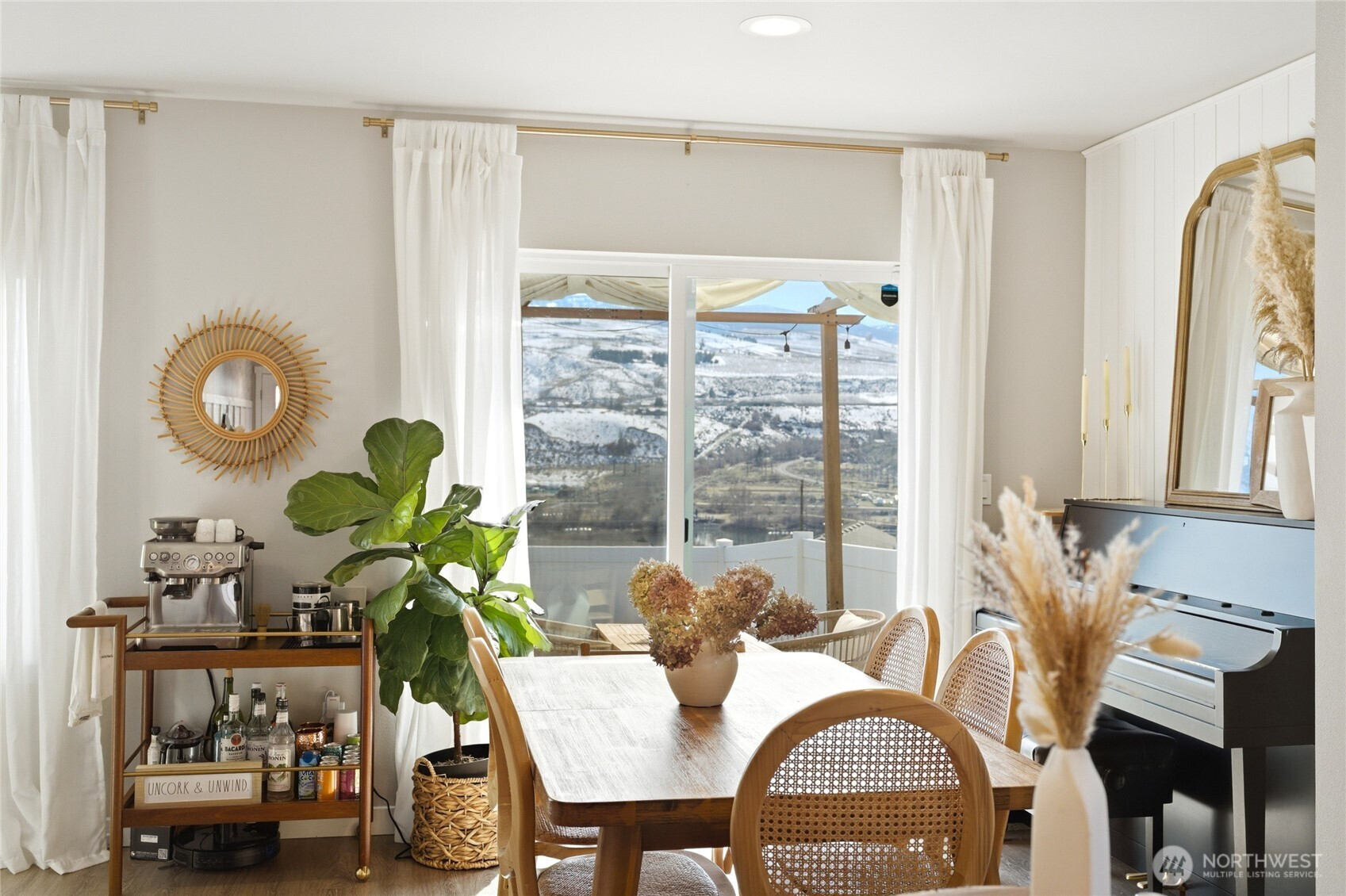 Fantastic Columbia River and hillside views set the stage for this inviting one-level home in East Wenatchee! Offering 3 bedrooms, 2 baths, and a 2-car garage, this home combines comfortable living with stylish updates, including board and batten accents in the entry, bathrooms, and primary bedroom, shiplap in the dining room, chic light fixtures, and bamboo window shades. The light-filled, open-concept kitchen features stainless steel appliances, quartz countertops, ample storage, and a pantry. Enjoy the flexibility of dining at the kitchen island or at your dining table just off the kitchen. Step outside to relax on the patio under the covered pergola while taking in river views. Fully fenced yard offers beautiful peonies and hydrangeas, along with raised garden beds for those who enjoy gardening. This home is the perfect blend of comfort, style and scenery - you truly need to see it in person to appreciate all it has to offer!