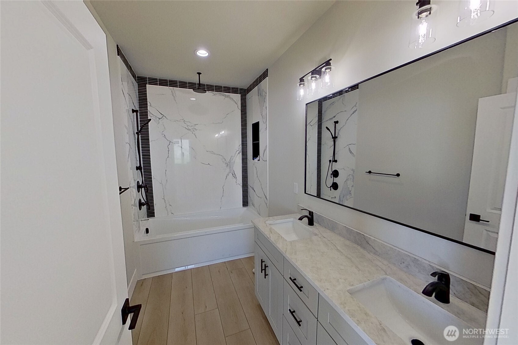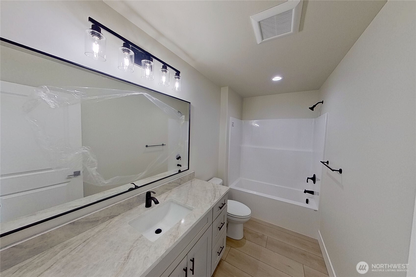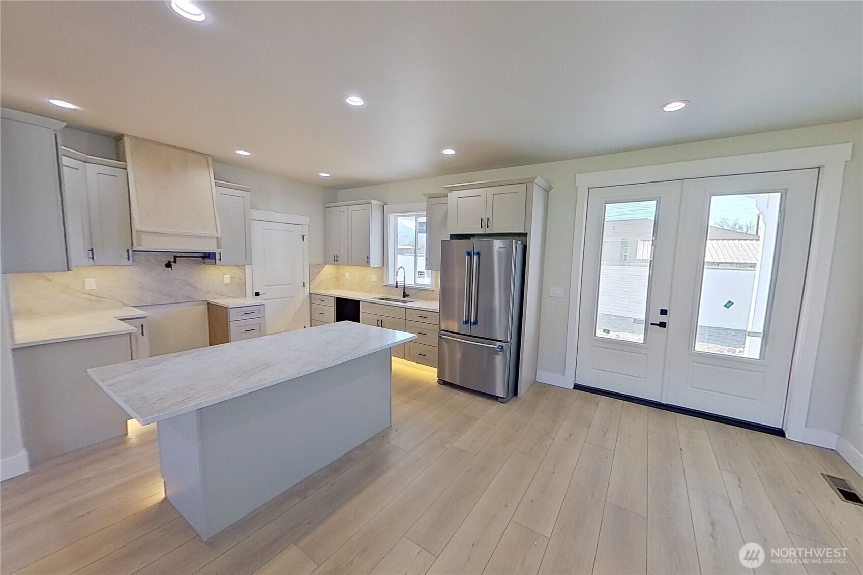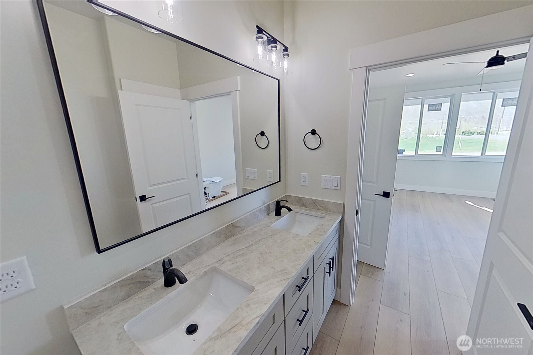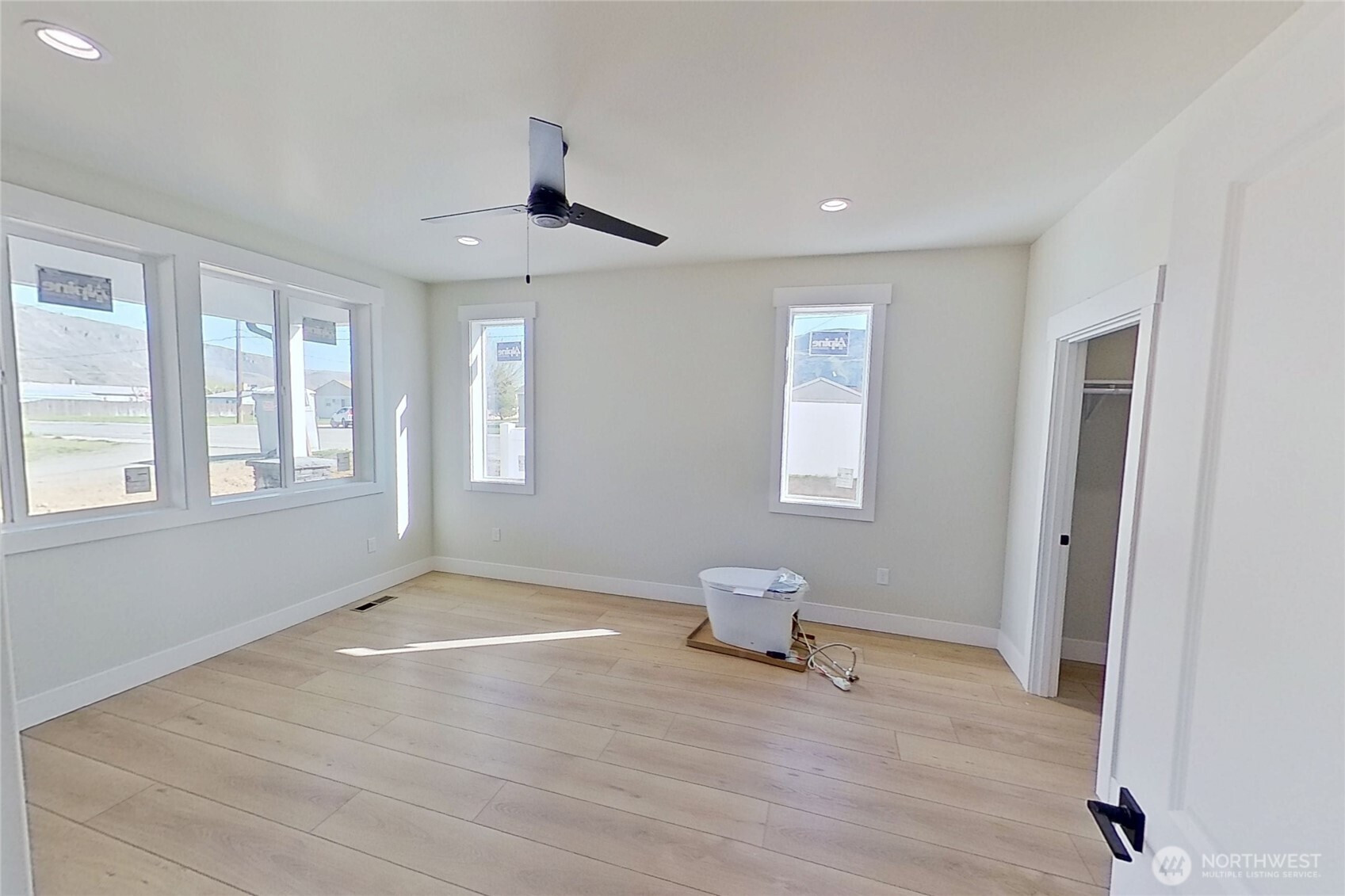 Golf course living at its finest! This expansive 2-story home offers 4 bedrooms/2.5 baths, a large bonus room, attached 3 car garage & EVEN a 28' x 32' detached shop! Open concept living & dining room with French doors that lead out to the covered back patio. The chef's kitchen features a center island with bar seating, quartz counters, walk-in butler's pantry, hood fan and under cabinet lighting! The primary bedroom is on the main level with a walk-in closet and deluxe bathroom. 3 additional bedrooms are located upstairs along with the laundry room & a large bonus room with incredible golf course views and 100" TV. Fully fenced backyard with front & back landscaping/sprinkler system! The detached shop has 14' ceilings heights & a bathroom with a shower for convenience. Located steps from the Rock Island golf course!