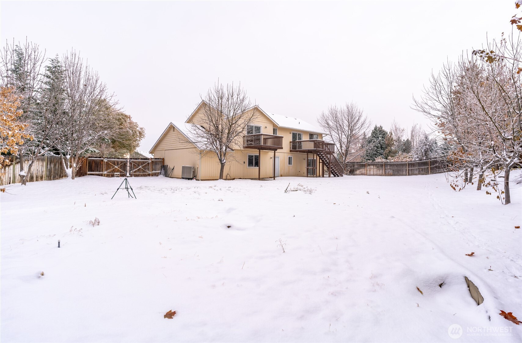 East Wenatchee home situated on an expansive lot. This residence features a thoughtful layout, highlighted by a primary suite with a full bath, walk-in closet, and a private balcony perfect for morning coffee. The inviting living room centers around a cozy fireplace, while the lower-level family room offers seamless indoor-outdoor living with slider access to a concrete patio. Outdoor enthusiasts will love the massive backyard, complete with fruit trees, a dedicated garden, and ample space for a future pool. Key features include a huge 3-car garage with a workbench, side RV parking, and full underground sprinklers. A true must-see!