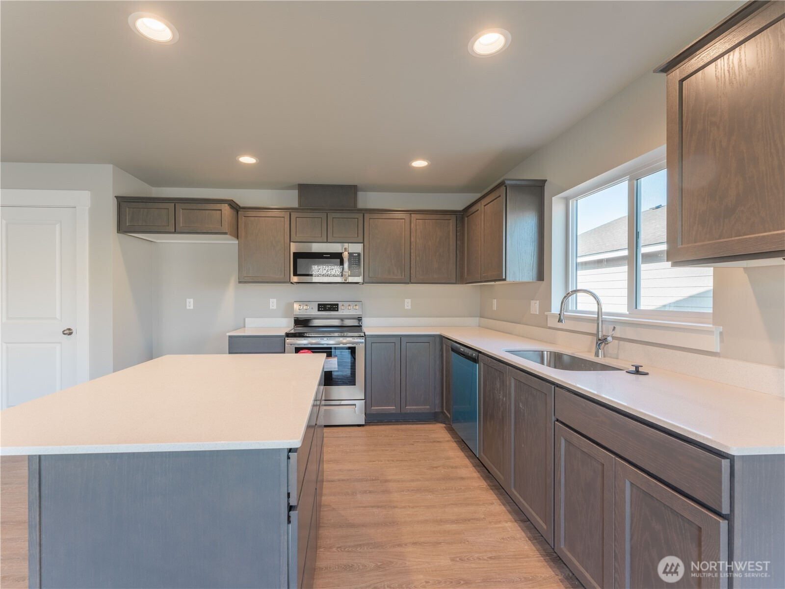 Welcome to Maryhill Estates East (Phase 2), one of Sage Homes’ newest and most desirable communities in East Wenatchee, ideally located just minutes from shopping, schools, and everyday conveniences. This thoughtfully designed, single level home showcases the popular Cashmere floor plan, offering an inviting open concept layout that seamlessly connects the kitchen, living room, and dining area perfect for both everyday living and entertaining. The home features 3 comfortable bedrooms, 1.75 bathrooms, and a 2 car garage. Durable and stylish luxury vinyl plank flooring flows throughout the main living areas, while plush carpet adds warmth and comfort to all bedrooms. The primary suite is a relaxing retreat, complete with a walk in closet and ensuite bath. The kitchen is beautifully appointed with dark stained cabinetry, quartz countertops, and ample workspace for cooking and gathering. Energy-efficient features include Energy Star® Low-E windows, a high efficiency heat pump, and a programmable thermostat, helping to enhance comfort while keeping energy costs in check. Enjoy professionally landscaped front yard and stunning views of the Wenatchee Valley and Cascade Foothills. Completion date is 02/26/2026. Interior photos are of a similar home & may have different colors or finishes.