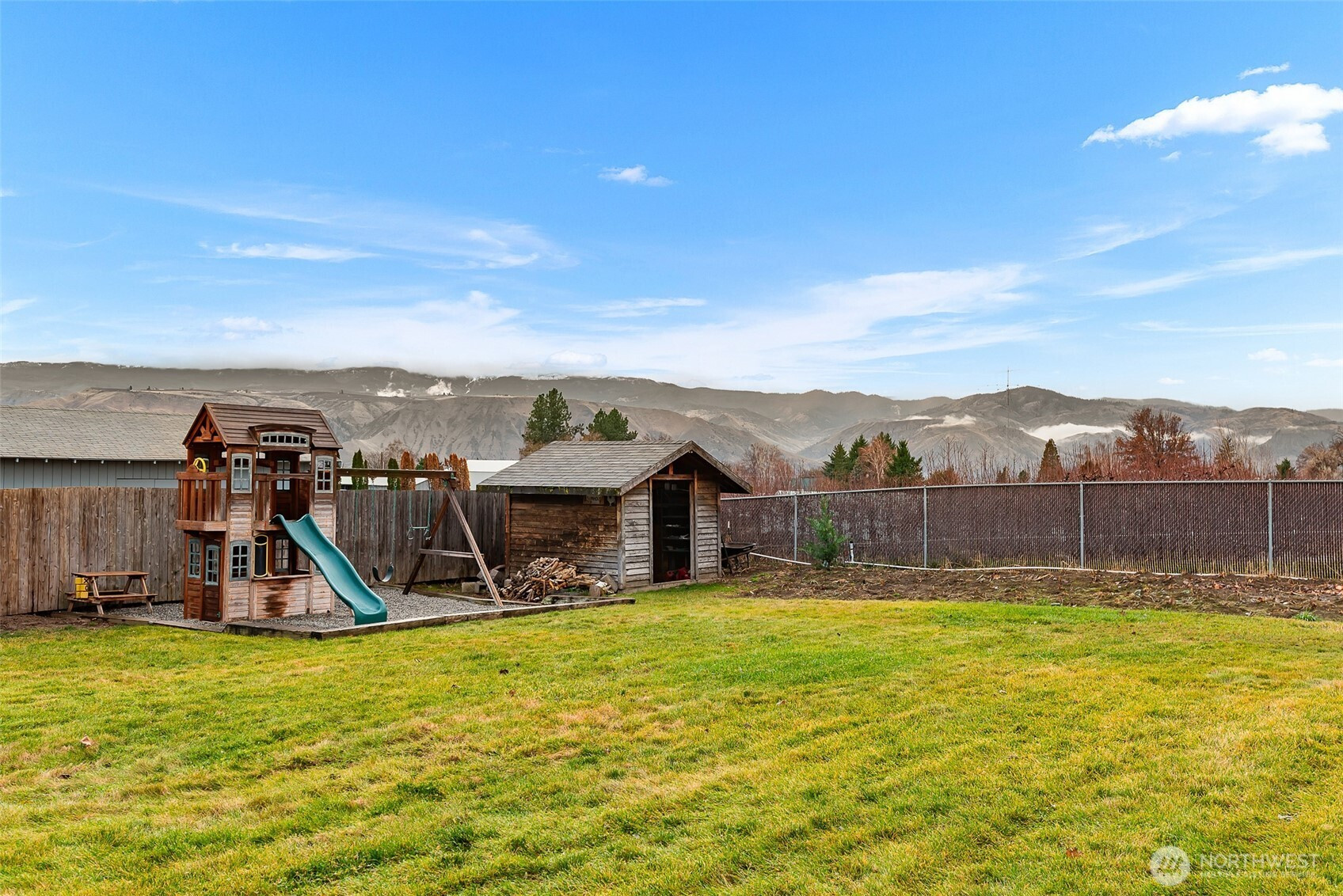 Just outside of town in a desirable, slow-paced neighborhood, this tastefully updated home offers 4 bedrooms, 2 bathrooms, 2 living rooms, and a dedicated office. The open kitchen and large windows fill the home with natural light, newer flooring and paint throughout. The main living area is cozy and inviting with a wood-burning fireplace. Lower level includes a wet bar with granite countertop, perfect for entertaining or additional living space. Situated on a large, irrigated lot with a fenced backyard and no restrictions, the property features beautiful views from the back deck, parking for an RV or trailer, 2-car garage, chicken coop, and playset. The home has a 2-bedroom septic system, newer roof, some updated windows, pre-inspected.