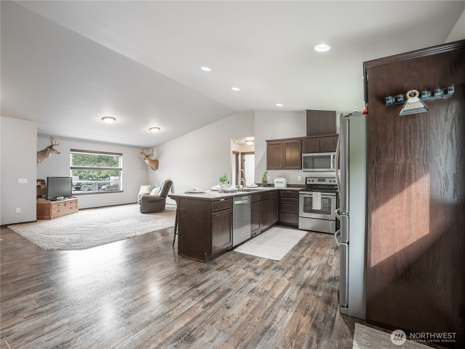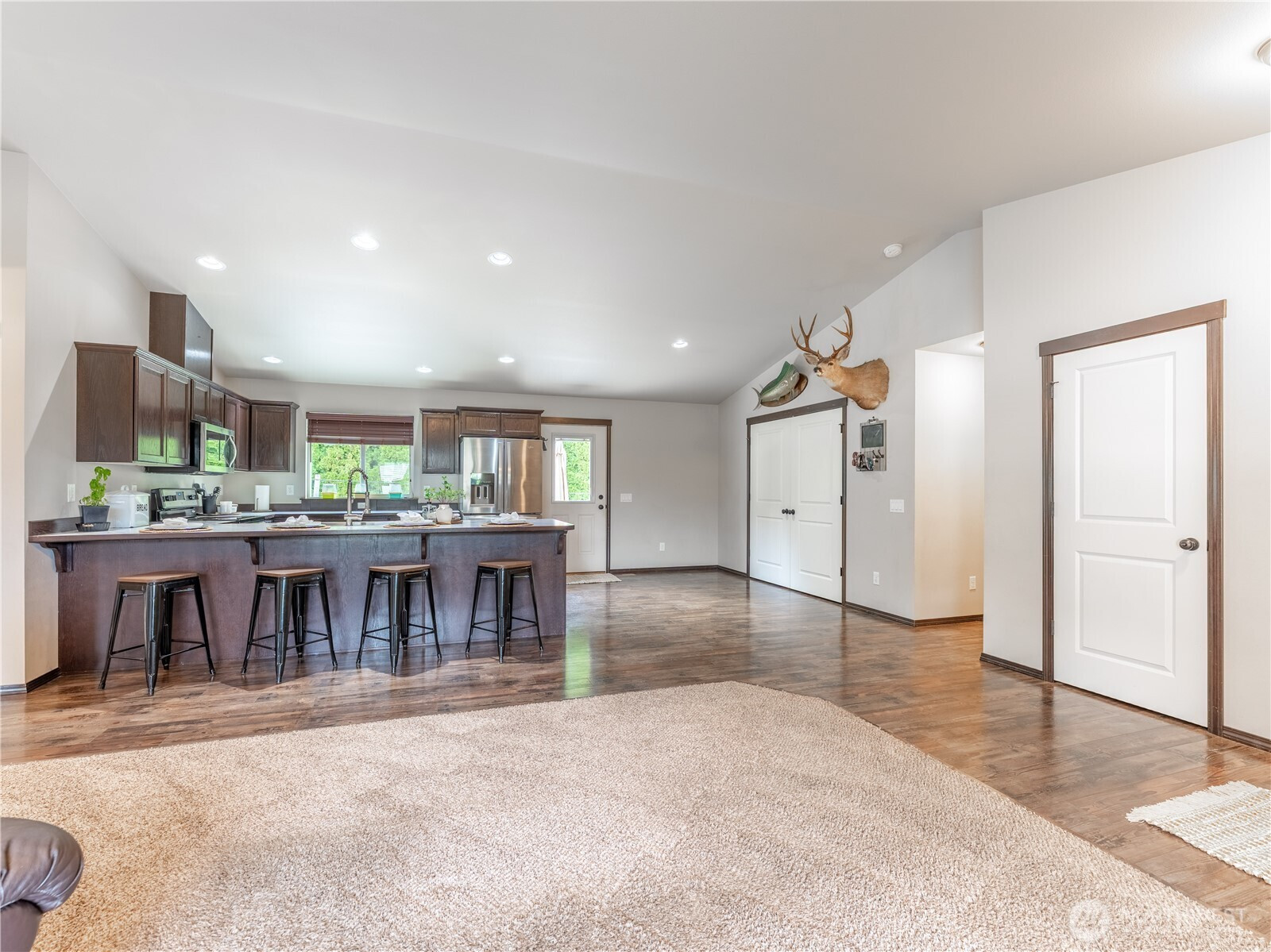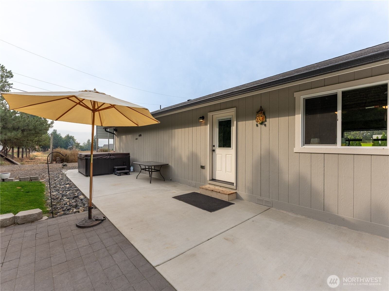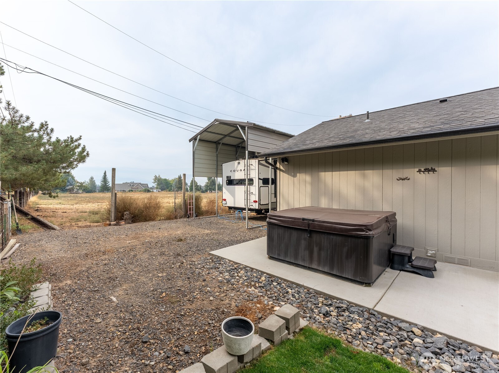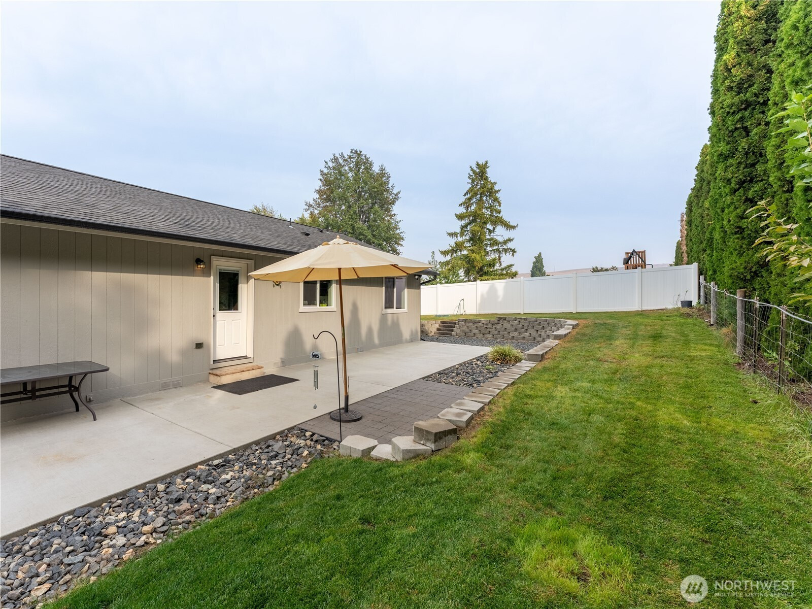 Perfectly situated on a dead-end lane, this three-bedroom, one-level home is cozy and comfortable. The layout is convenient, with the primary suite at one end and two bedrooms at the other. Vaulted ceilings and a four-stool eating bar highlight the great room and dining area. A large pantry provides extra storage. The primary suite has a generous walk-in closet. The primary bath features ample counter space. The yard is spacious with oversized RV parking. Entertaining is easy on the back patio. There is no HOA. The lot offers irrigation water and mountain views. The location is convenient, just off N. Nile Ave.