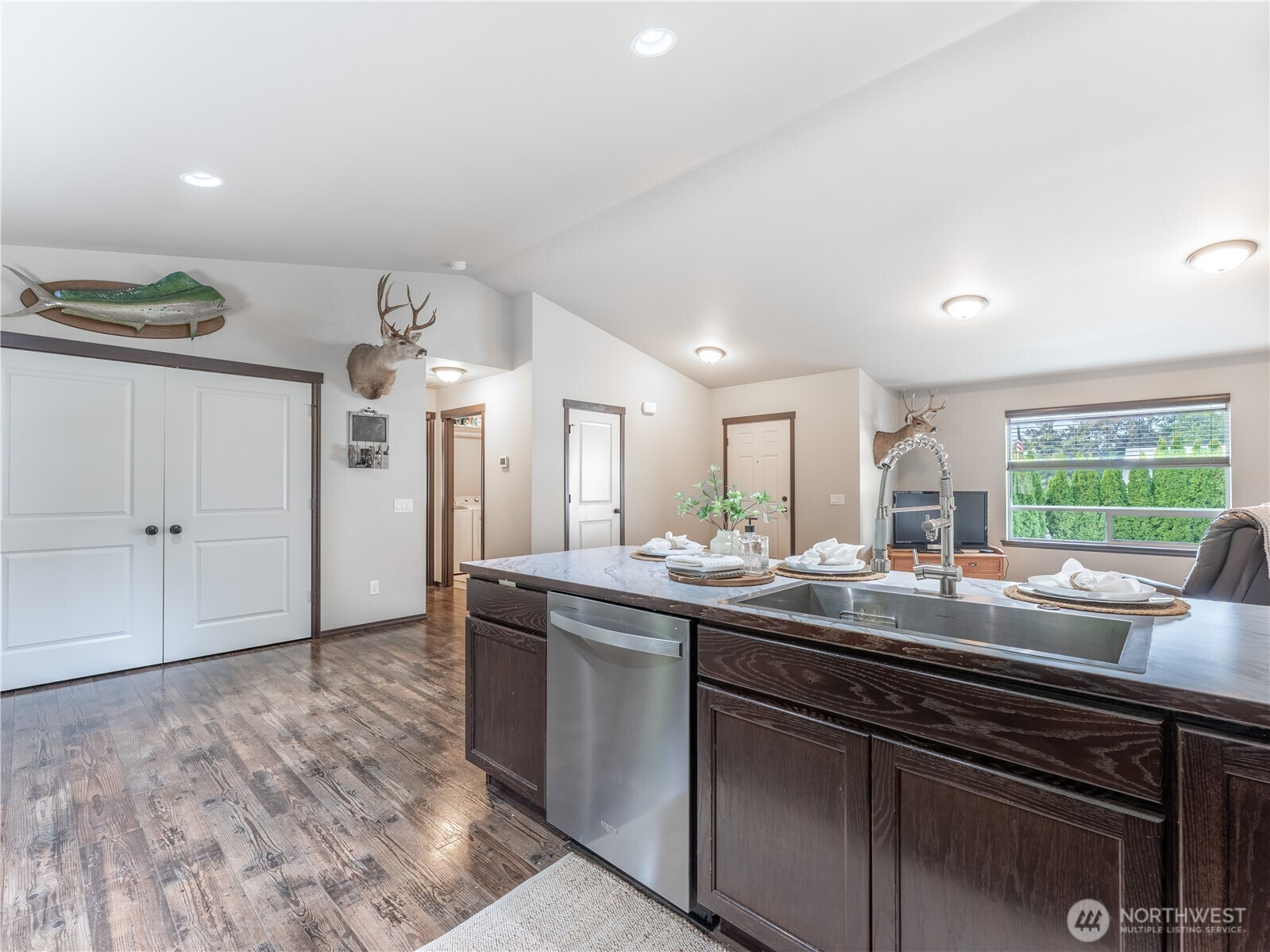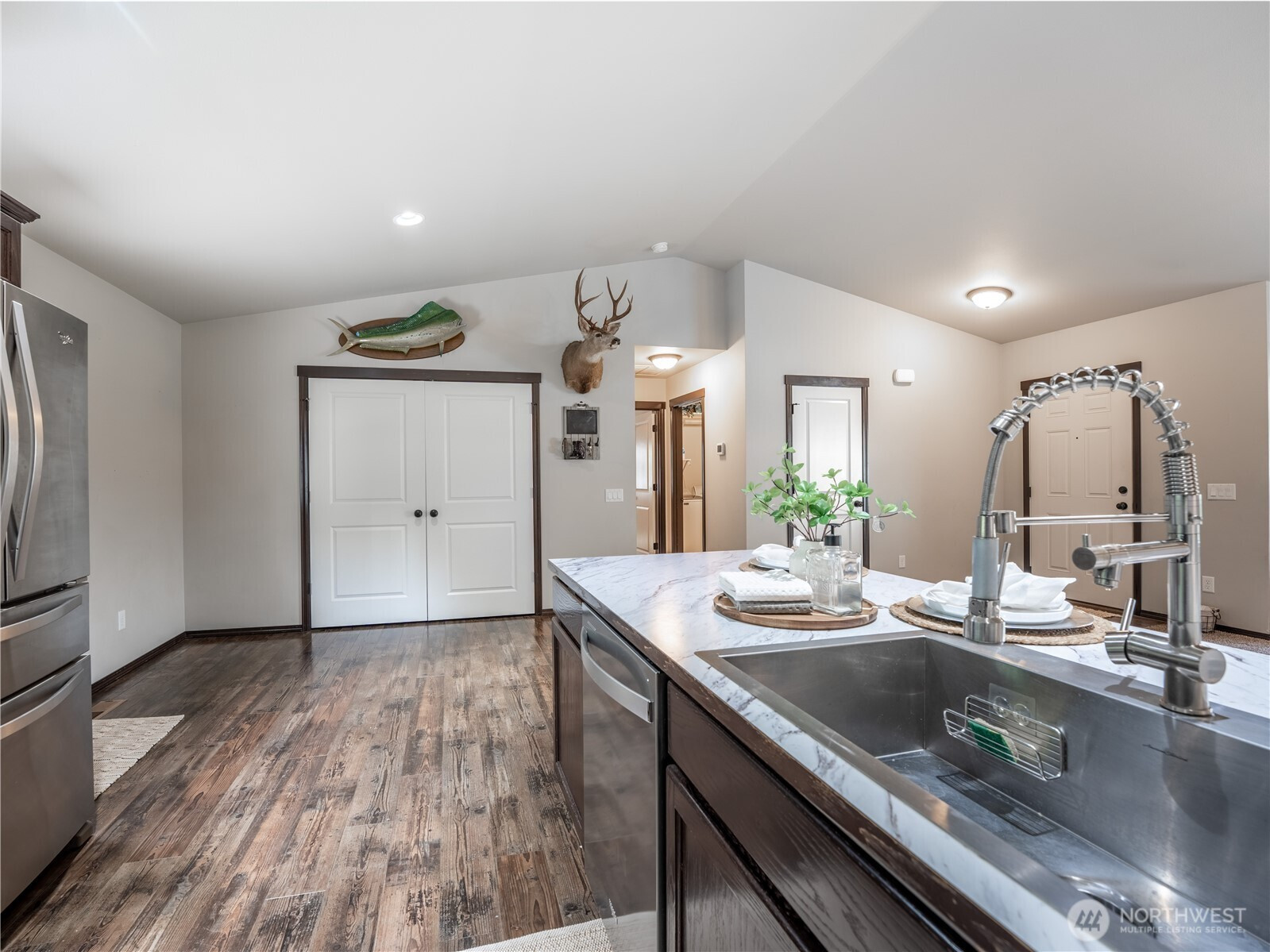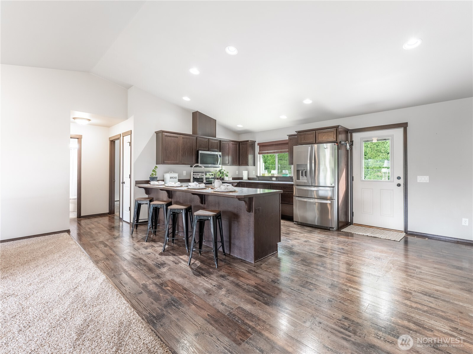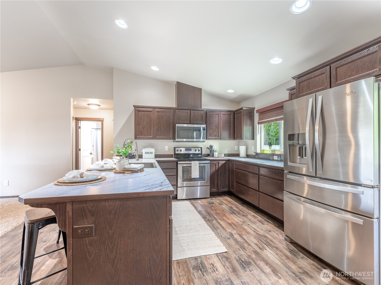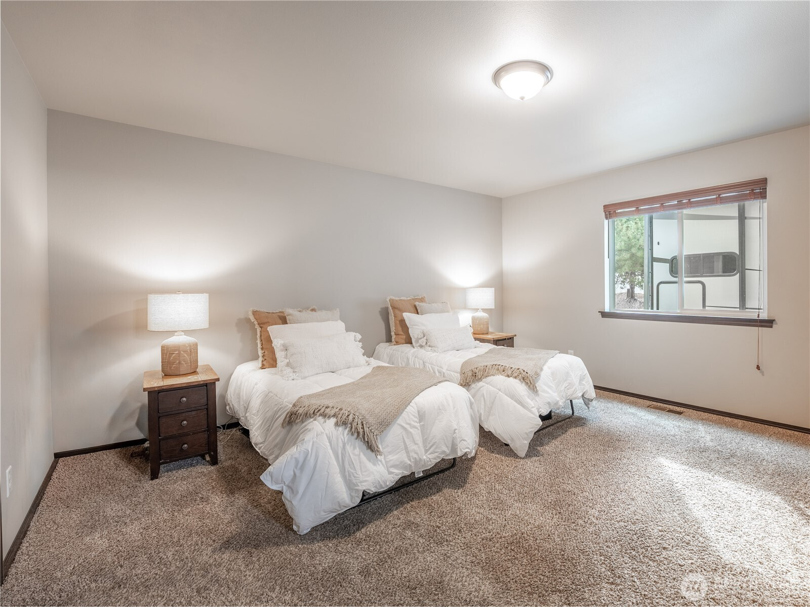Perfectly situated on a dead-end lane, this three-bedroom, one-level home is cozy and comfortable. The layout is convenient, with the primary suite at one end and two bedrooms at the other. Vaulted ceilings and a four-stool eating bar highlight the great room and dining area. A large pantry provides extra storage. The primary suite has a generous walk-in closet. The primary bath features ample counter space. The yard is spacious with oversized RV parking. Entertaining is easy on the back patio. There is no HOA. The lot offers irrigation water and mountain views. The location is convenient, just off N. Nile Ave.