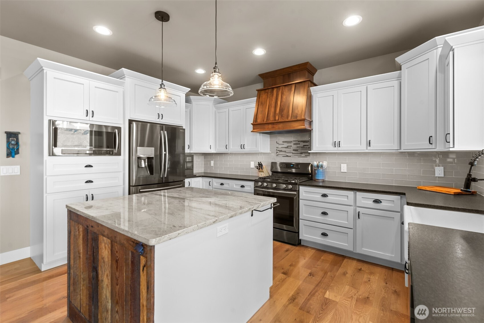 Enjoy breathtaking, unobstructed views of the Cascades and Columbia River from this thoughtfully designed daylight rambler where luxury meets function. Main floor features a primary suite with private ensuite showcasing a dual-head walk-in shower, dual vanities, and walk-in closet. An additional bedroom and office on the main level are complemented by a second full bathroom, offering ideal flexibility for guests or remote work. The heart of the home is the open-concept living area with hardwood floors and cozy fireplace, perfect for relaxing or entertaining. Step outside to a covered deck, complete with plumbing for your propane BBQ, and take in incredible views year-round. A heated two-car garage with third tandem bay provides ample space for vehicles, toys, or workspace. The walk-out basement continues the stunning views with a covered patio and open family room. Freshly finished walls are your canvas in the downstairs bedroom, bathroom, and an extra room suited as a workshop area, bedroom or playroom-ready for your vision! Additional features include a grand entryway with built-in storage, walk-in pantry, granite countertops, large kitchen island, bluetooth-controlled lighting, HVAC, and sprinklers, plumbing for a second hot water tank, central vacuum system, solid wood doors throughout, and a built-in basement shed with both interior/exterior access-perfect for yard tools and equipment. Check out the features list for more!