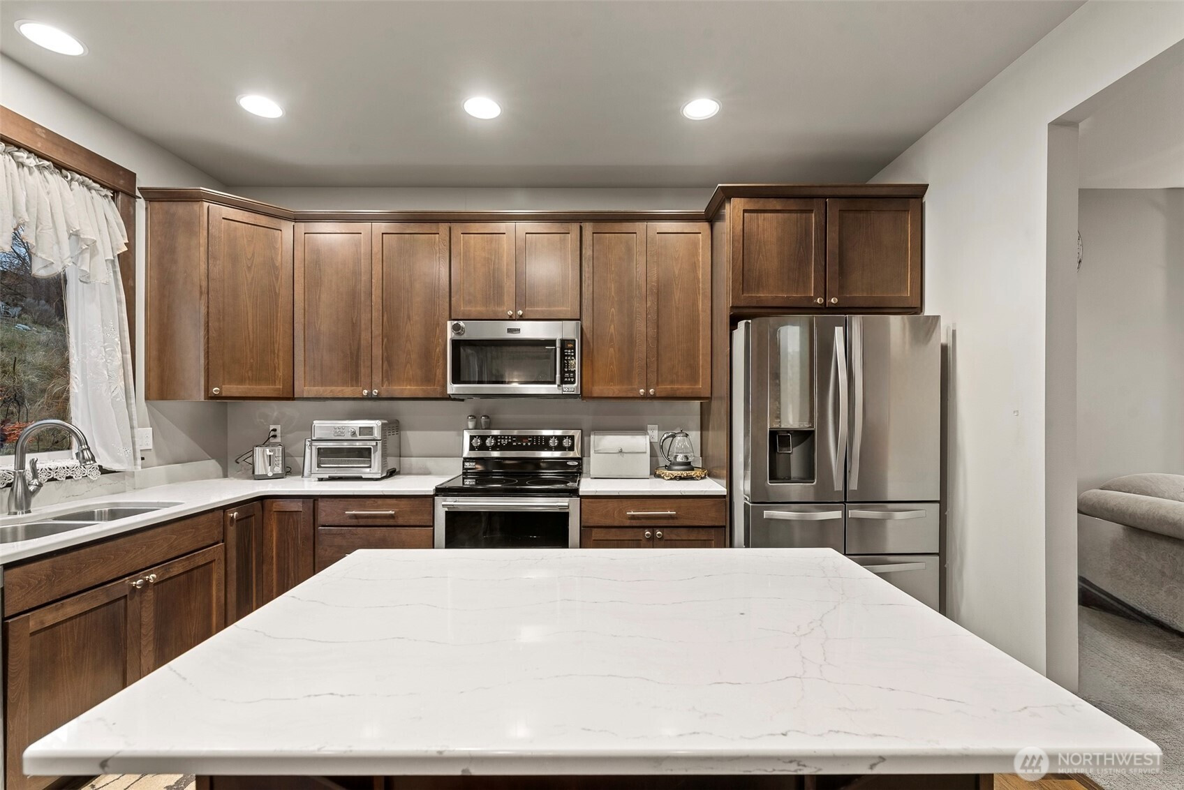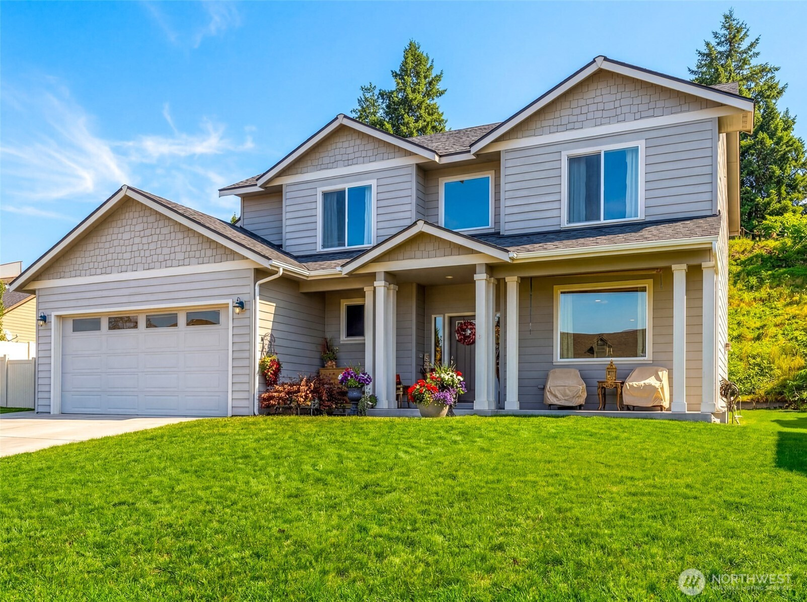Amazing River Views! Minutes away from Apple Capital Loop Trail. Spectacular two-story home with sweeping river views! This spacious residence offers 4 bedrooms, 2.5 bathrooms, and 2,578 square feet on a .36-acre lot with a 3-car tandem garage. The expansive kitchen features durable hard-surface countertops, a large island, and abundant cabinetry—ideal for both everyday living and entertaining. The family room captures stunning river views, while the dining room includes a slider that opens to the backyard and flows seamlessly into the generous great room. A convenient half bath and laundry room with sink complete the main level. Upstairs, the oversized primary suite boasts scenic views, a walk-in closet, soaking tub, walk-in shower, and double vanity. Three additional bedrooms and a full bathroom provide ample space. The partially fenced backyard includes a shop, firepit, and irrigation water—perfect for relaxing, gardening, and outdoor gatherings. Outdoor shed along with RV or boat parking rounds out this home.
