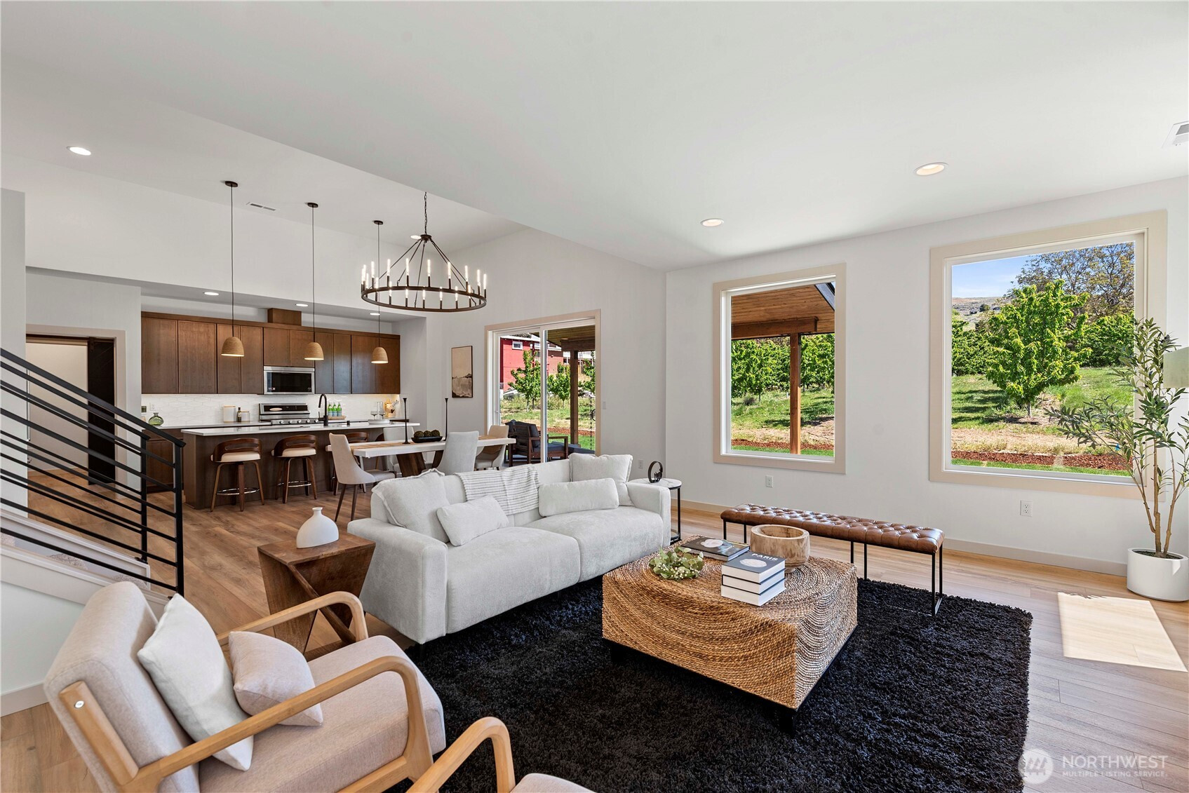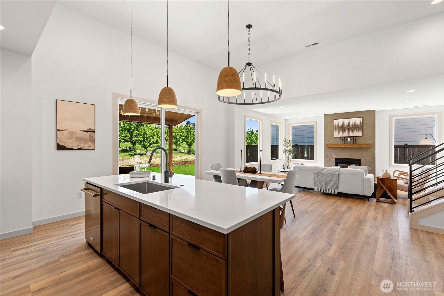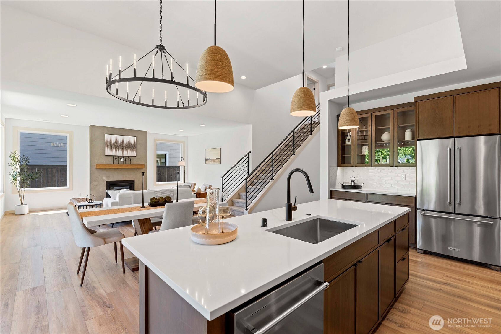 Sleek contemporary design meets everyday comfort in this newly completed luxury home. The open-concept main level showcases a chef’s kitchen with KitchenAid appliances, cherry cabinetry, quartz counters, and designer lighting. Enjoy indoor-outdoor living with a spacious covered patio and a main-floor primary suite featuring dual closets, soaking tub, and oversized shower. Convenient main-level laundry with folding counter. Thoughtful details throughout, from tile backsplash to curated finishes. Extra 60’ x 11’ parking area accommodates RV or boat. Located just blocks from the scenic Wenatchee Loop Trail, offering easy access to Pybus Market, downtown, and the riverfront.