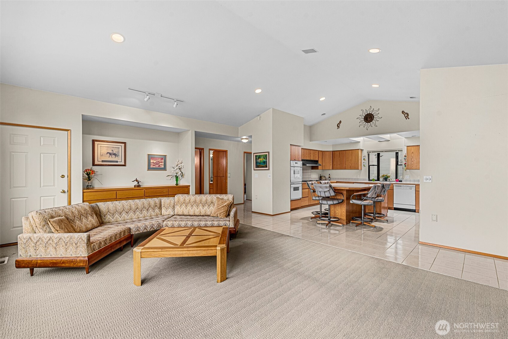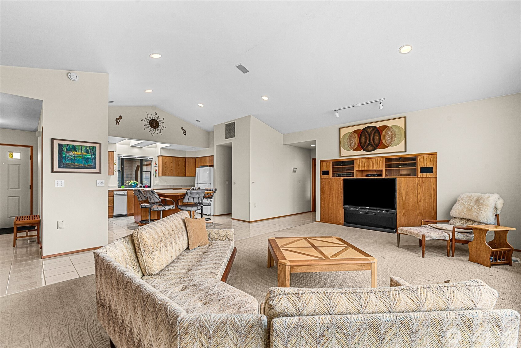 Immaculate corner lot showcasing expansive river, mountain, and territorial vistas! This 1,780 sq. ft. rambler features 3 bedrooms, 2.5 bths & vaulted living room with built-ins and a walk-out deck. Attached 1,192 sq. ft. garage offers a 16-ft door, asphalted RV parking, indoor/outdoor RV storage & extra washer/dryer hook-ups. The spacious kitchen includes an oversized island, abundant cabinetry, tile floors, skylights & bay window, dbl oven, trash compactor. The primary suite captures the views with a walk-in closet, dbl vanity, soaking jetted tub, skylight & shower. 2 additional bedrooms & a full bath are on the opposite side. Low-maintenance yard .27-acre lot with extensive asphalt parking, fenced gravel front yard for easy living!