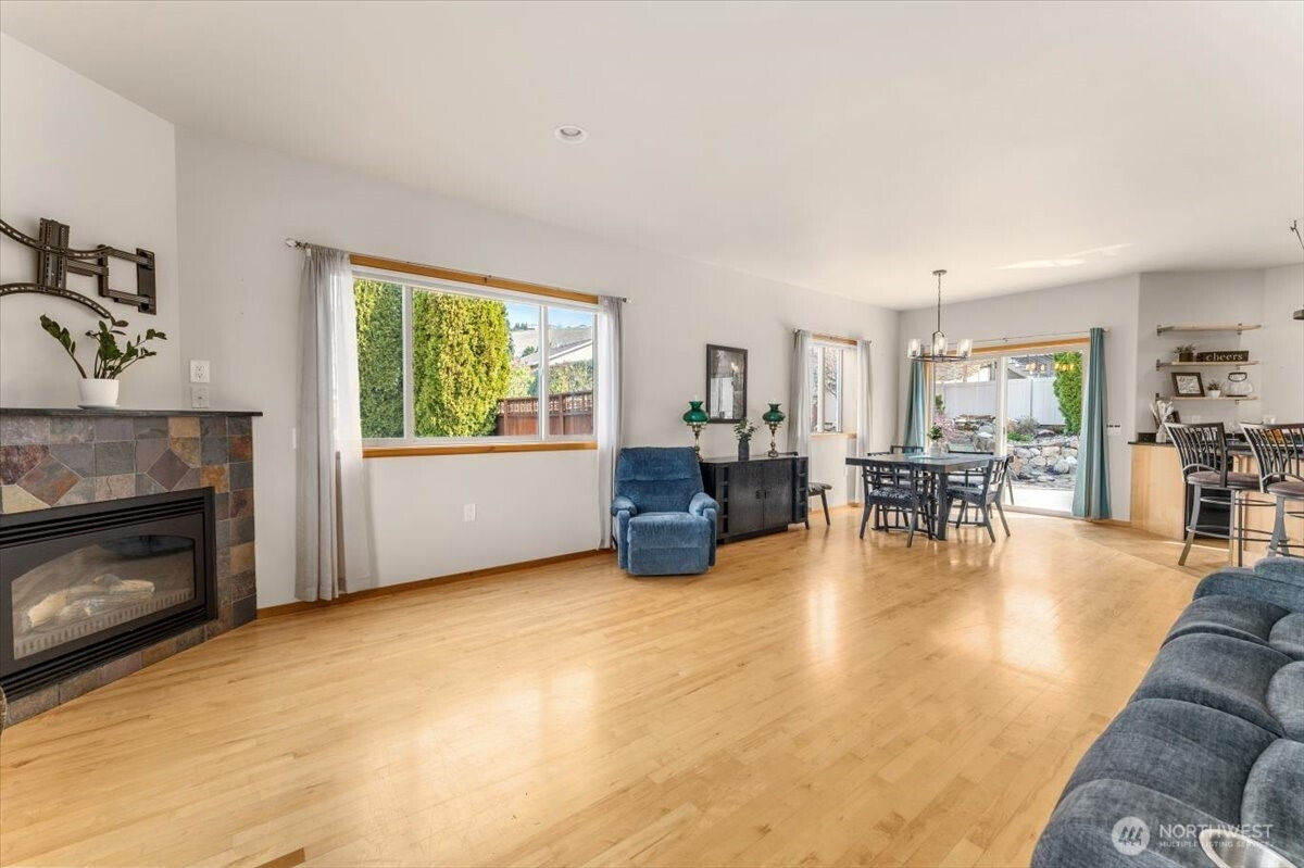 Tucked into a quiet cul-de-sac in East Wenatchee, this home offers a comfortable open layout where the kitchen, dining, and living spaces flow together with ease. The main-floor primary suite provides everyday convenience with a walk-in closet, spacious ¾ bath, and private access to the backyard patio. Upstairs, you’ll find a large bonus room, third bedroom, and additional ¾ bath—perfect for guests or flexible living.The backyard is thoughtfully designed with mature landscaping that creates a sense of privacy, along with raised garden beds, fruit trees, a built-in sprinkler system, and a custom rock waterfall feature. Additional highlights include granite kitchen counters, walk-in pantry, maple hardwood floors, propane fireplace, wide doorways and hallways, 10' x 12' Tuff Shed, and small RV parking. New roof in 2025.