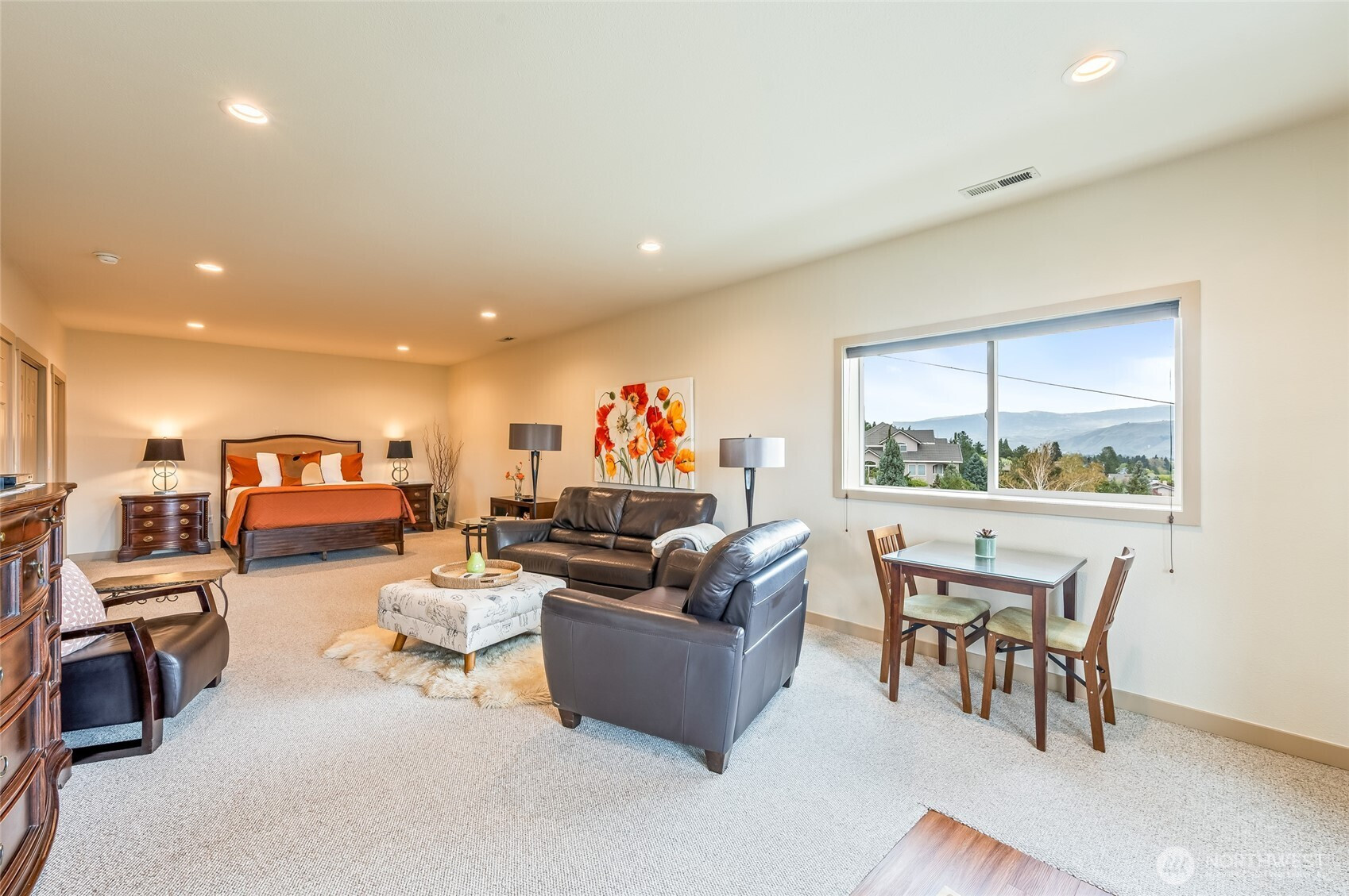 Perched above the valley, this exceptional property captures sweeping views of the Columbia and Wenatchee Rivers, surrounding mountains, and sparkling city lights below. Thoughtfully updated, the home features newly refinished red birch floors, fresh interior and exterior paint, and new carpet—all designed to complement and highlight the stunning scenery. The kitchen showcases custom horizontal-grain sapele mahogany cabinetry, slab quartz countertops, and stainless steel appliances. A reimagined primary suite offers a spa-like bath positioned to take full advantage of the panoramic views. Designed for both function and lifestyle, the home includes a spacious mudroom, wine cellar, and abundant storage throughout; including a massive 3-car garage with custom built-ins and two substantial outbuildings ideal for garden or gear storage. A private, sound-insulated 900 sq ft guest suite with full kitchen and bath offers flexibility for guests, STR income, or multi-generational living.