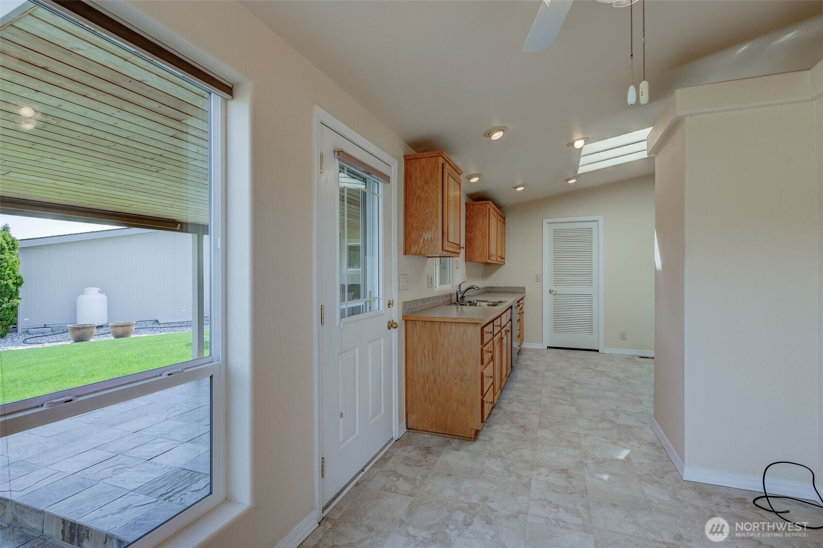 Sunrise East beauty! If you have been seeking a premium home in the award-winning 55+ community of Sunrise East, this is it! From the ideal canyon-side location tucked into the quietest corner of the community, to the impressive curb appeal, to the traditional poured concrete foundation, & finally to the ideal size & layout-you'll be excited to call this fine property HOME! Desirable features include a covered front porch, vaulted ceilings, walk-in pantry, spacious kitchen w/ attached morning room, VIEWS, large den/ office, primary suite w/walk-in closet + double vanity + lg linen closet + walk-in shower, & a delightful outdoor entertainment area boasting a stone tile floor & a gorgeous vaulted wood ceiling! As if that's not enough, the garage offers a sizeable finished hobby room, extra upright freezer AND wall-to-wall built-in storage cabinets! Owners have made many quality improvements since 2015, including premium new appliances, storm doors, H2O heater, power panel, AC unit, custom sun-filtered blinds, outlets in the eves, new vinyl floors, a heated garage, and a BRAND-NEW ROOF w/new skylights, gutters & downspouts. This home is sparkling clean, pre-inspected and ready for its new owner! Claim your spot in this one-of-a-kind community that offers an indoor pool & spa, well-appointed clubhouse, exercise facility, BBQ area, mini-storage, RV storage, security gate- & enough social groups & activities to keep you as busy as you like!