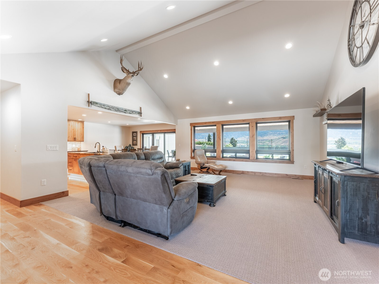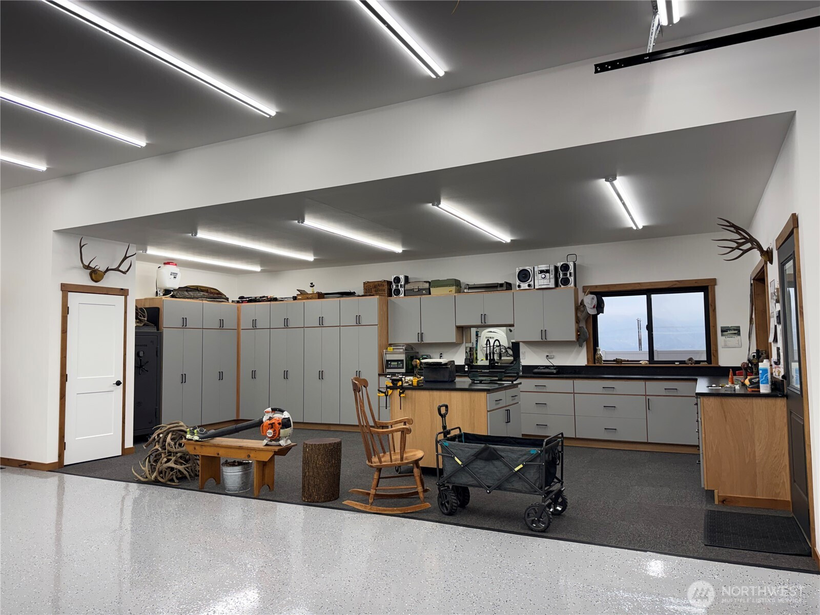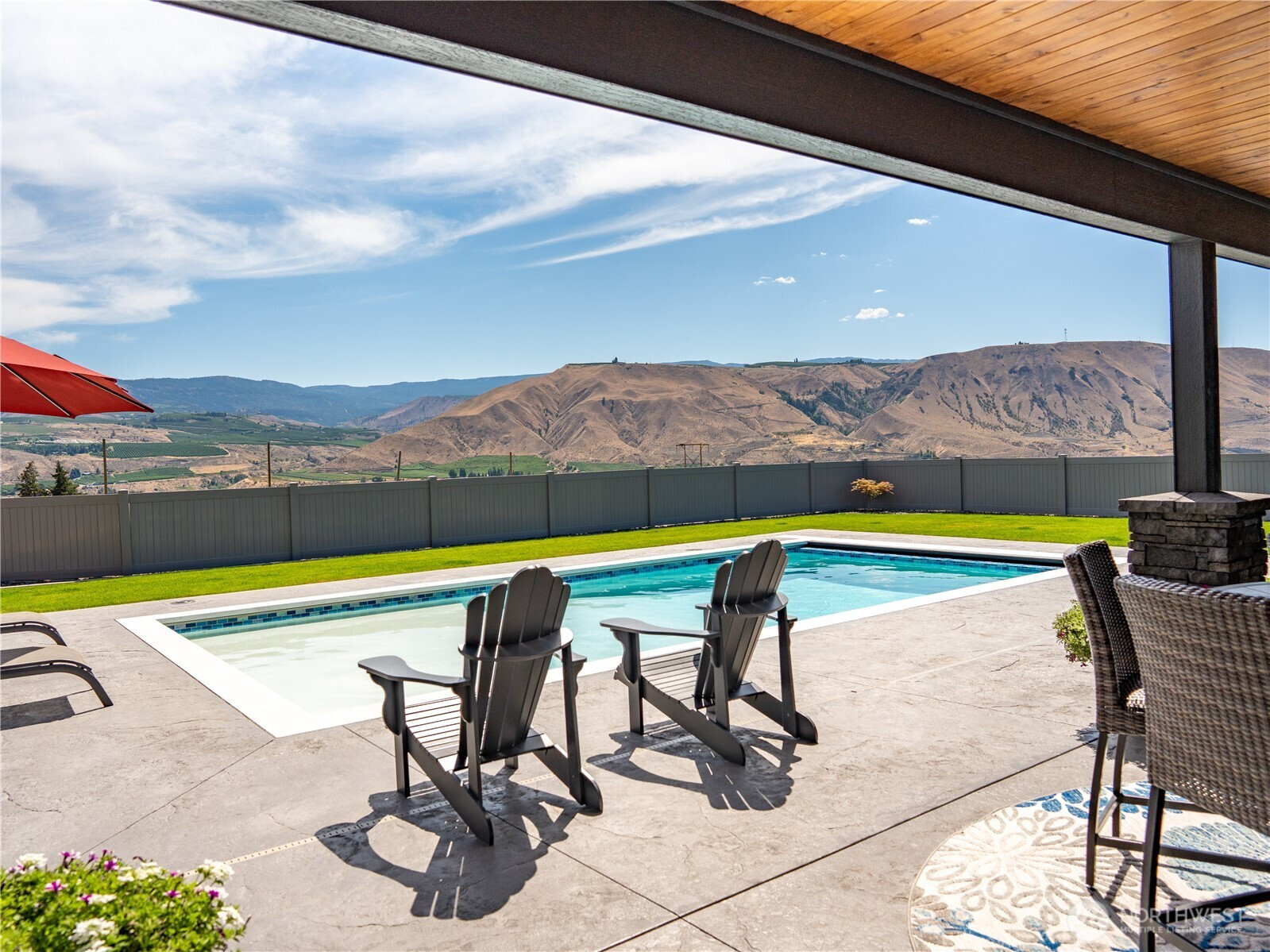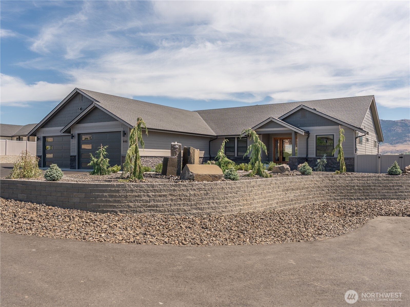 Custom rambler thoughtfully designed and sitting on over 1/2 acre with a detached 1600 square foot finished shop and outdoor living area featuring a covered patio for year-round enjoyment. Enter through the beautiful custom wood and glass entry door to an open great room offering a panoramic view of the surrounding mountains. The kitchen is a cook's dream with a double oven, a walk-in pantry, a beverage refrigerator, and a coffee bar. Continue through to the covered patio, which is steps away from the pool and hot tub. The primary suite is your personal spa, complete with a sauna, cold plunge, walk-in shower, and soaking tub. The shop and garage are finished with mini-split systems for year-round comfort.