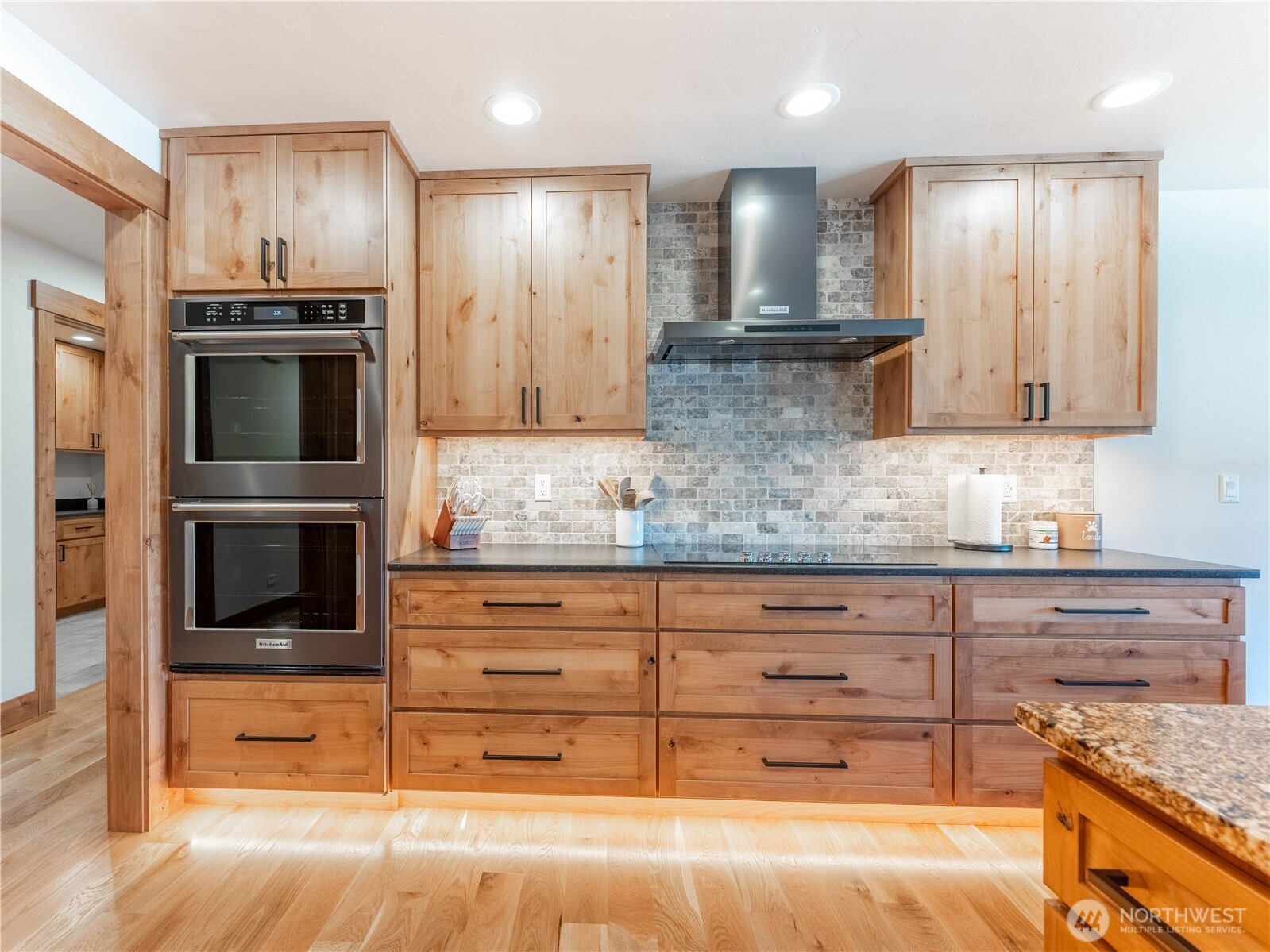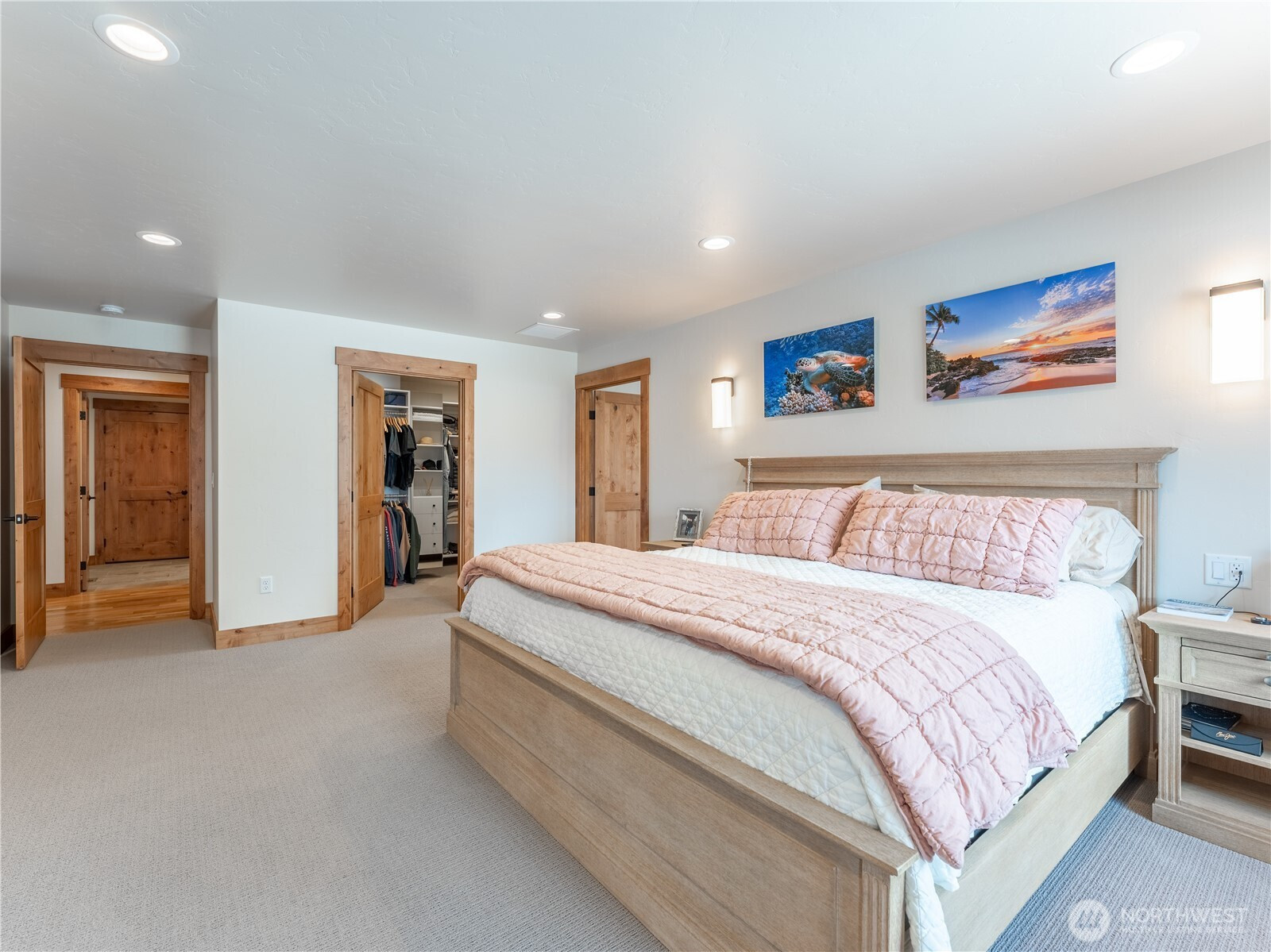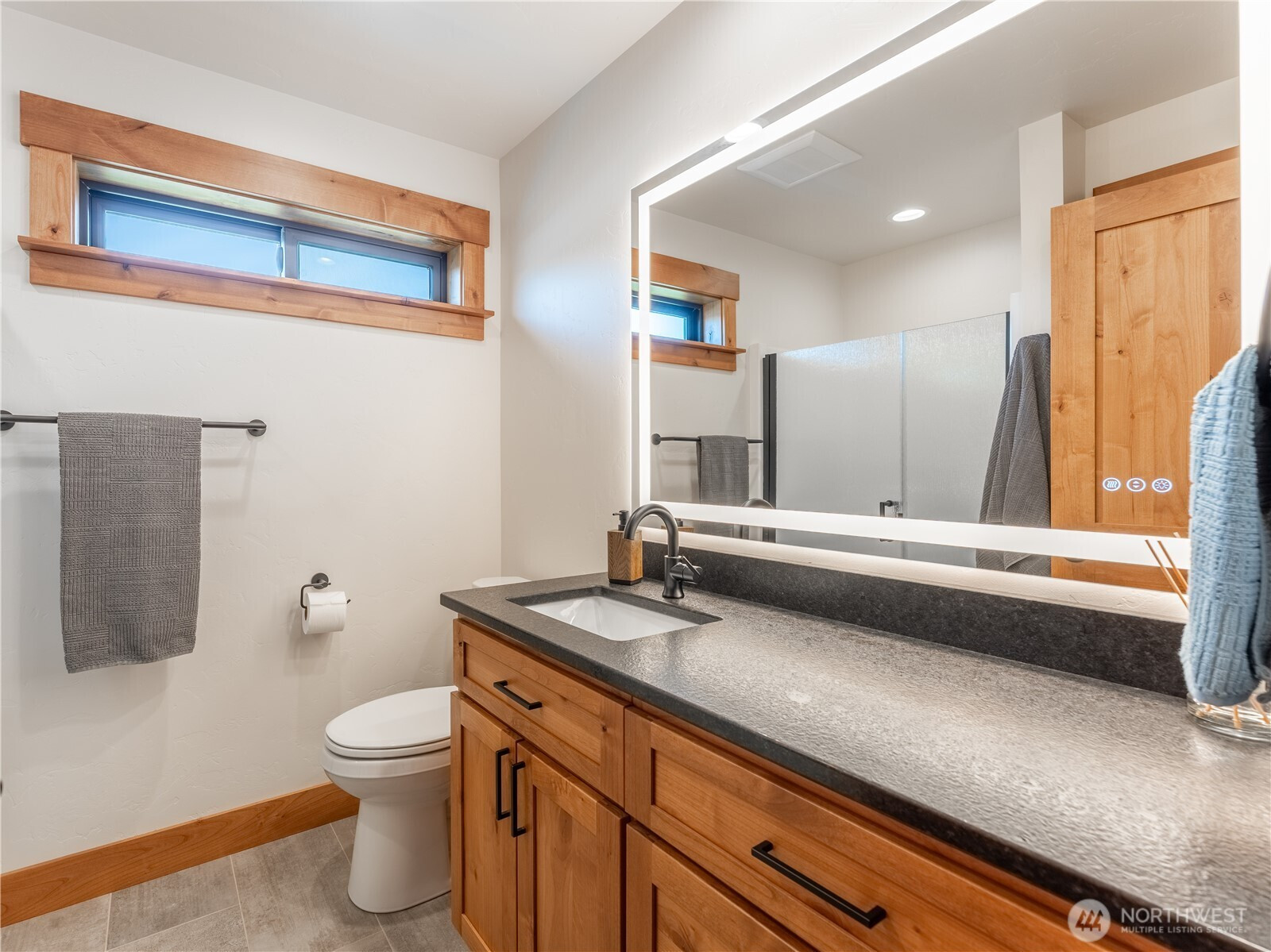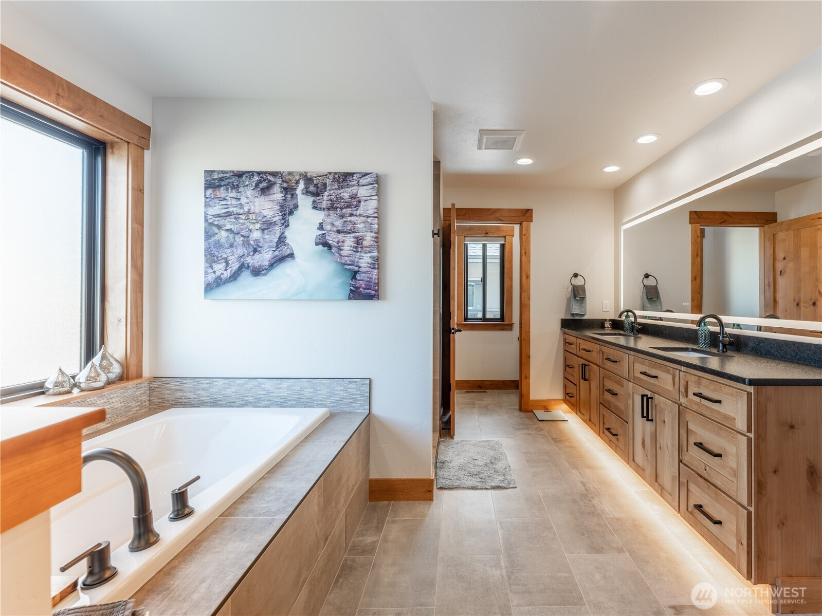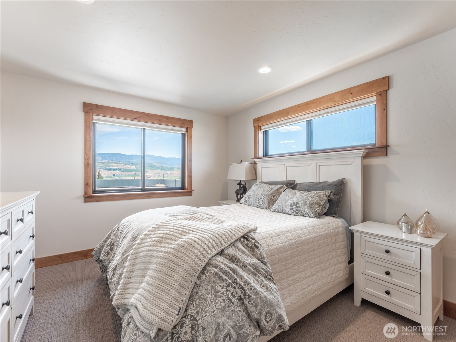 Custom rambler thoughtfully designed and sitting on over 1/2 acre with a detached 1600 square foot finished shop and outdoor living area featuring a covered patio for year-round enjoyment. Enter through the beautiful custom wood and glass entry door to an open great room offering a panoramic view of the surrounding mountains. The kitchen is a cook's dream with a double oven, a walk-in pantry, a beverage refrigerator, and a coffee bar. Continue through to the covered patio, which is steps away from the pool and hot tub. The primary suite is your personal spa, complete with a sauna, cold plunge, walk-in shower, and soaking tub. The shop and garage are finished with mini-split systems for year-round comfort.