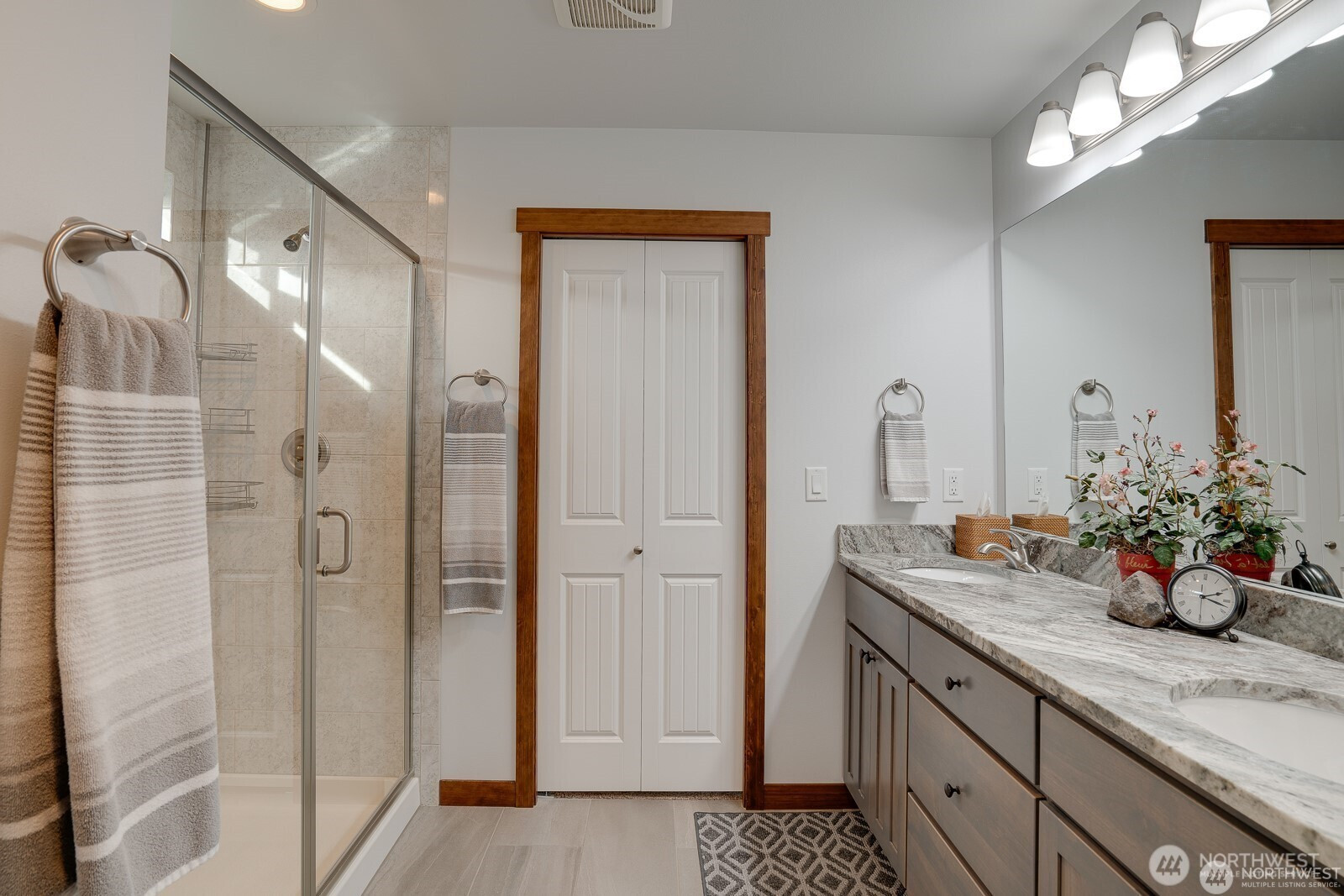 This upgraded rambler offers it all—Mtn views, custom finishes, open floor plan, RV parking & plenty of storage! 1,648 sq ft of total garage space (810 sq ft 3-car garage & an 838 sq ft detached shop w/a finished hobby room). Inside, you’ll find custom cabinetry, unique leather-finished granite countertops, & solid oak hardwood floors that flows throughout most of home, including the primary bedroom & dedicated office. The thoughtfully situated & private primary suite, features a walk-in shower w/glass enclosure, double sinks, & a walk-in closet. You'll love hosting on the spacious covered deck while soaking in the stunning mountain views! Low maintenance landscaping is connected to irrigation water w/auto sprinklers to keep life simple!