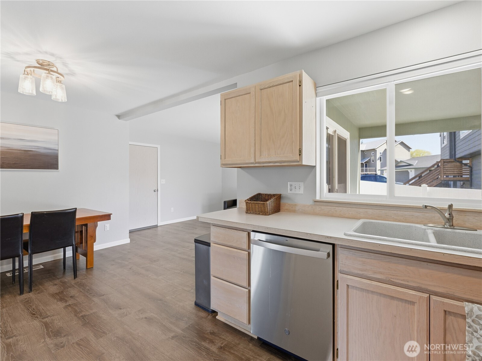 Beautifully updated and truly move-in ready, this 3-bedroom, 2-bath home is perfectly positioned on a desirable corner lot with views from nearly every window. Thoughtful upgrades include newer LVP flooring, fresh interior and exterior paint, updated light fixtures, newer kitchen appliances, tastefully remodeled bathrooms, central heat and air, and a new roof installed last year. Enjoy both a covered front porch and covered back patio for easy outdoor living, plus a fully fenced backyard ideal for pets, entertaining, or unwinding at the end of the day. An attached 2-car garage adds convenience to this stylish, well-cared-for home in a fantastic location.