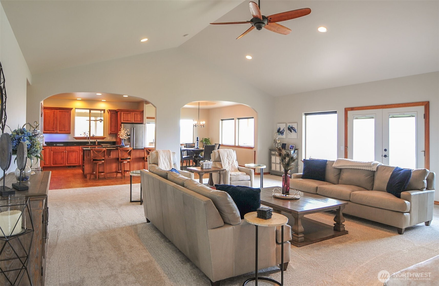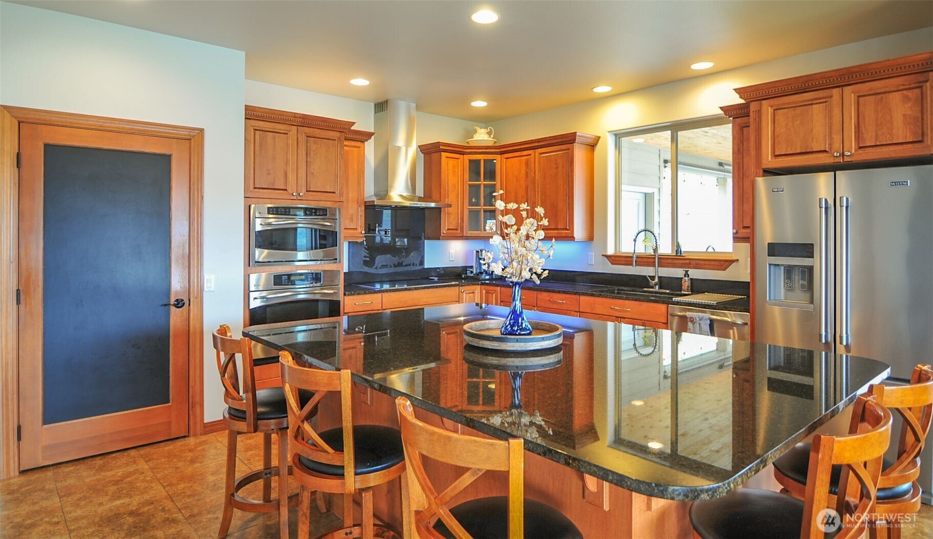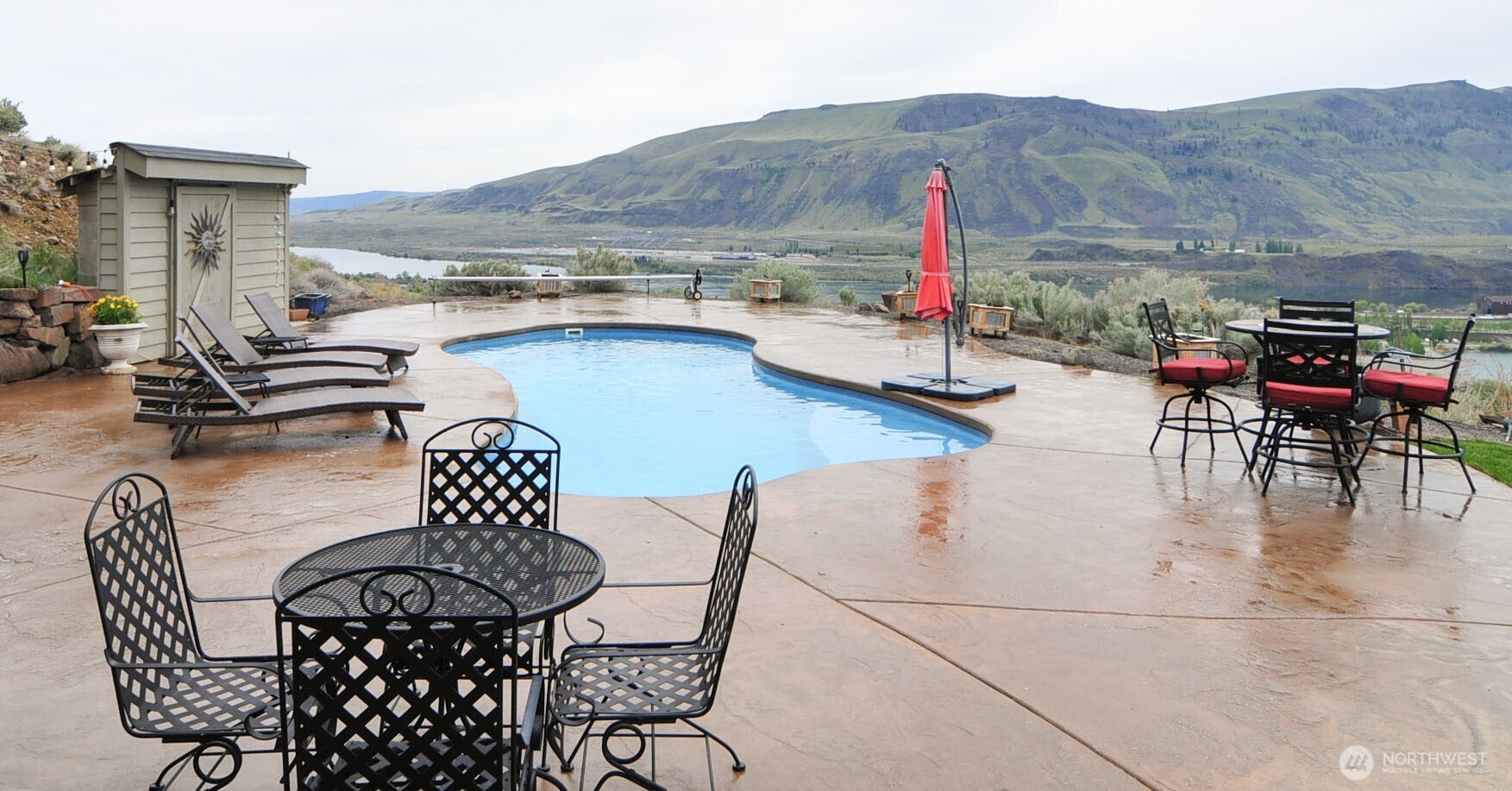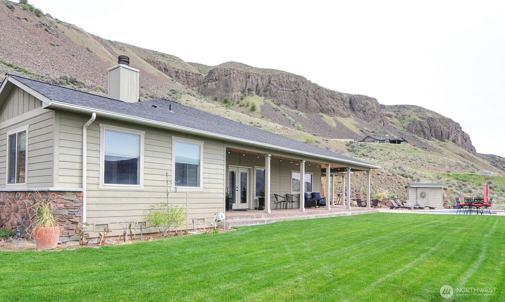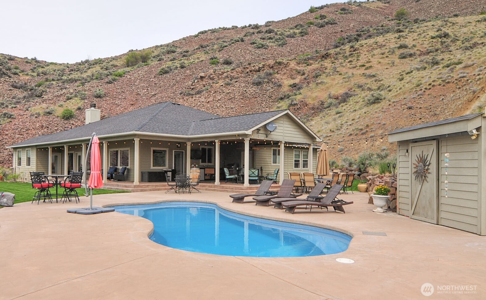 LUXURY ON 20 ACRES! Enjoy spectacular panoramic views from this thoughtfully designed, meticulously maintained 3 bedroom, 3 bath home with quality through-out. You are greeted to a grand entry with slate flooring. Soaring vaulted ceilings and plenty of windows create an abundance of natural light in the main living area that features a striking floor to ceiling gas/wood fireplace. Spacious kitchen includes beautiful granite counters, tile flooring, oversized island, pantry and induction stove-top. The primary bedroom suite has a gas fireplace, copper sinks, jetted tub and a gorgeous tile & glass walk-in shower. Large laundry area with plenty of storage. Central vacuum system. Enjoy wonderfully designed covered outdoor living areas featuring misters, sink, fridge, ice maker, fire-pit, water fountain just off the salt water pool. Ample parking areas including 2-30amp RV hook-ups, 900 sq. ft. shop with heat & AC, and air compressor. Unique, 20 ft. deep in-ground storage container.