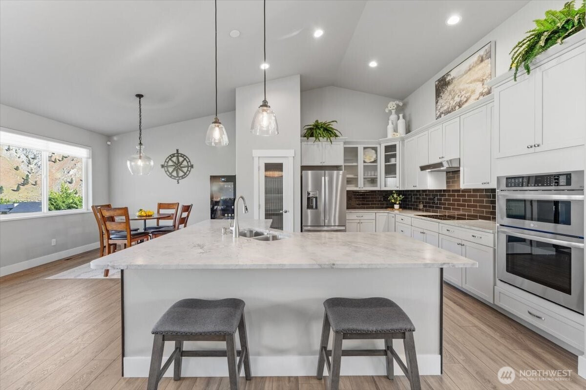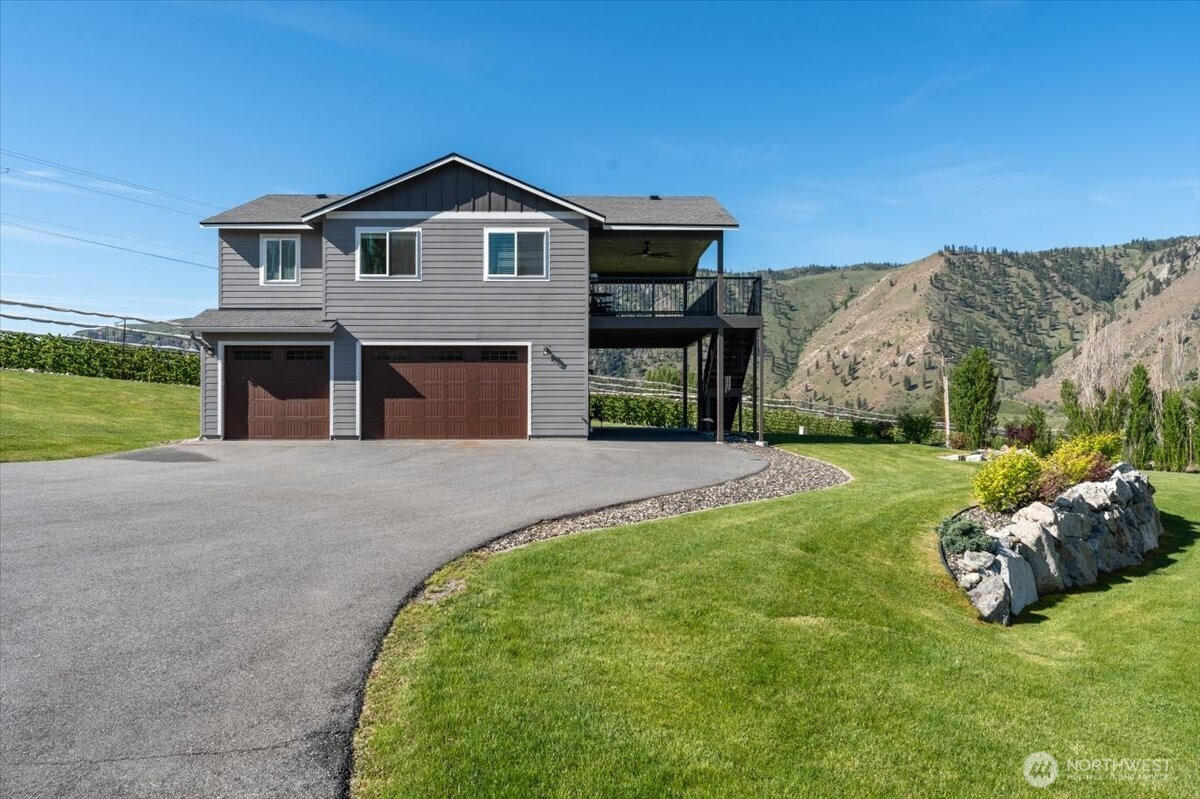 Stunning river view retreat at 80 Barber Rd, located between Lake Chelan and Wenatchee, and just steps from the Columbia River! Set on 2.4 manicured acres, this immaculate single-level home offers 2,440 sq. ft. of light-filled, open-concept living with vaulted ceilings, large windows, and high-end finishes throughout. Mountain and river views from nearly every room! A spacious and private primary suite features a large walk-in closet and a luxurious ensuite bathroom. 2 additional bedrooms located on the opposite side of the house. Designed for both relaxation and entertaining, enjoy the large covered patio and seamless indoor-outdoor flow to kitchen & living. A detached shop includes a 960 sq. ft. 2 bed/1 bath ADU on upper level. With over 1,500 sq ft of garage space across 5 bays, there’s room for all your toys! Community river access and shared dock complete this exceptional property, perfect as a full-time residence or a vacation getaway!