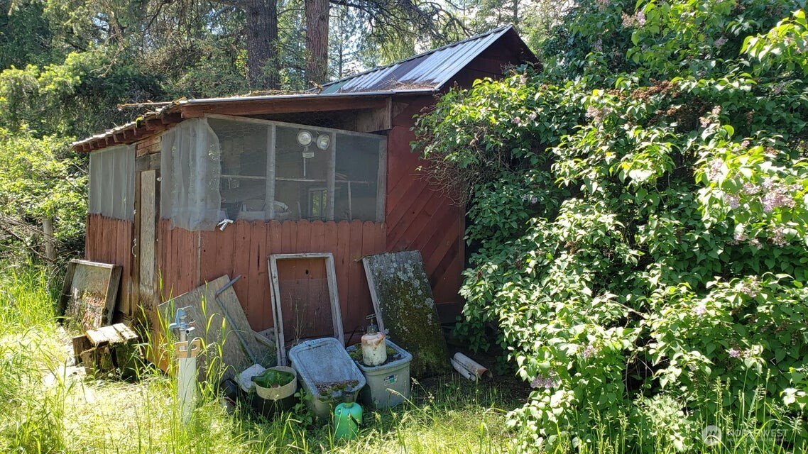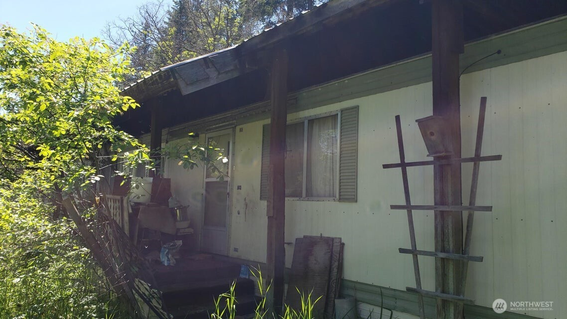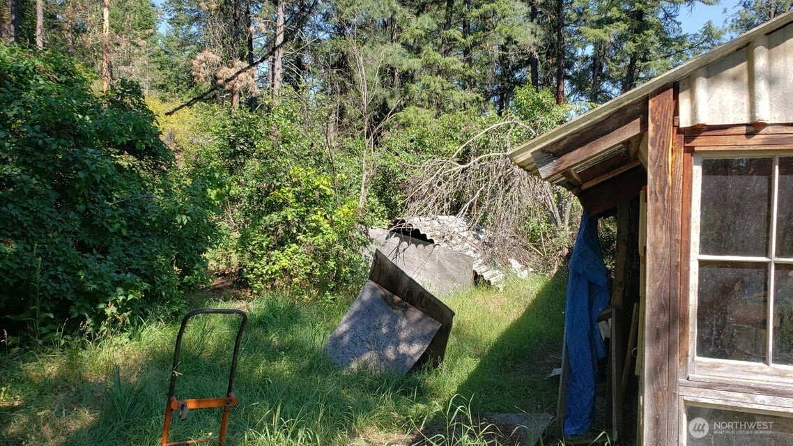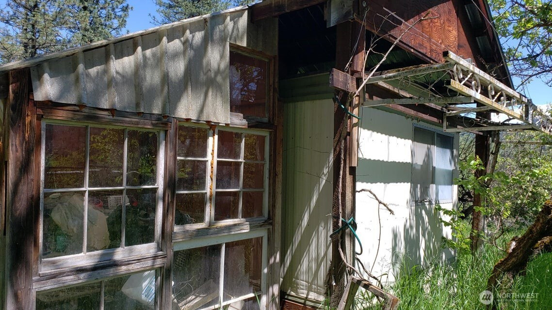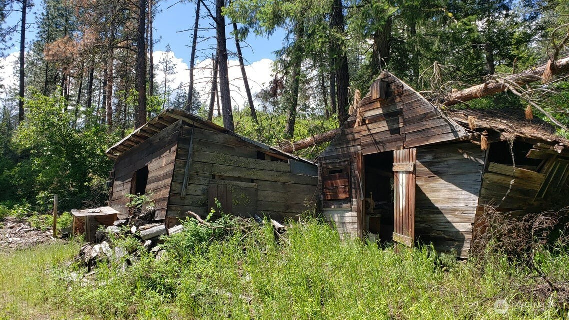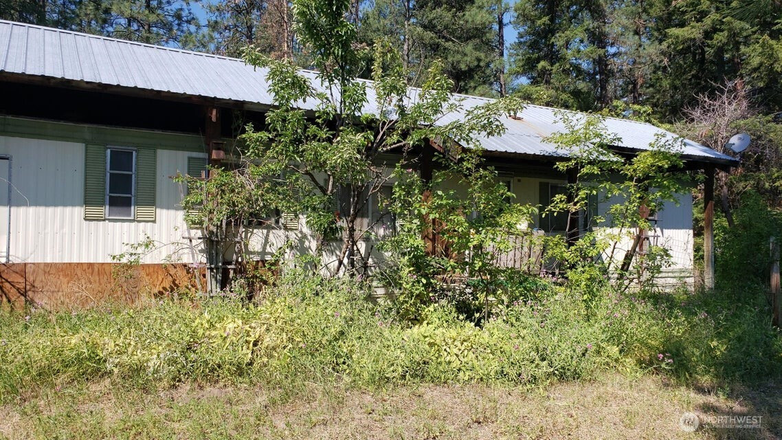 Opportunity knocks! Tear down single wide on 2.8 acres w/power, water & septic plus aged outbuildings & beautiful fruit trees, garden area & Kettle River views. Dug well. This property cleaned up would be a smart investment. The roof over the manufactured to convey at closing.