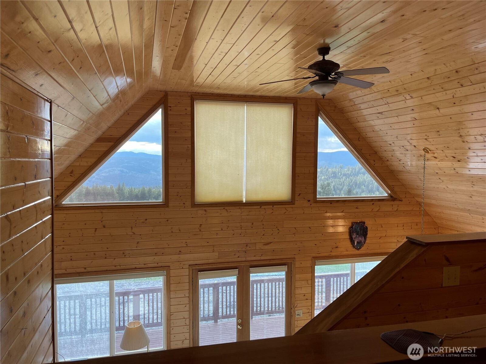 SWEEPING unobstructed 180-degree mountain views! Turn-key property in the heart of Ferry County. This is a rare find as it adjoins thousands of acres of public land! This A-Frame was built in 1998, with much attention to detail, the house features central a/c and heat, 2 beds on the main, primary and half bath on the loft level, another Bedroom and 3/4 bath in the lower level. Large utility/mud room on main. Enjoy endless summer nights on your entertainment-size deck wraps around 3/4 of the home. The house comes fully furnished w/all appliances included. Attached 2 car garage/basement w/ workshop space& location of the guest bedroom & 3/4 bathroom) 40x60 shop, 50% logged & cleared property featuring sprawling fields w/ 3 RV hookups. Completely fenced/gated property! This is the one you have been looking for! Hunters, Short Term Rental, HOBBY FARMERS , year round living there are just so many options!!!!