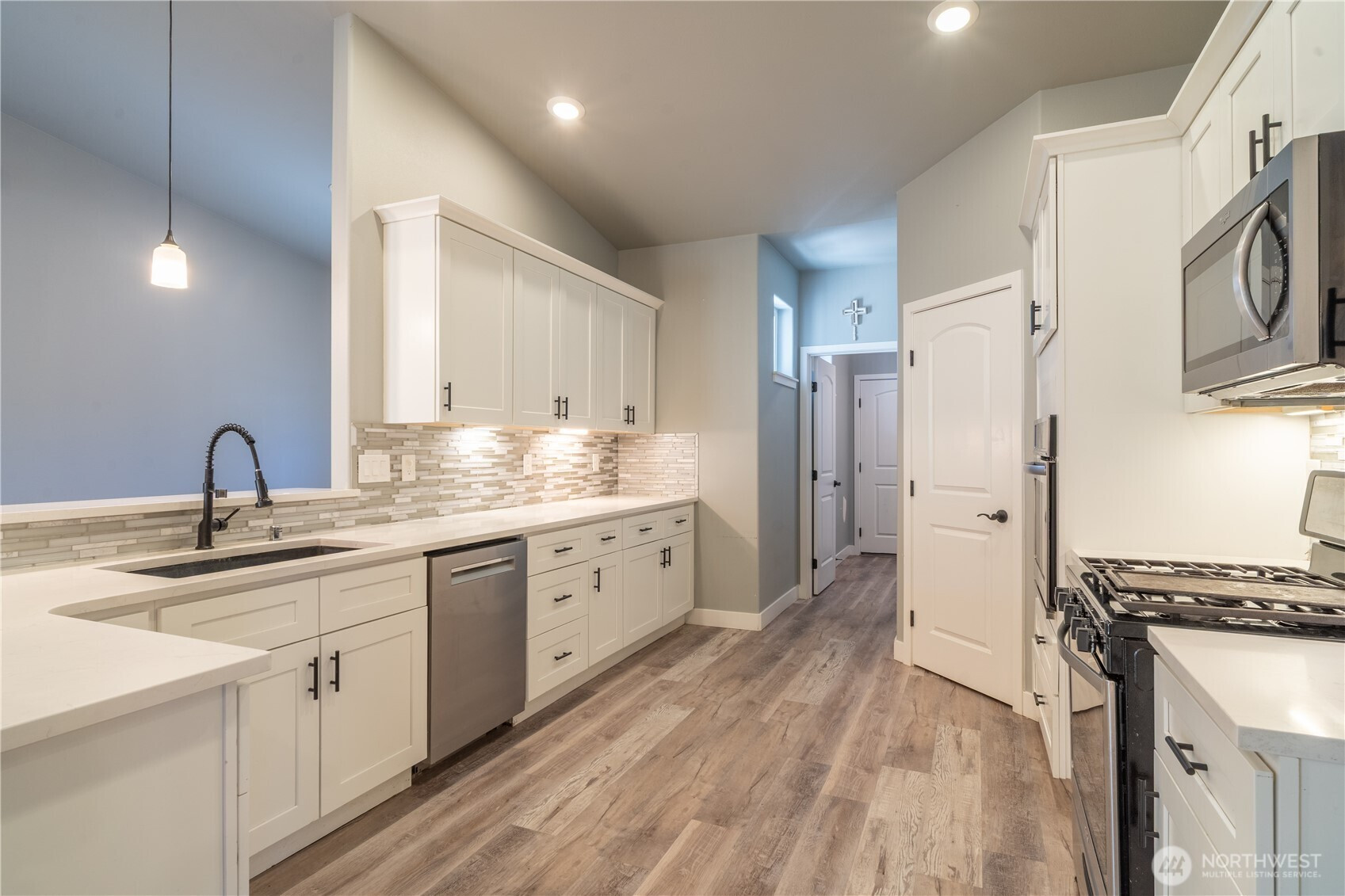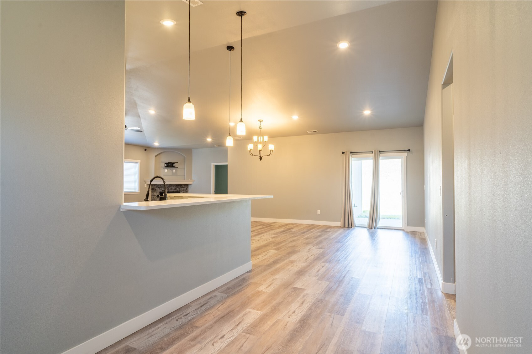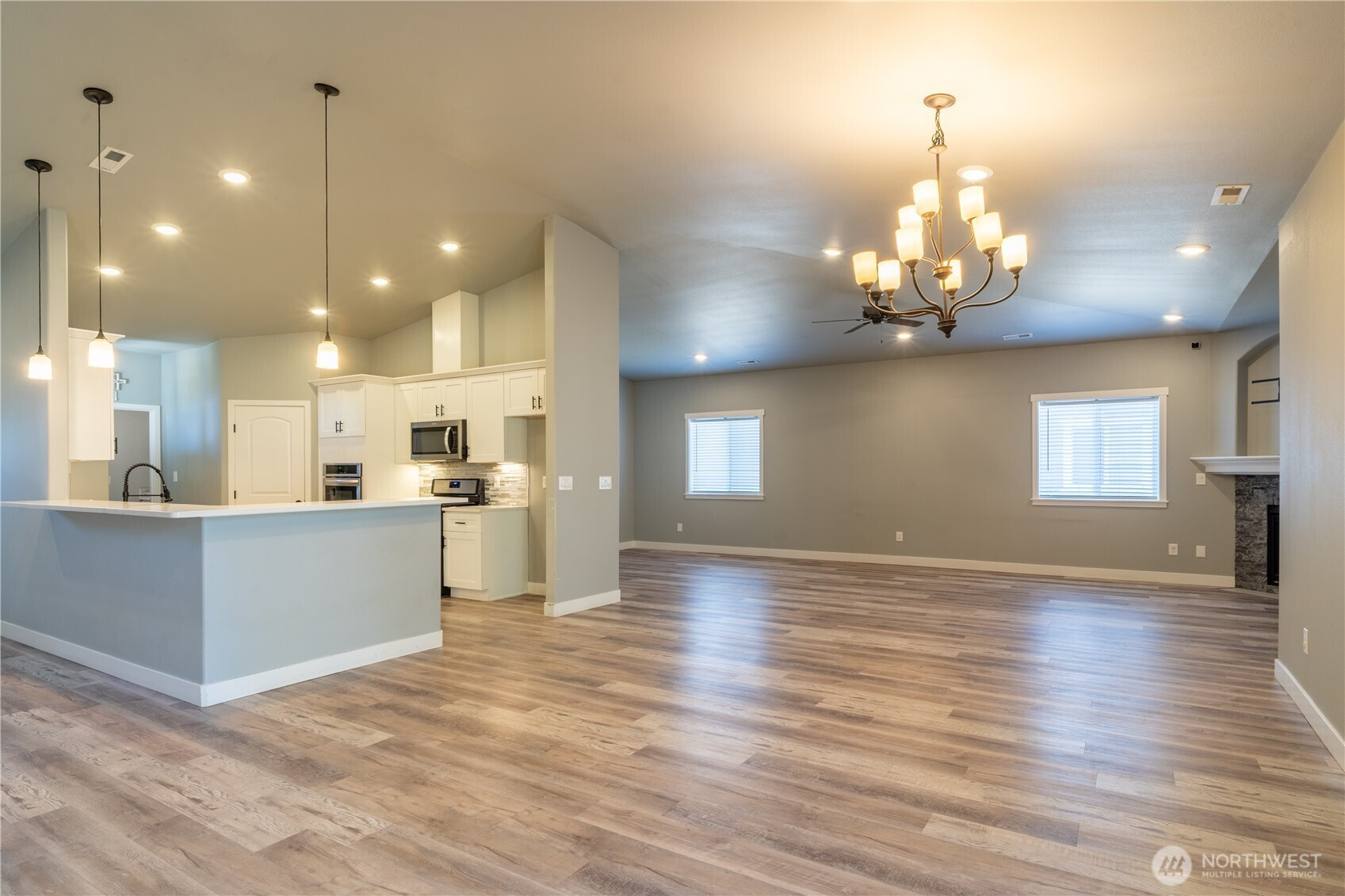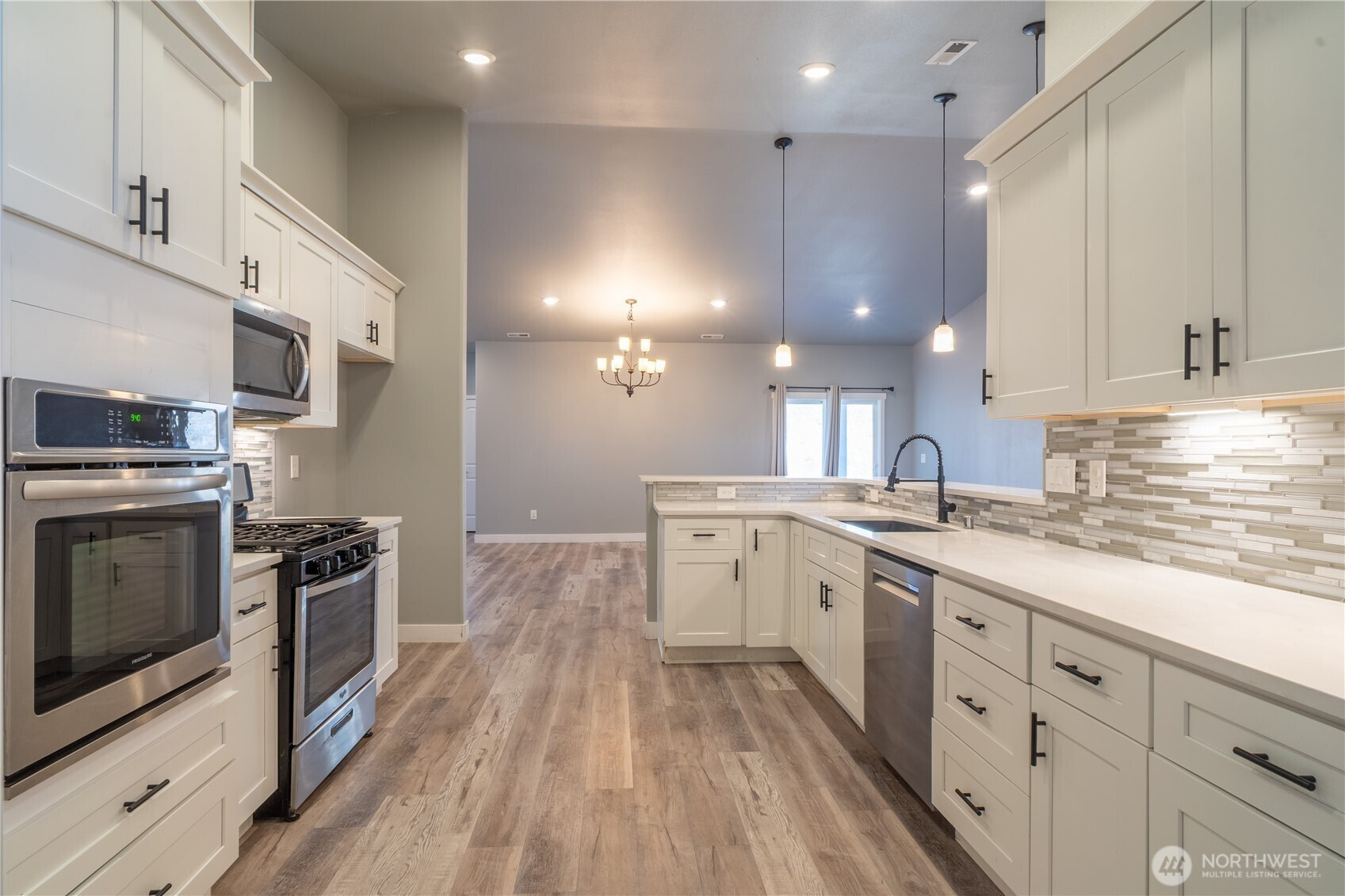 This is a beautiful home in Connell. 4 bedrooms 2 full baths and a 3/4 bathroom in the primary bedroom. Vaulted ceilings. Granite countertops throughout. Nice Kitchen with a gas range. Fireplace in the living room. 2 car garage is fully finished.