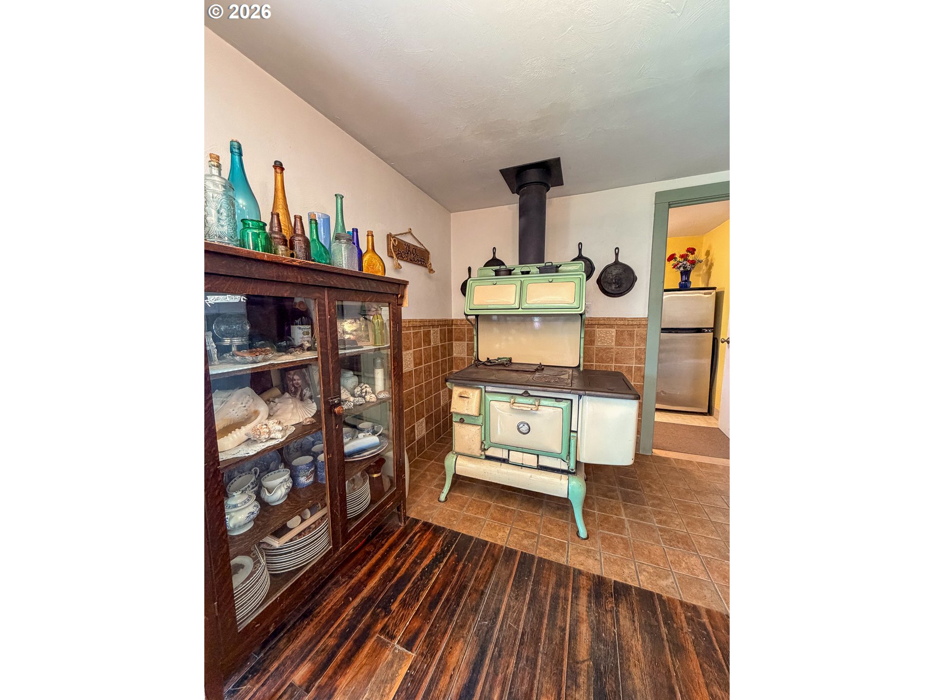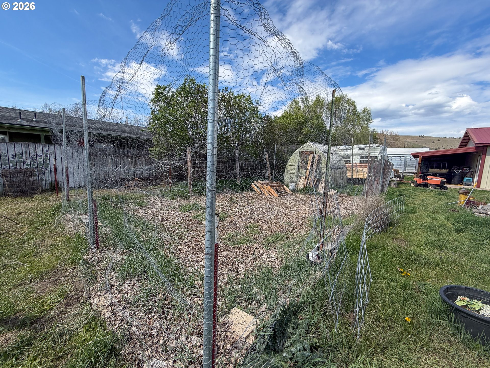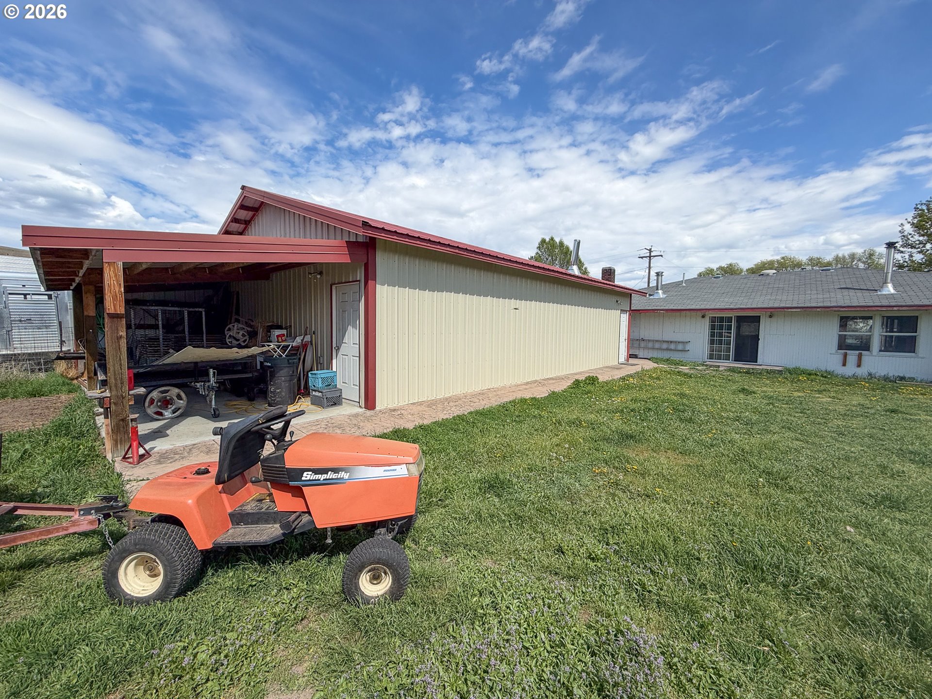 Looking for a home with a shop? This 1947 home offers 2,204 sq ft with flexible living space and a 1,040 sq ft insulated shop featuring sheetrock, concrete floors, 30 & 50 amp power, and included air compressor. The home includes 2 bedrooms, 1.5 baths, a spacious 28’x15’ living room, and a 20’x22’ family room with patio access—ideal for conversion into a primary suite. The main bathroom features a double vanity, soaking tub, and tile shower. Multiple heat sources include a woodstove, oil monitor stove, electric fireplace, and baseboard heaters. Situated on a .40-acre lot with garden space, shallow irrigation well, sheds, chicken coop, and RV access to the backyard. Located just one block from the city park.
