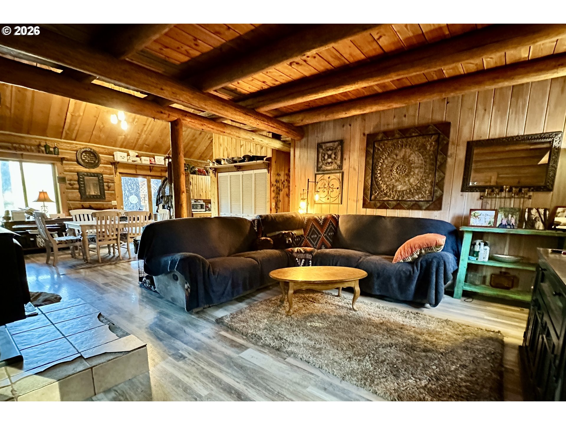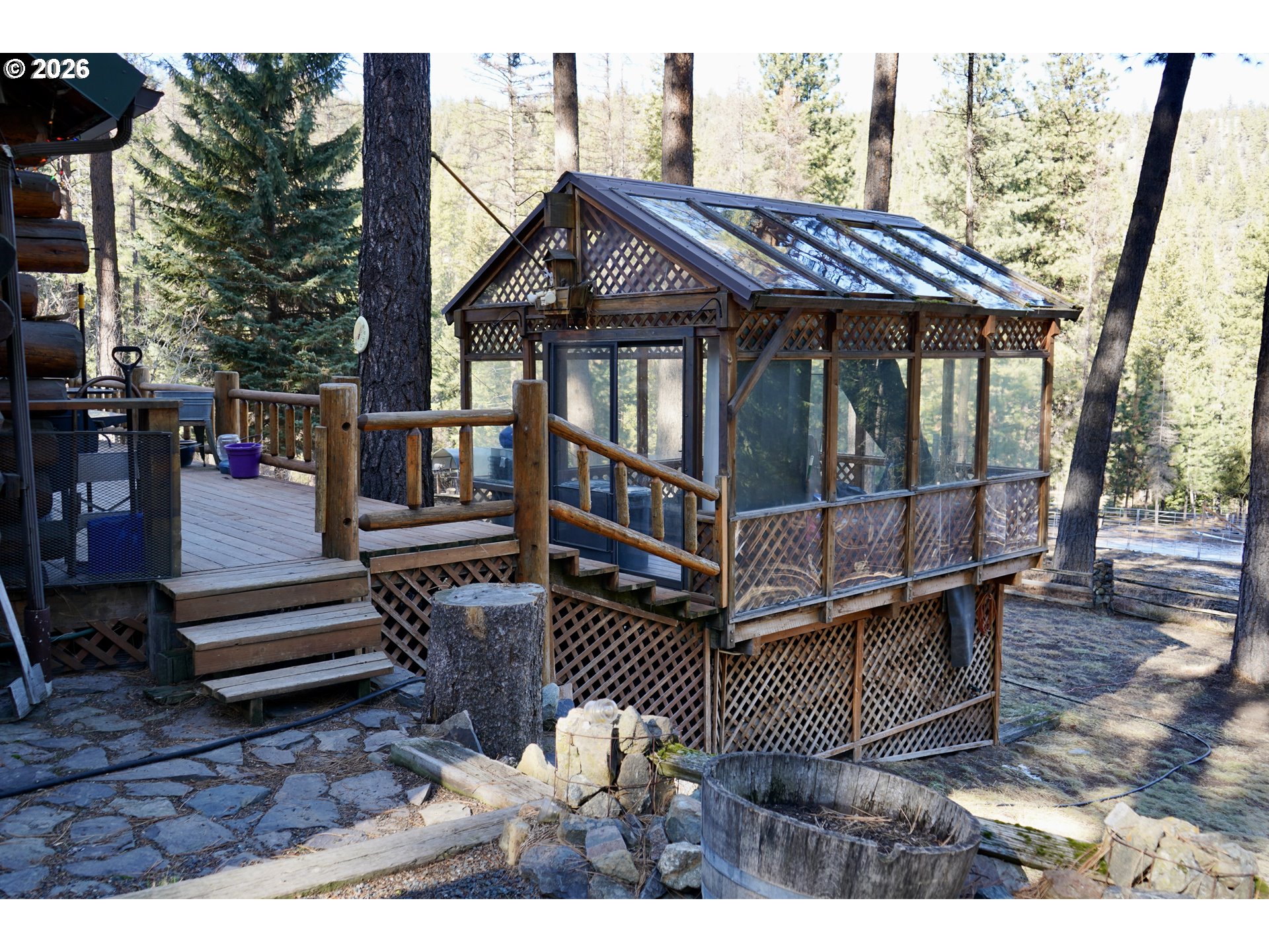 (503) 893-8874Discover the perfect blend of privacy, beauty, and self-sufficient living with this custom-built log home on timbered acreage just several miles from John Day. This property offers a rare combination of usable land and abundant water – ideal for homesteading, rural living, or a private retreat. The custom log home offers warm character and thoughtful design, featuring a main-level living room plus a second living area upstairs. The kitchen includes a propane range. Heating is provided by a wood fireplace with oil backup heat; the hot water heater also runs on oil. The home is supplied by one of several springs on the property, providing abundant water year-round. Step outside onto the expansive 621+/- square-foot deck and take in sweeping views of the irrigated meadow and the John Day Valley. A greenhouse connected to the deck extends your growing season, while attractive landscaping enhances the homesite. A log guest cabin with electricity sits near the main home. The 1,776+/- square-foot shop includes a loft for additional storage and is currently set up with half used as a workshop and half as a gym. Two powered shipping containers provide additional storage options. Access is provided by a well-maintained graveled road. The land is beautifully timbered with multiple conifer species and includes 3.5 acres of flood irrigation water rights. The irrigated meadow is fully enclosed with electric fencing and is ideal for hay production, horses, or a few cows. Pine Creek flows year-round through the property, complemented by several spring-fed ponds. A larger pond with a dock creates a peaceful setting to relax and enjoy the sounds of nature. Wildlife is abundant, with mule deer, turkey, and other native species frequently seen on the property. This property is perfectly suited for those seeking privacy and rural living without sacrificing proximity to town. *Shown by appointment only to pre-qualified buyers – Contact your agent to schedule a tour- Do not trespass*