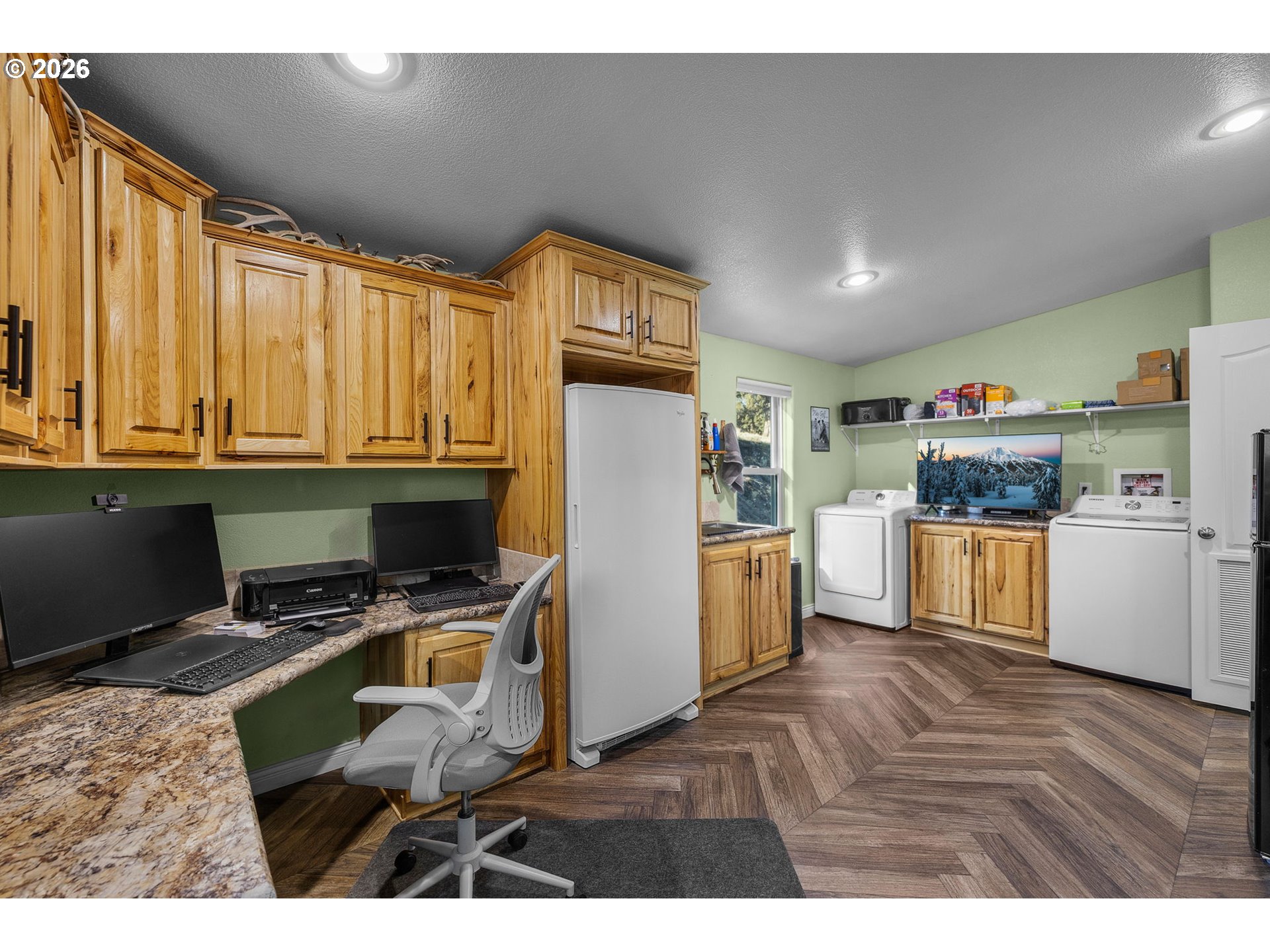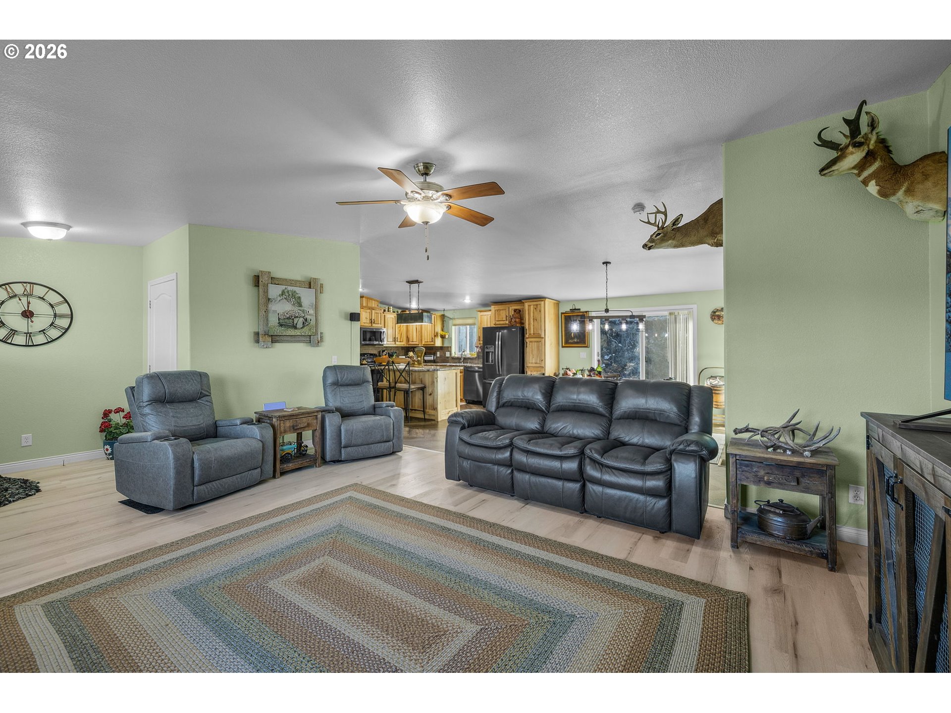 Country Living with Mountain views and overlooking the John Day Golf CourseExperience the perfect harmony of sophistication and rural tranquility. Nestled on a sprawling 1.60-acre lot, this 2,100 sq. ft. residence offers a lifestyle defined by comfort and breathtaking beauty. The interior welcomes you with a seamless open floor plan, anchored by a beautiful open kitchen and dinning, featuring premium stainless steel and black appliances and a functional center island. Every detail has been curated for excellence, including brand-new, high-efficiency Andersen windows and doors that frame panoramic views from every room.Outdoor living is at its finest on the expansive Trex deck, spanning the entire front of the home with covered seating areas to soak in the mountain vistas and the lush fairways of the John Day Golf Course. The primary suite serves as a private sanctuary with direct deck access—perfectly positioned for the 220V hot-tub-ready hookup. Beyond the main home, the property is built for utility and security, featuring a large detached garage, an expansive covered RV structure with additional bays for your "toys," and a full-house Generac generator for uninterrupted power. Property is on city water and att septic system. This is a rare find for those seeking acreage, high-end amenities, and the best views in the valley.