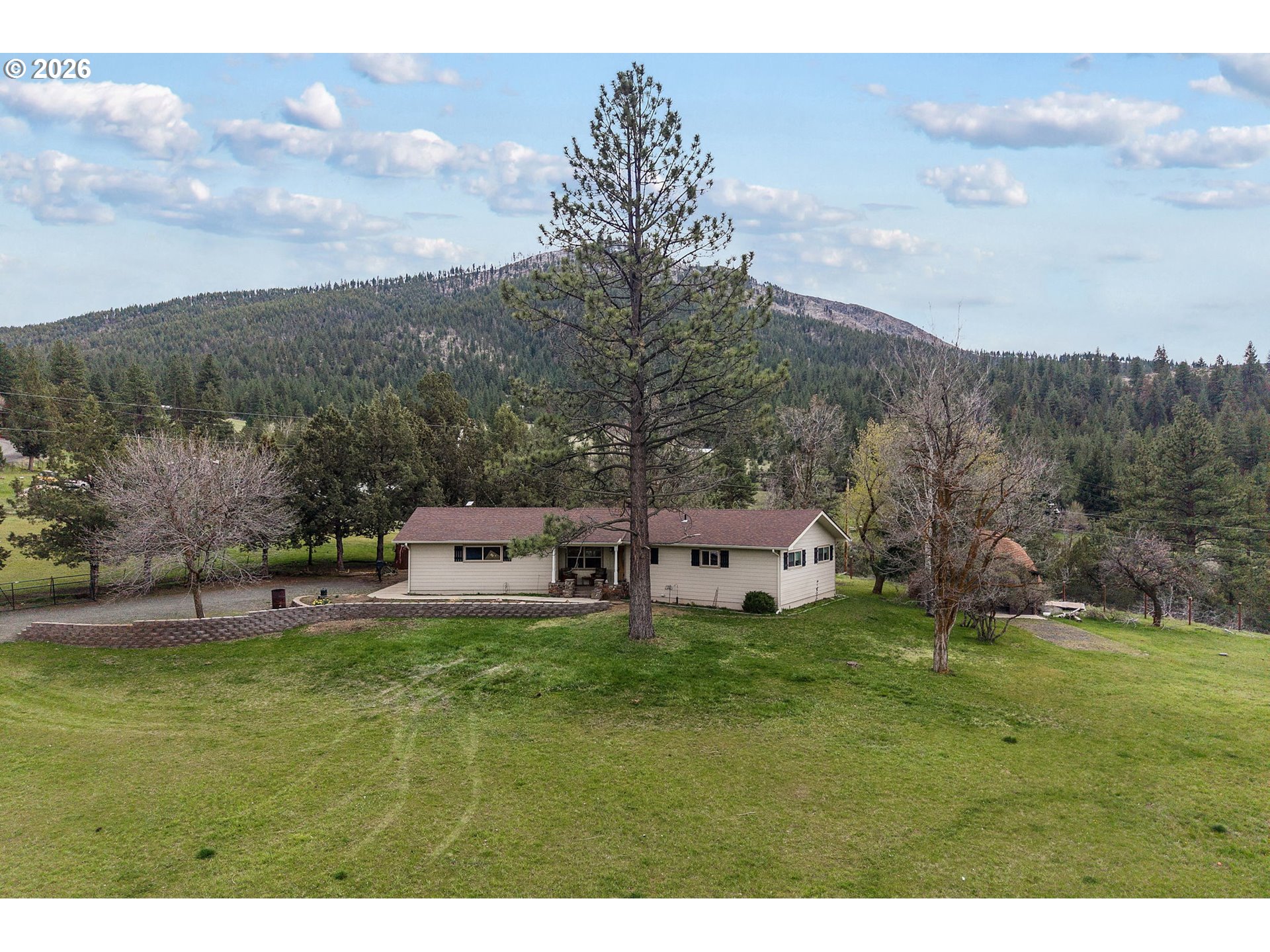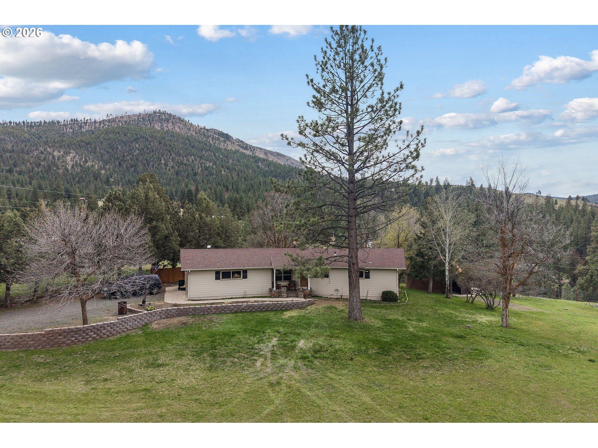 This charming three-bedroom, two-bathroom home spans 1,435 square feet and is situated on a generous 1.18-acre lot. The interior has been updated and features a propane fireplace, an oil furnace, and a forced air air conditioning unit. The property boasts a stamped concrete patio, is fully fenced, and is landscaped with block retaining walls and flowerbeds. Additionally, there is a shop available for storage or personal hobbies, along with ample space for an RV, ATVs or extra vehicles.Located in a sought-after area, this home offers stunning mountain views and large lots that provide ample personal space, all within minutes of public land.