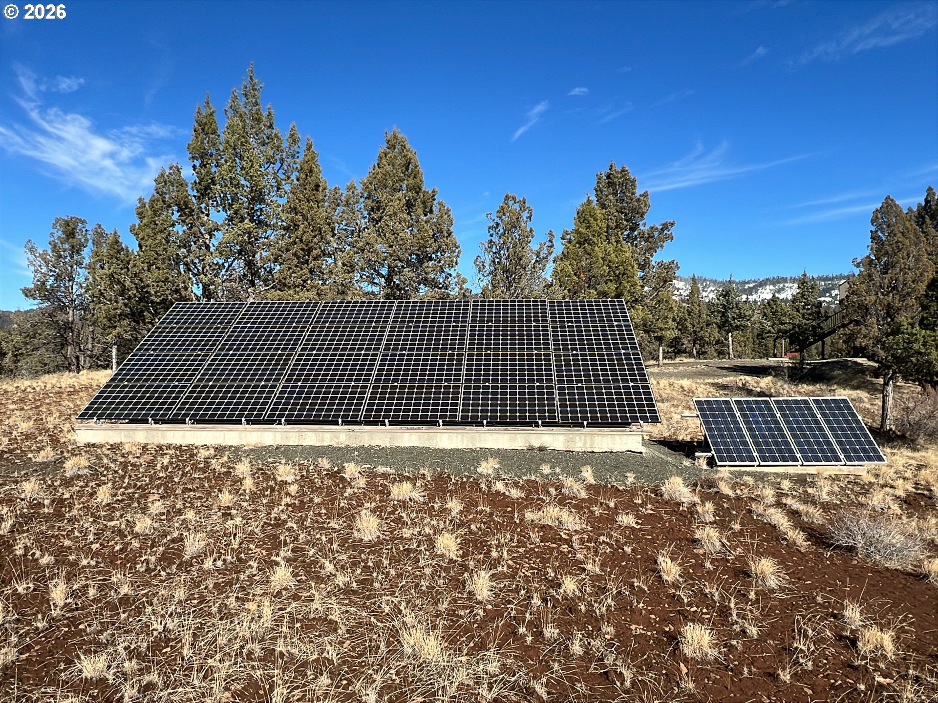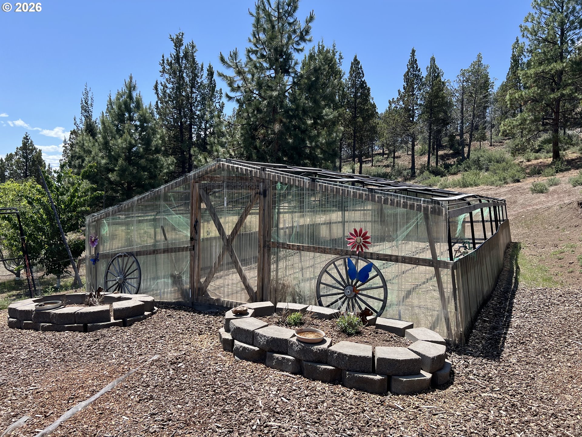 Discover true privacy and self-sufficiency on 80.06 acres with breathtaking mountain views in every direction. This 2006 custom-built home was thoughtfully designed to capture natural light and the surrounding landscape, featuring vaulted ceilings, expansive view windows, and a striking juniper mantel as the living room centerpiece.The chef’s kitchen is built for both function and entertaining, offering granite countertops, a large island, double refrigerator and freezer, abundant cabinetry, and a generous walk-in pantry.The home includes four bedrooms and three bathrooms, highlighted by a spacious primary suite with an oversized walk-in closet. Heated floors throughout provide year-round comfort. An attached two-car garage offers additional storage with built-in shelving.Trex decking wraps across the front of the home, creating the perfect space to relax and take in the peaceful, remote setting.The property is well-equipped for sustainable living with:• Garden area and greenhouse• Established fruit trees: apple, pear, cherry, filbert, plum, prune, and apricot• 495 sq ft outbuilding (ideal for wood storage or additional garage space)• 36’ x 48’ shop with three automatic doors• 1,080 sq ft two-level guest quarters (3 bed / 2 bath)• Private lookout with panoramic 360-degree viewsPower is supported by a diesel generator (approx. 2 years old), 24 high-capacity batteries, and solar panels. The acreage is perimeter fenced and naturally landscaped with pine and juniper trees, enhancing both privacy and beauty.A rare opportunity to own a fully equipped off-grid estate designed for comfort, independence, and extraordinary views. LOP Tags for cow elk.