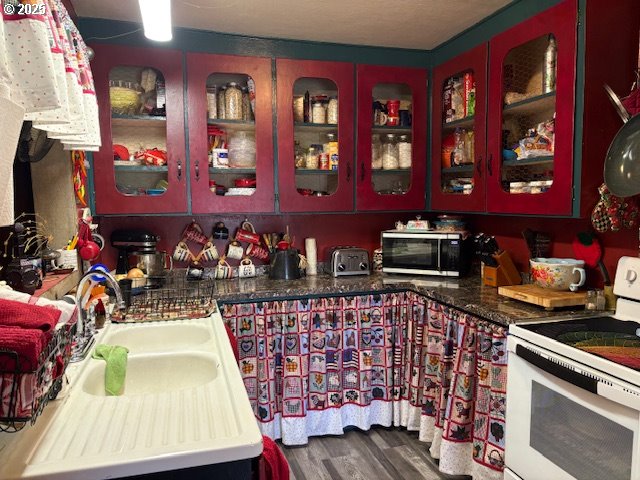 Cozy Dayville Home w/Country Charm! Located off of the south fork road and is within walking distance to the city park, great opportunity to live in a small rural community, living room features wood accents, kitchen features wood cabinets, vintage sink & dining area, 1550 sq ft, primary bedroom, guest bedroom, guest bath w/full tub/shower, large sunroom/office area, upper bonus room, large walk in pantry, laundry area, wood & oil heating, carpet & laminate flooring, covered front porch, metal roof, back patio, fenced yard, garden area, fruit trees, detached garage/workshop, on and off street parking. $226,500 #1162