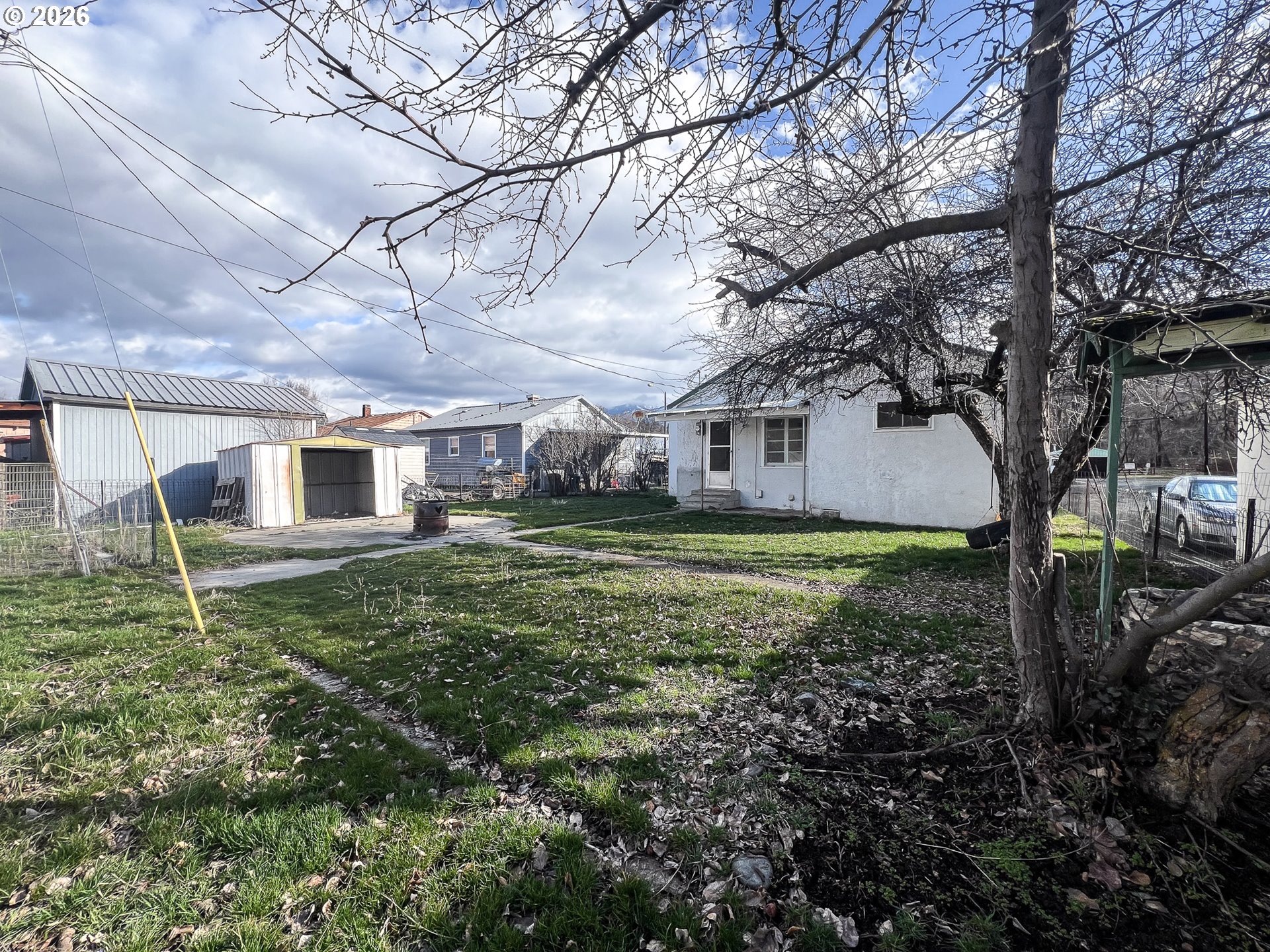 Centrally located 1,140 sq ft home offering great potential as a starter home or investment property. The home features a durable metal roof and an approximately 18’x13’ living room with charming curved archways leading to the kitchen and hallway. An oil monitor stove provides heat in the main living area.The kitchen includes original cabinetry and space for a small dining table. Laundry room is approximately 13’x8’ with additional storage. One bedroom serves as a pass-through to the back bedroom, which includes a large closet and built-in dresser.Windows are a mix of vinyl, aluminum, and wood frames. The .12-acre lot offers a fenced backyard, small covered patio off the home, additional uncovered patio space, and a metal storage shed for tools. On-street parking. Property is located in the flood plain.