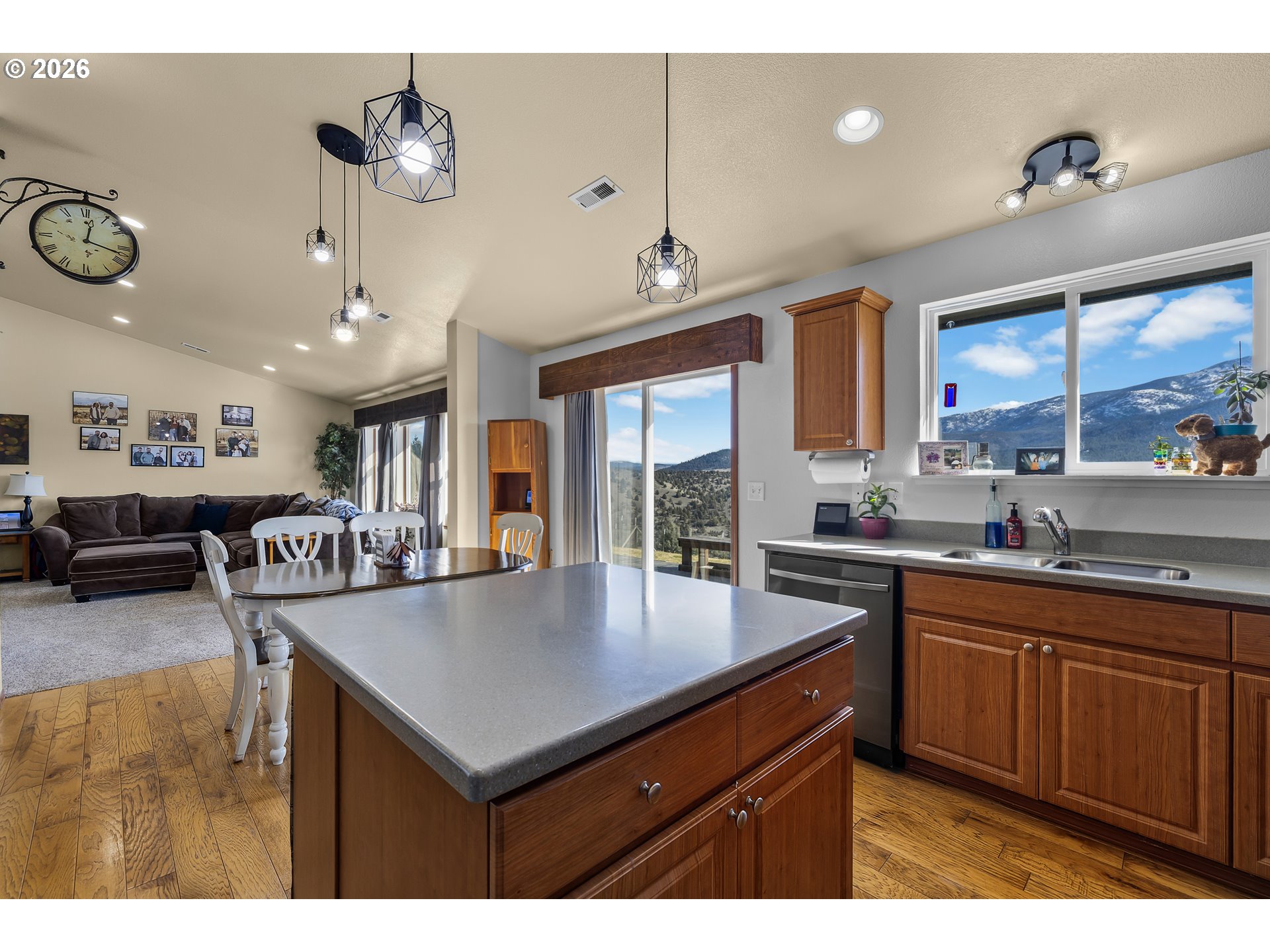 (503) 893-8874Custom-built in 2010, this 2,154 sq ft home sits on 5 fenced acres and offers breathtaking views of Canyon Mountain that feel up close and personal. The composition roof is just 2 years old, and the exterior paint was completed 1 year ago.Inside, you’ll find vaulted ceilings in the living room and kitchen, creating an open, spacious feel. The living room features a shiplap accent wall, electric fireplace for ambiance, and a large flat-screen TV that is included. The open-concept kitchen offers an island, pantry, and black stainless-steel appliances.The home includes 4 bedrooms plus a non-conforming 5th bedroom currently used as an office, along with 2 bathrooms. The vaulted primary suite is generously sized and features a walk-in closet, double vanity, tile shower with dual shower heads, and a private toilet room. A southwest-end bedroom includes its own exterior entrance and mini-split system—ideal for guests, multi-generational living, or a private workspace.Additional interior features include a laundry room with utility sink and storage, ducted heat pump for efficiency, and a 598 sq ft attached 2-car garage.Outside, the 960 sq ft barn includes two animal stalls, a built-in chicken coop, and storage space. A 200 sq ft shed with concrete floor and built-in shelving provides additional storage. The property is connected to city water and served by a sand filter septic system.Enjoy established fruit trees—apple, pear, cherry, nectarine, and plum—along with raspberry bushes. Underground sprinklers for the yard. Relax on the wood deck overlooking the mountain views or unwind in the included hot tub after a long day.