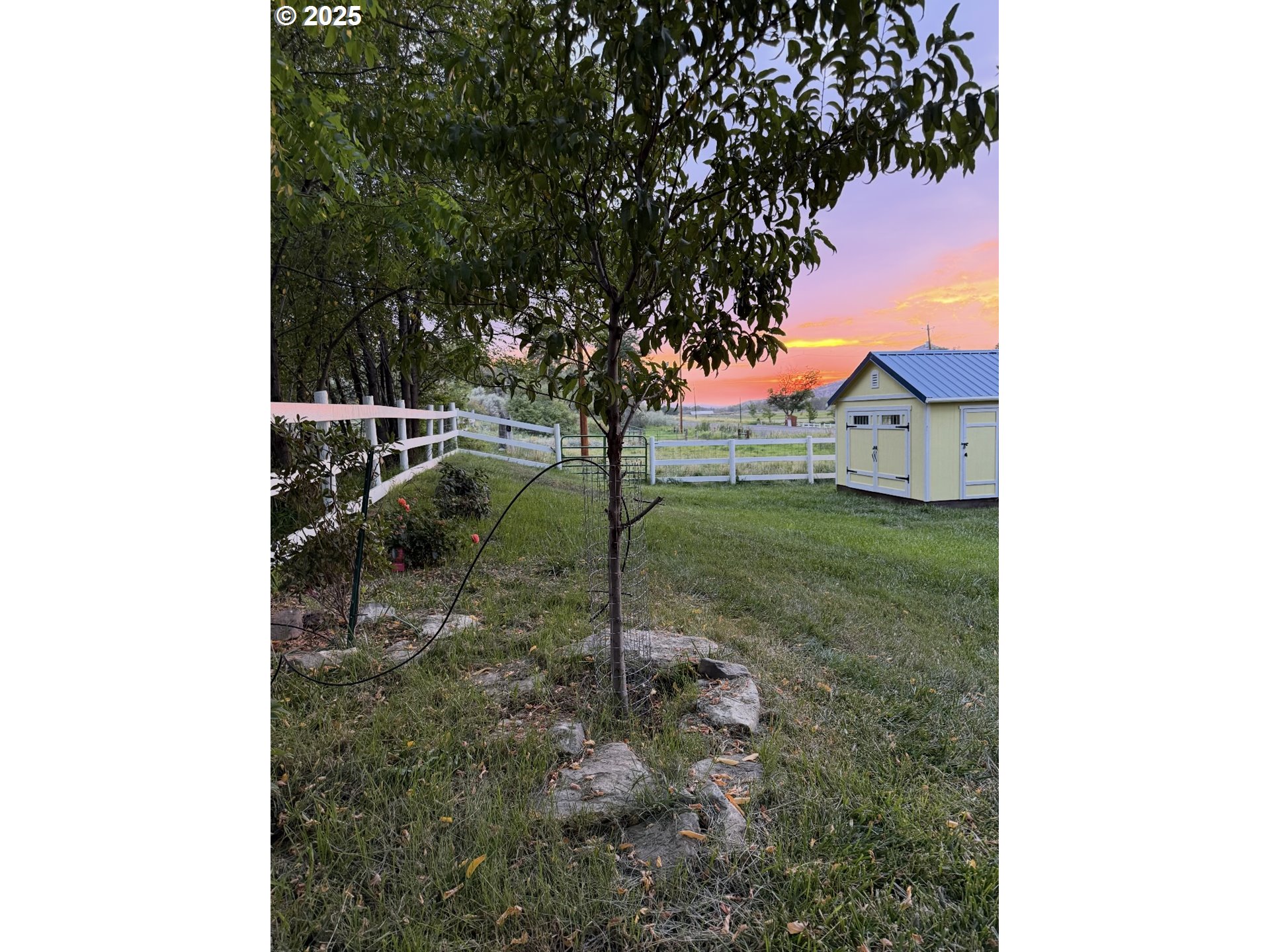 The property spans 1.08 acres and features two fenced pastures with water rights from the ditch. It includes a charming 1900 stick-built residence offering 816 square feet of living space. The kitchen has been updated with hickory cabinets, Formica countertops, and new stainless-steel appliances, all included in the sale. A washer and dryer are also provided. For heating, the home is equipped with a propane furnace, while a swamp cooler and a window AC unit are available for comfort. The flooring throughout the home consists of tile, hardwood, and laminate. Freshly painted interiors enhance the inviting atmosphere. A new tub surround was installed with glass sliding doors.Additional features include a 7' x 12' shed for extra storage and a 12' x 24' hickory shed with power and some loft storage. The property boasts various plants, including peach, cherry, plum, blueberry, raspberry, and blackberry bushes, as well as ornamental plum, weeping cherry trees, irises, and flaming bushes, creating a stunning backyard. Utilities include a shared well and septic system.