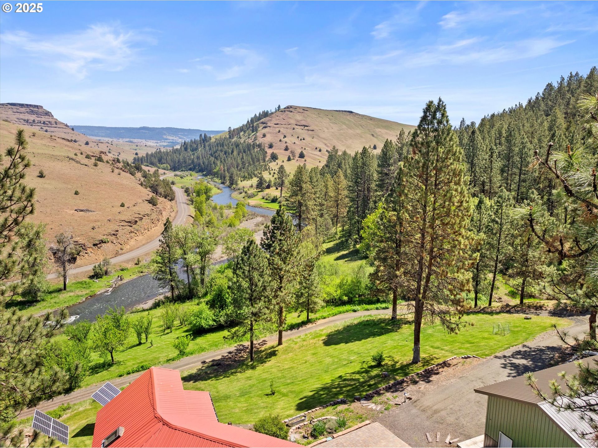 Welcome to Rockin’ River Ranch—238± deeded acres of wild and scenic riverfront along Oregon’s Middle Fork of the John Day River. Offering 0.75± miles of river frontage, this rare, off-grid retreat combines breathtaking natural beauty with a sustainable lifestyle. The 1,903 sq ft home, remodeled in 2022, offers 2 beds, 2 baths, and is powered by solar and hydroelectric systems, supported by gravity-fed spring water. A 10’x20’ guest cabin sits near the river, and additional structures include a large 3-bay shop, two barns, a greenhouse, and a storage shed. Grandfathered under the Wild & Scenic Rivers Act, the home sits just 300± ft from the river—an exceptionally rare opportunity. Enjoy year-round recreation: fishing, kayaking, and relaxing by the water; then explore thousands of acres of public lands nearby, including direct access to Malheur National Forest and close proximity to Umatilla and Whitman National Forests. Eligible for 2 elk and 2 deer LOP tags, you can also enjoy seasonal hunting on your very own land. Should a second home on the property fit in your vision, a replacement dwelling permit is available. Conveniently located near amenities and charming towns, yet secluded, this property offers the ideal balance for those seeking autonomy, nature, and a true legacy property. Rockin’ River Ranch invites you to reconnect, recharge, and redefine what home means in the heart of Eastern Oregon. Seller willing to carry contract at 4.95%, call for more information. This property is co-listed with Dixie Barry of Fay Ranches, Inc.