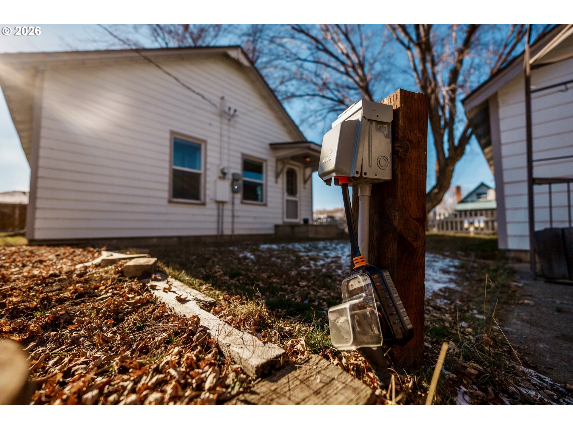 Experience a quiet lifestyle in this charming 1950s cottage-style home, located in the scenic town of Prairie City. The home features beautifully refinished hardwood floors and modern French doors that open from the dining area to a private deck—perfect for enjoying the morning sun. The living room serves as a cozy and comfortable retreat with its classic wood burning fireplace and newer appliances, including a stacked washer and dryer, ensure modern convenience.The exterior has been enhanced with durable Hardie plank siding on both the main house and the garage. Outdoor enthusiasts will appreciate the gravel driveway accessible from the back alley, offering secure parking for an RV or boat behind a metal gate, complete with a 30-amp plug. The property also includes a dedicated garden spot and a garage featuring a newer roof, and door, with a solid concrete floor.Ideally situated just down the road from the historic DeWitt Museum at Depot Park, residents can enjoy easy access to local heritage and breathtaking views of the Strawberry Mountains. This home perfectly blends cottage/bungalow character with functional modern upgrades in a peaceful community setting.