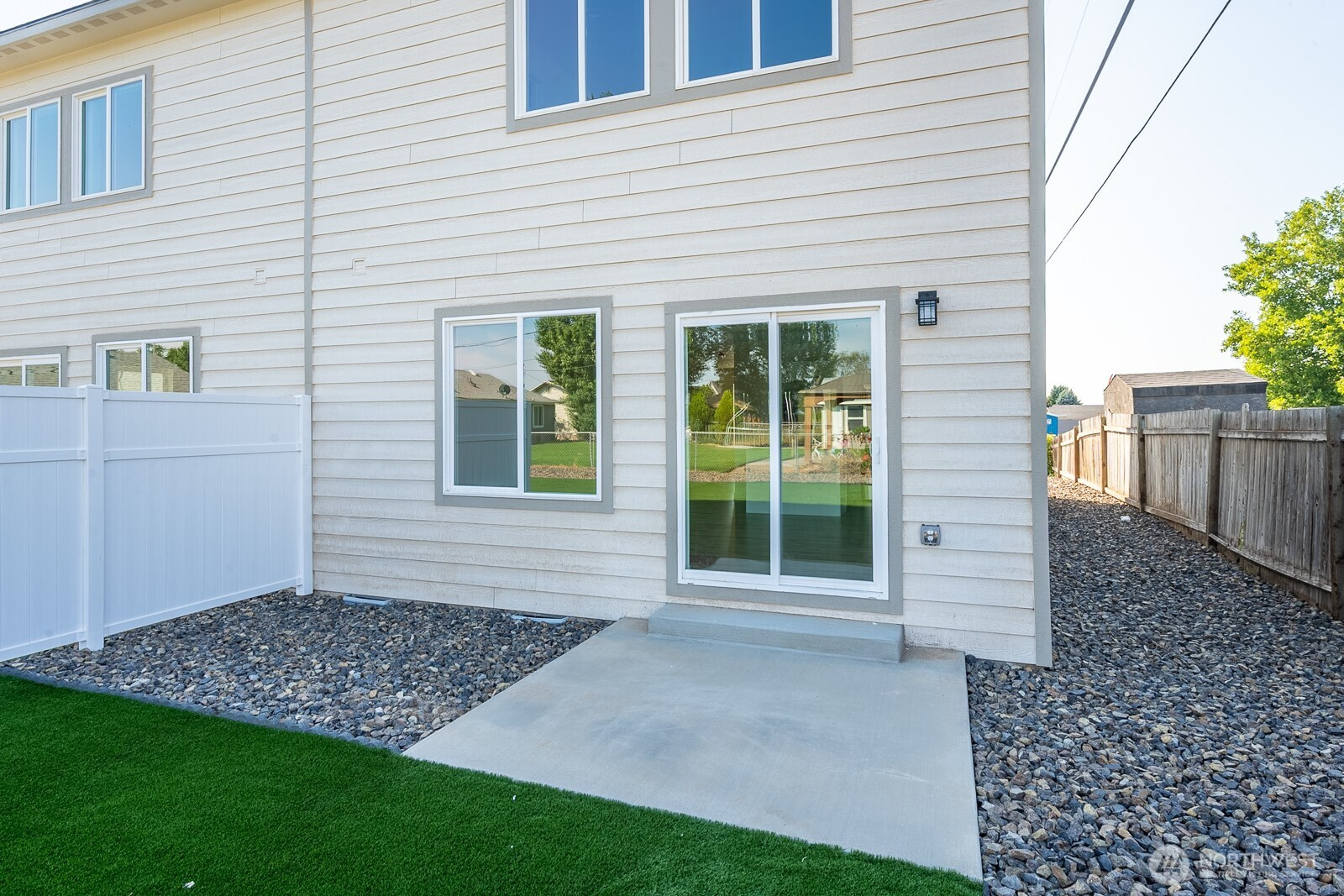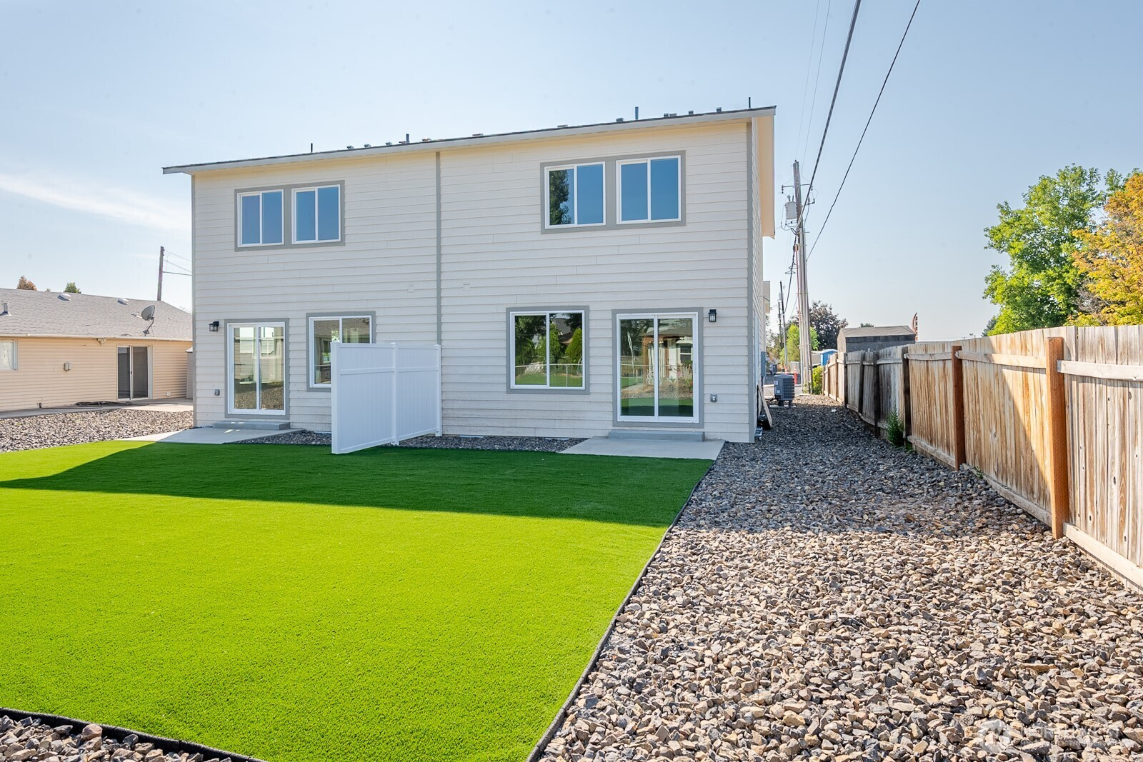 This bright and well-maintained home, built in 2023, showcases modern finishes throughout. The thoughtfully designed floor plan offers open living spaces on the main level with all bedrooms located upstairs for added privacy. The kitchen is both stylish and functional, featuring quartz countertops, a pantry, island, and a full suite of appliances including refrigerator, microwave, oven, and dishwasher. Durable laminate flooring throughout provides a contemporary look with easy upkeep. The primary bedroom includes an en-suite bathroom and a walk-in closet, creating a comfortable private retreat. Additional conveniences include washer and dryer hookups and central heating and air conditioning for year-round comfort. Outside, enjoy low-maintenance landscaping with turf grass and a partial fence, offering privacy without sacrificing open space.