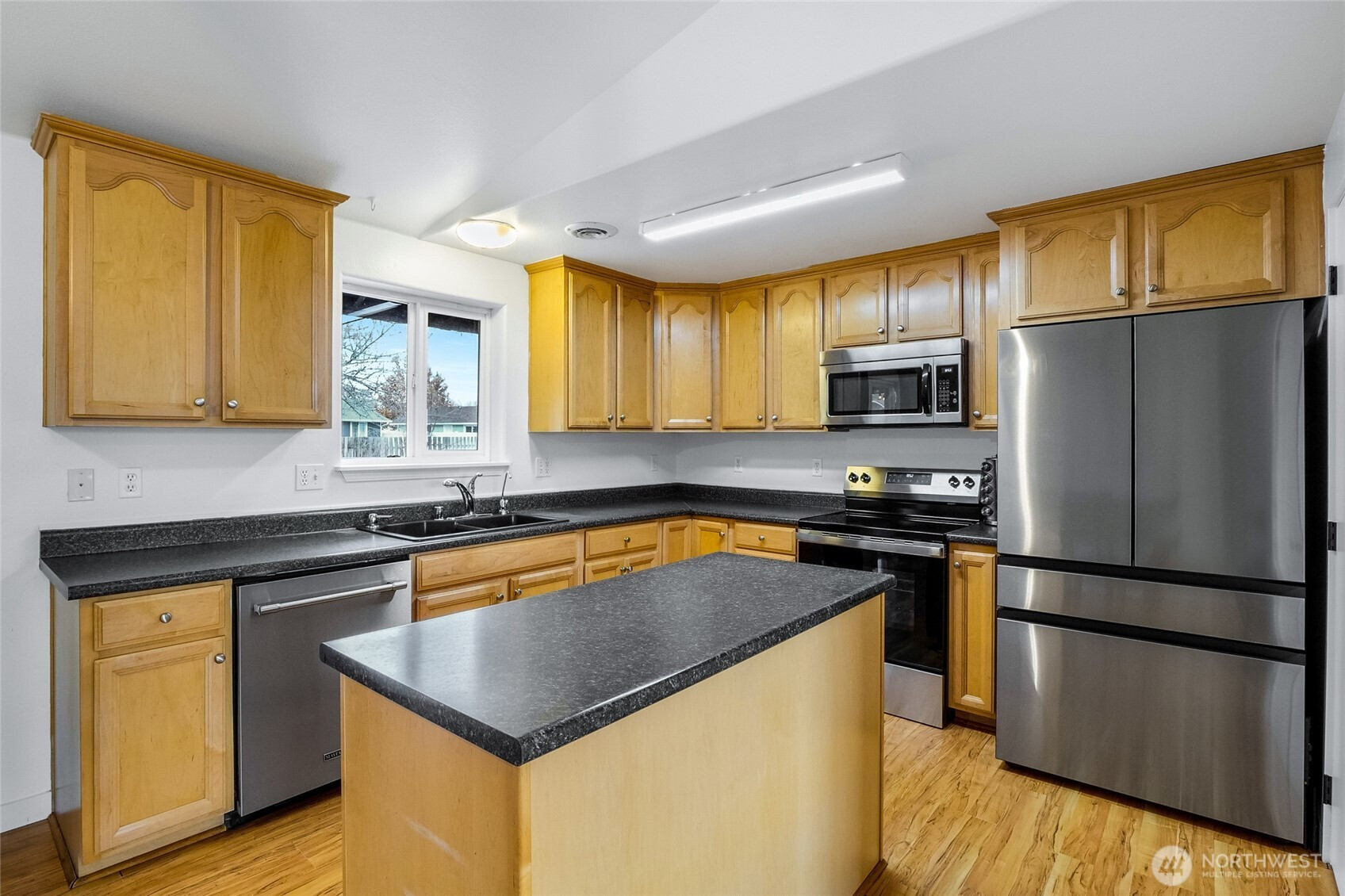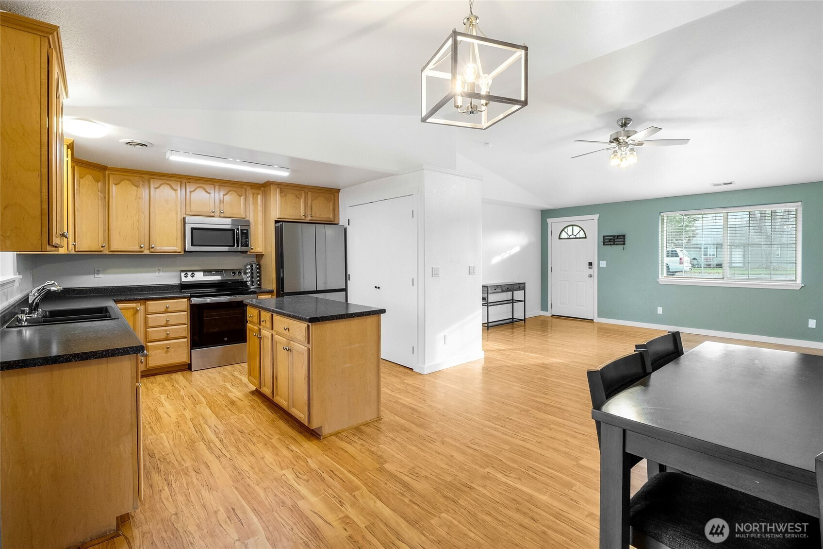 This 3 bedroom, 2 bathroom residence is nestled in a quiet cul-de-sac just over 1/4 acre. The interior has been tastefully updated with freshly painted interior doors and new hardware, while both bathrooms have been fully remodeled. The primary bathroom boasts a sleek tile shower with glass doors. The kitchen features stainless steel appliances, including a brand-new stove and refrigerator, and select rooms have been repainted. Additional updates include the replacement of ceiling fans and dining room light fixtures. The exterior has been enhanced with a repainted shed and recent landscaping.
