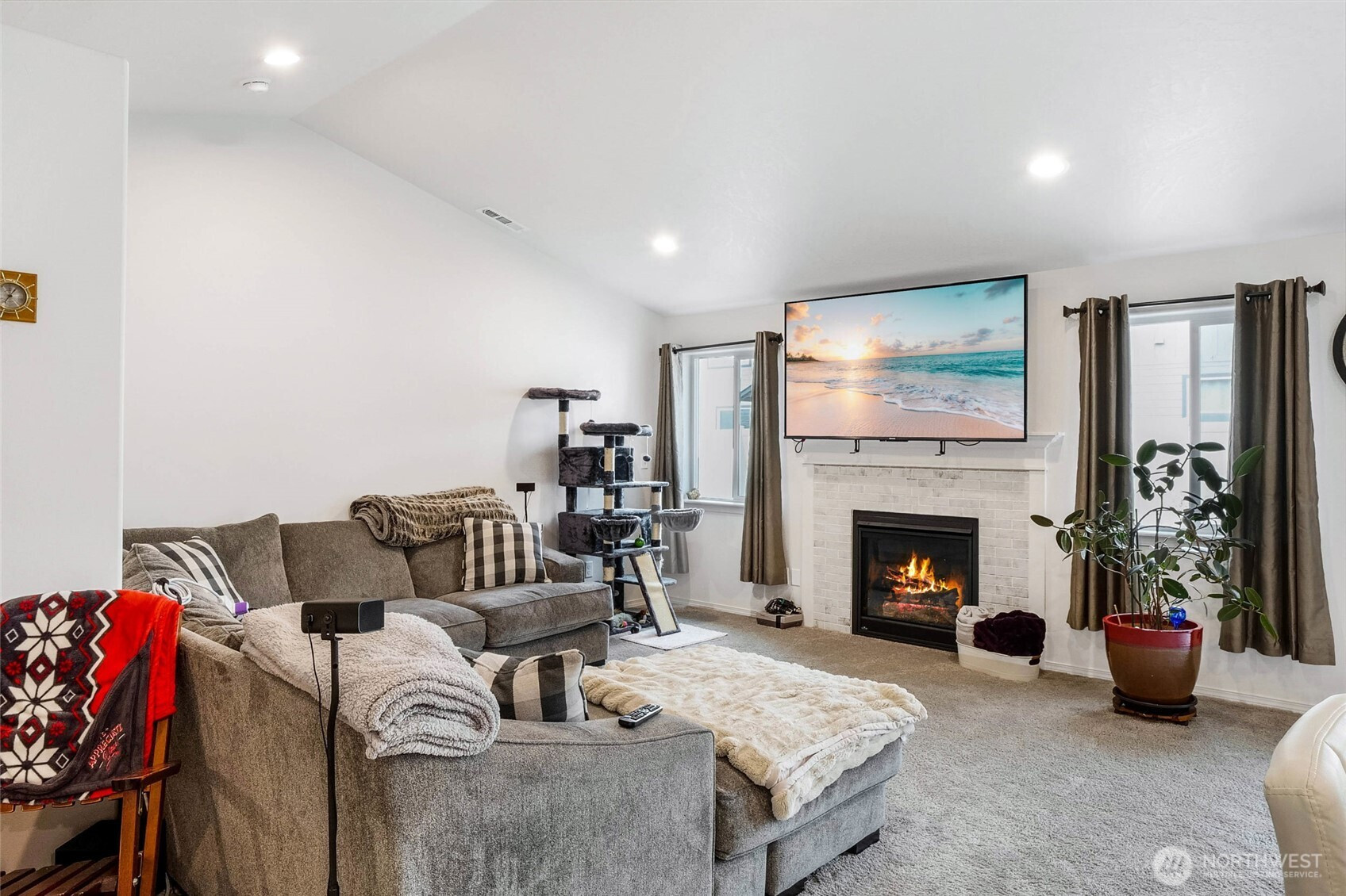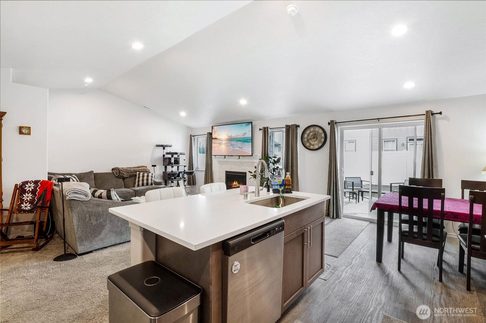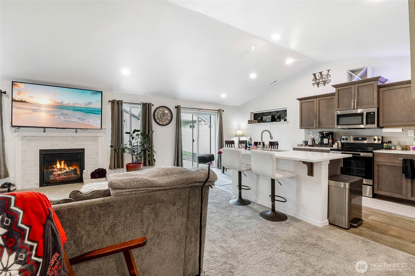 Welcome home to this beautifully designed 1,408 sq ft gem offering comfort, style, and functionality. This 3 bedroom, 1.75 bath home features an inviting open concept layout with vaulted ceilings that create a bright and spacious feel throughout the main living area. Cozy up during cold winters with the fireplace in the living room. The kitchen features sleek quartz countertops, ample cabinetry, large pantry, and seamless flow into the dining and living spaces. The private primary suite is a true retreat, complete with two walk-in closets, dual sinks, and shower. Outside features a fully fenced backyard, patio great for barbecuing in the summer time, and a park just down the street. This home blends modern finishes with everyday comfort! Don't miss your opportunity to make it yours! Call me today for a showing.