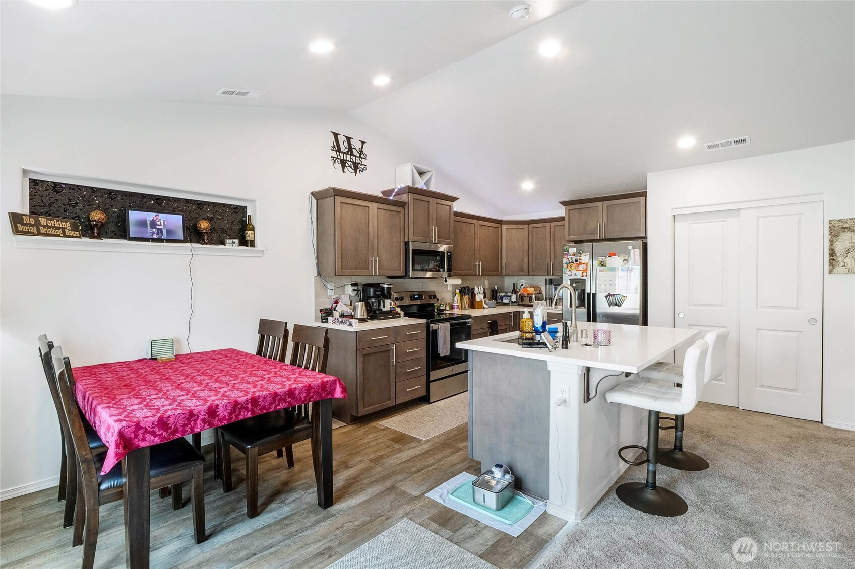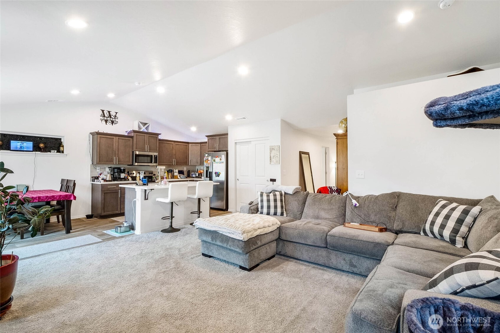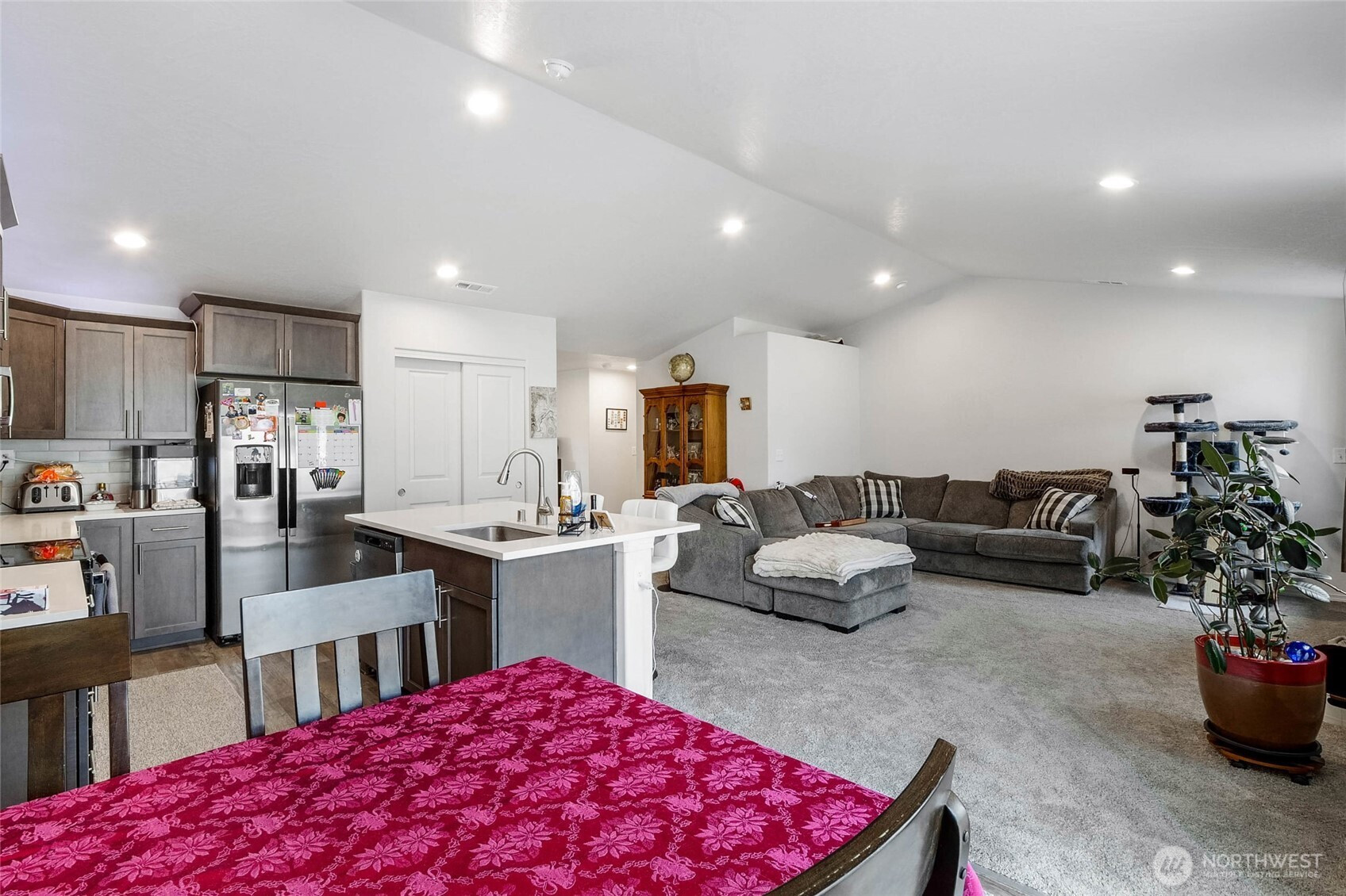 Welcome home to this beautifully designed 1,408 sq ft gem offering comfort, style, and functionality. This 3 bedroom, 1.75 bath home features an inviting open concept layout with vaulted ceilings that create a bright and spacious feel throughout the main living area. Cozy up during cold winters with the fireplace in the living room. The kitchen features sleek quartz countertops, ample cabinetry, large pantry, and seamless flow into the dining and living spaces. The private primary suite is a true retreat, complete with two walk-in closets, dual sinks, and shower. Outside features a fully fenced backyard, patio great for barbecuing in the summer time, and a park just down the street. This home blends modern finishes with everyday comfort! Don't miss your opportunity to make it yours! Call me today for a showing.