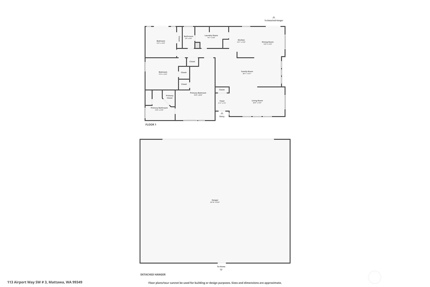 Rare massive Airport Hangar Available! Fly in for a long weekend & experience the peace & beauty of Desert Aire, Washington. Enjoy golf, boating on the Columbia, parks, wineries, pickleball, pool, trails and more. This prime runway lot includes a huge 60’x50’ airplane hangar (or a shop that holds up to eight vehicles) plus RV parking. The 3-bed, 2-bath, 2,440 sq ft home features generous living areas, a spacious kitchen, and an oversized primary suite with sitting space. Large secondary bedrooms with one offering an exterior entrance—perfect for a home business. DA owners enjoy ownership in the award-winning golf course, the community pool, and join the gym for a low annual fee. Come see us in Desert Aire! Go to www.daoa.org to learn more!