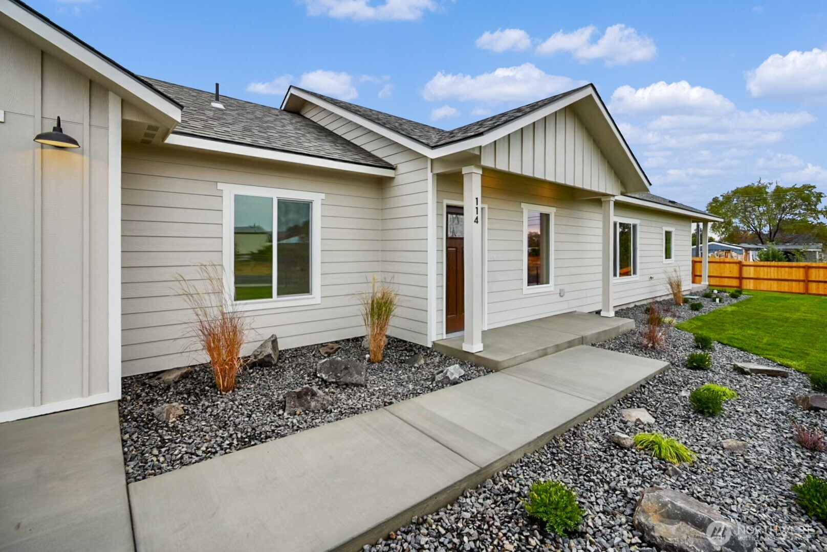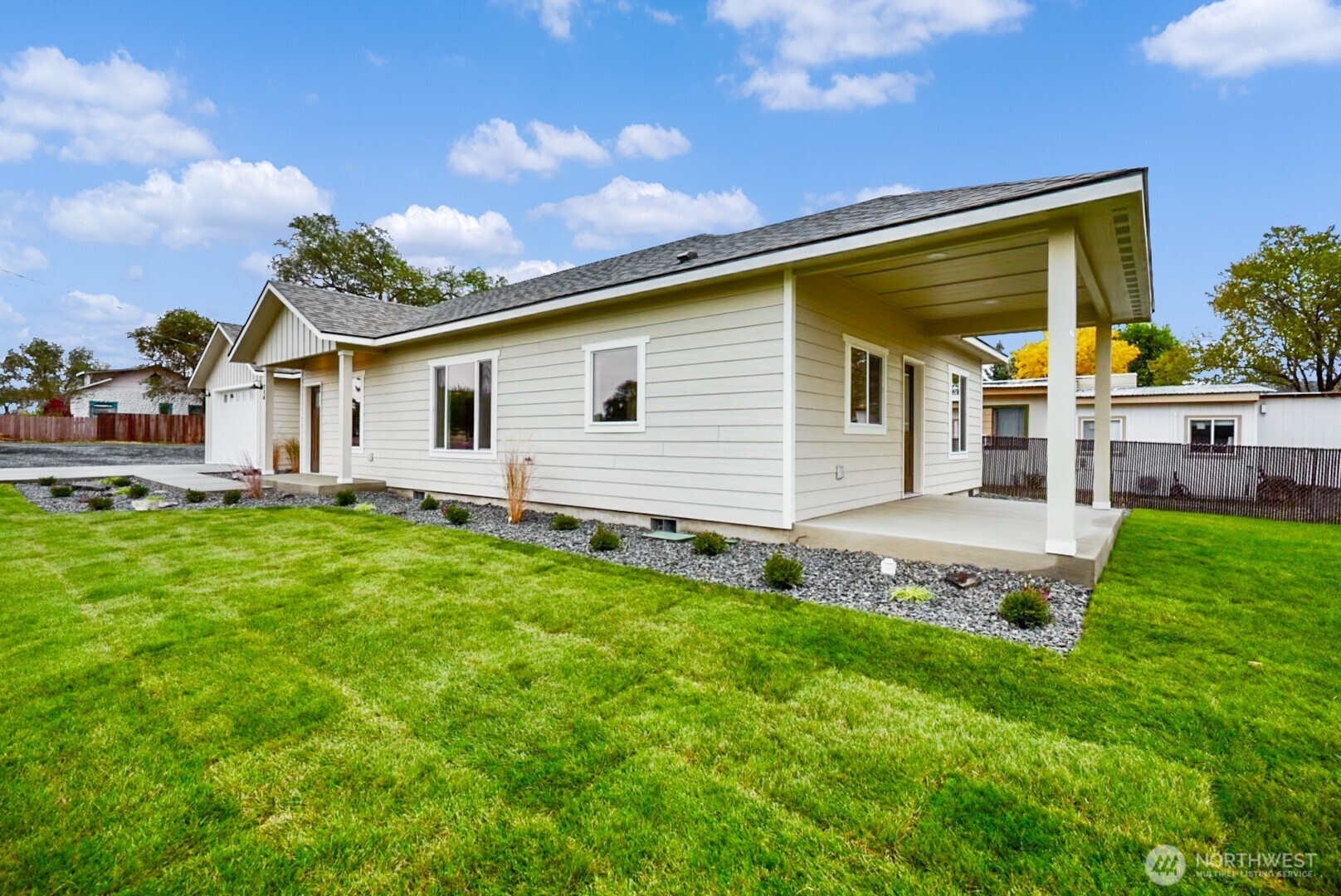 $10,000 seller credit!! One of a kind, new construction 3bd +office, 2bth home just minutes to the lake. This home offers 1450 sqft. of open concept living space. Quality finishes throughout including laminate flooring and carpets in the bedrooms, quartz countertops throughout, stainless steel appliances and modern cabinetry. Spacious primary suite with large walk-in closet and en-suite bath. Enjoy outdoor living with a landscaped yard and a large 8x15' patio! Attached finished 2 car garage and covered entry. Extra parking on side of home. Conveniently located just minutes from the lake, eateries and grocery. Burned manufactured home next door will be removed soon.