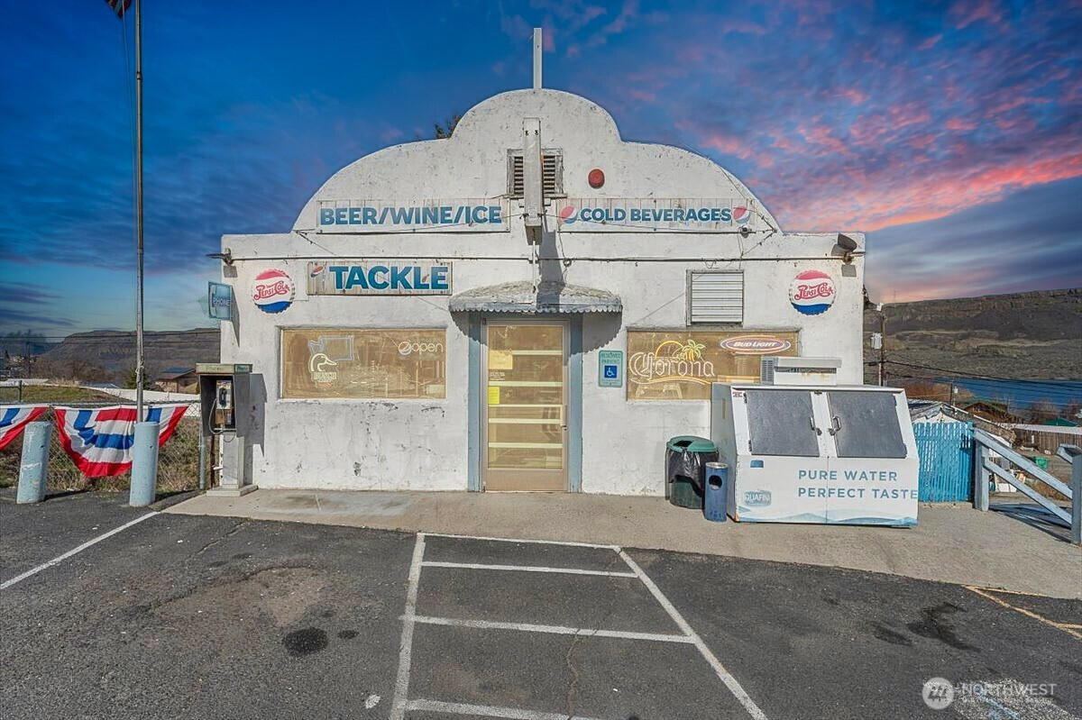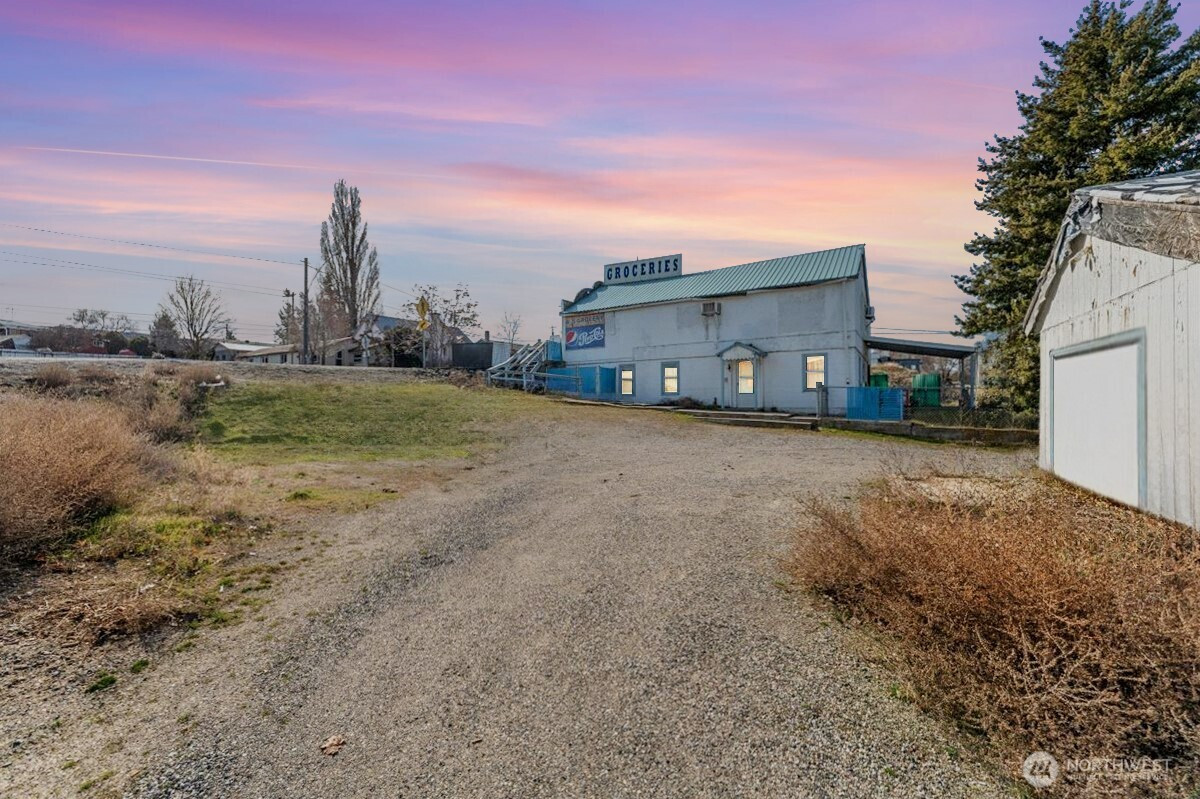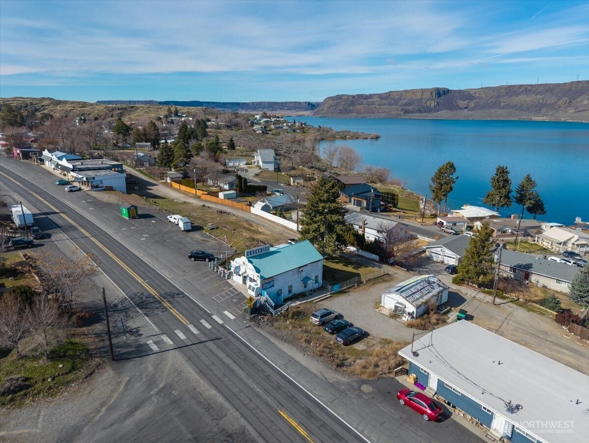 Rare opportunity to acquire a multi-parcel commercial property in the heart of Electric City with water views and approx. 0.3 miles of Coulee Blvd frontage offering outstanding visibility and traffic exposure. This offering includes four contiguous parcels featuring a convenience store and fishing tackle shop, stand-alone drive-thru coffee building, leased residential unit, outbuildings, and ample parking. Main building offers approx. 2,400 SF of combined retail and residential space including a storefront and 3BR/1BA apartment providing additional income. Detached garage and additional structures provide storage and flexibility. Property is sold turn-key with inventory, fixtures, and equipment included for immediate operation or repositioning. Coffee stand is equipped and ready for use or lease. Located on Coulee Blvd (SR-155), a high-visibility corridor with steady local and seasonal traffic near recreation and water access. Public water and sewer. Multiple parcels allow plenty of room for expansion, parking, or future development. No formal financials available. Rare mixed-use commercial compound with multiple income streams and long-term upside. Value-add opportunity—bring your vision and unlock the full potential. Ideal for investor or owner-user seeking visibility, flexibility, and growth