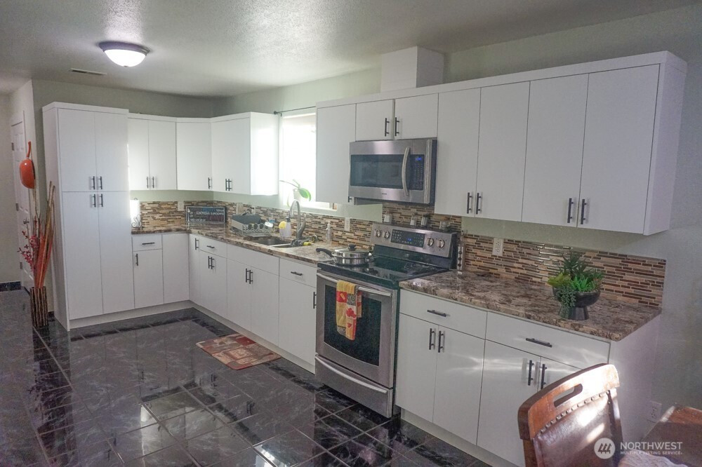 Beautiful 5 BR 2 BA home on 5+ irrigated acres with shop. Owned by original owners for over 30 yrs. Walk inside the home and be greeted by the tile floors and spacious living room. The kitchen has tiled floors, new white cabinets with granite counters. Rooms are spacious with new LVP floors, white trim and doors. Mstr BR has a walk-in closet, full BA with tiled shower, tiled floors, new granite counters and LED lighting. Main BA features dual vanity sinks, granite counters with tiled shower. Home has had many upgrades over the years and homeowner pride shows. Shop is 2,160 sq ft, additional outbuildings, animals allowed, underground sprinkler lines to irrigate property, no HOAs, room for your toys. Schedule a showing before its gone.