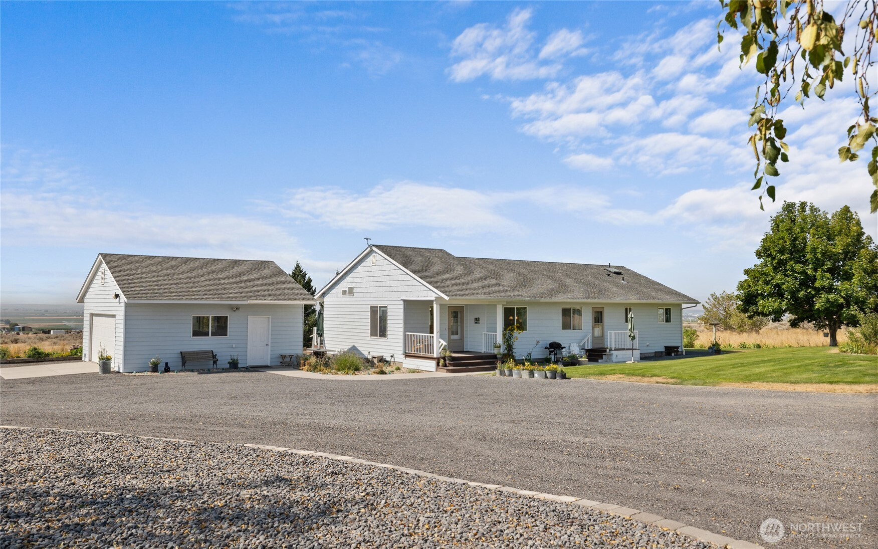 VIEWS VIEWS VIEWS Sunrise to Sunset 360 degree! Adorable Rambler has it all: new roof, windows, exterior & interior paint, flooring, and PLENTY of space on shy 5 acres, privacy & views! Light & bright throughout this beautiful home w/open concept living & VIEWS galore of surrounding hills sunrise to sunset. Huge, detached shop w/ office-workshop & loft area, for all your toys & storage. PLUS, detached two car garage & ADU craft/work/guest cabin with ½ bath & kitchenette. Mature landscaping, several garden areas, fruit trees & manicured lawns. Tons of parking with full RV hookups & gravel driveway. Great private location with easy commute to Hwy 28 & I-90. Close to town, golf, parks & shopping.