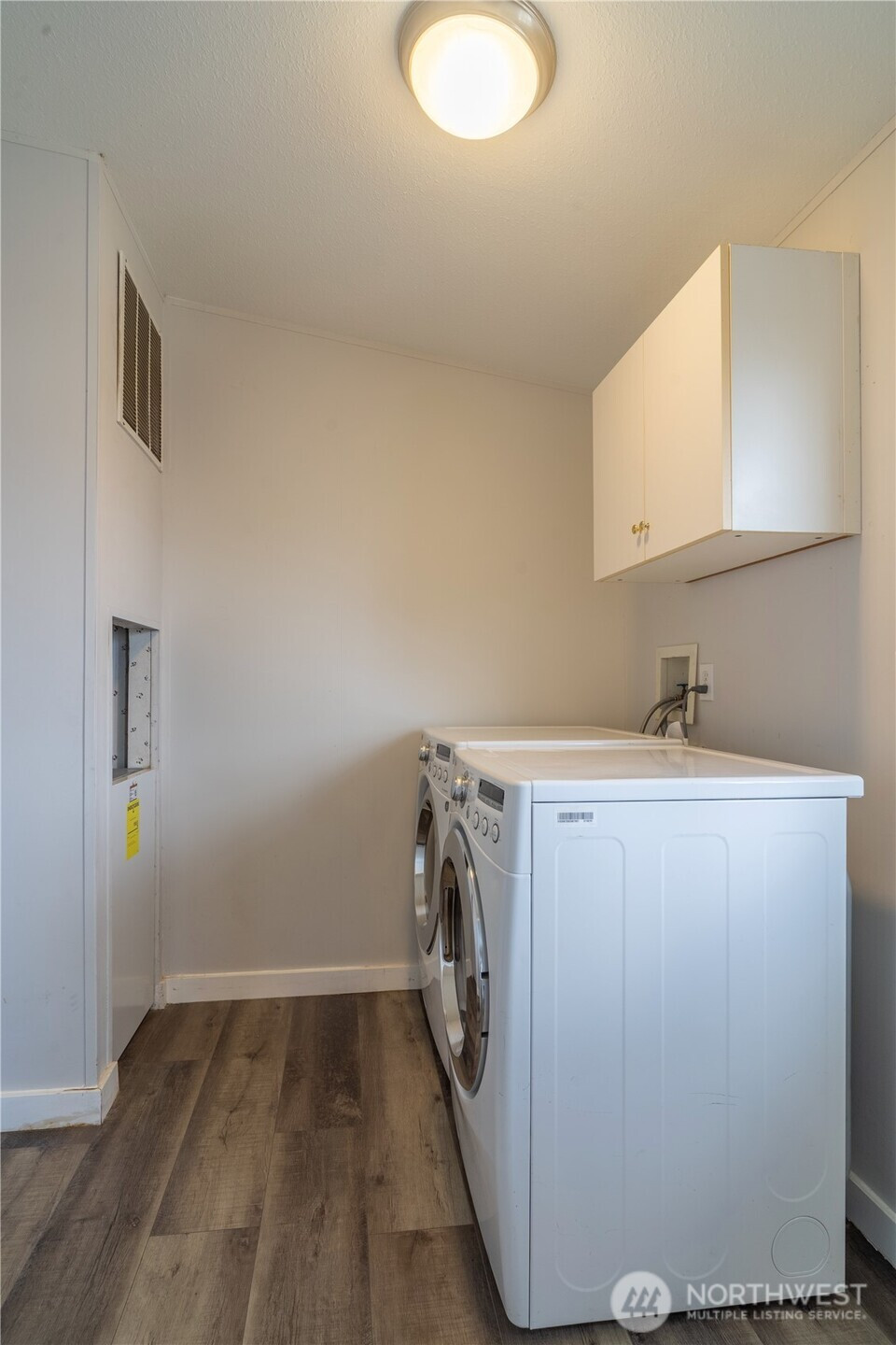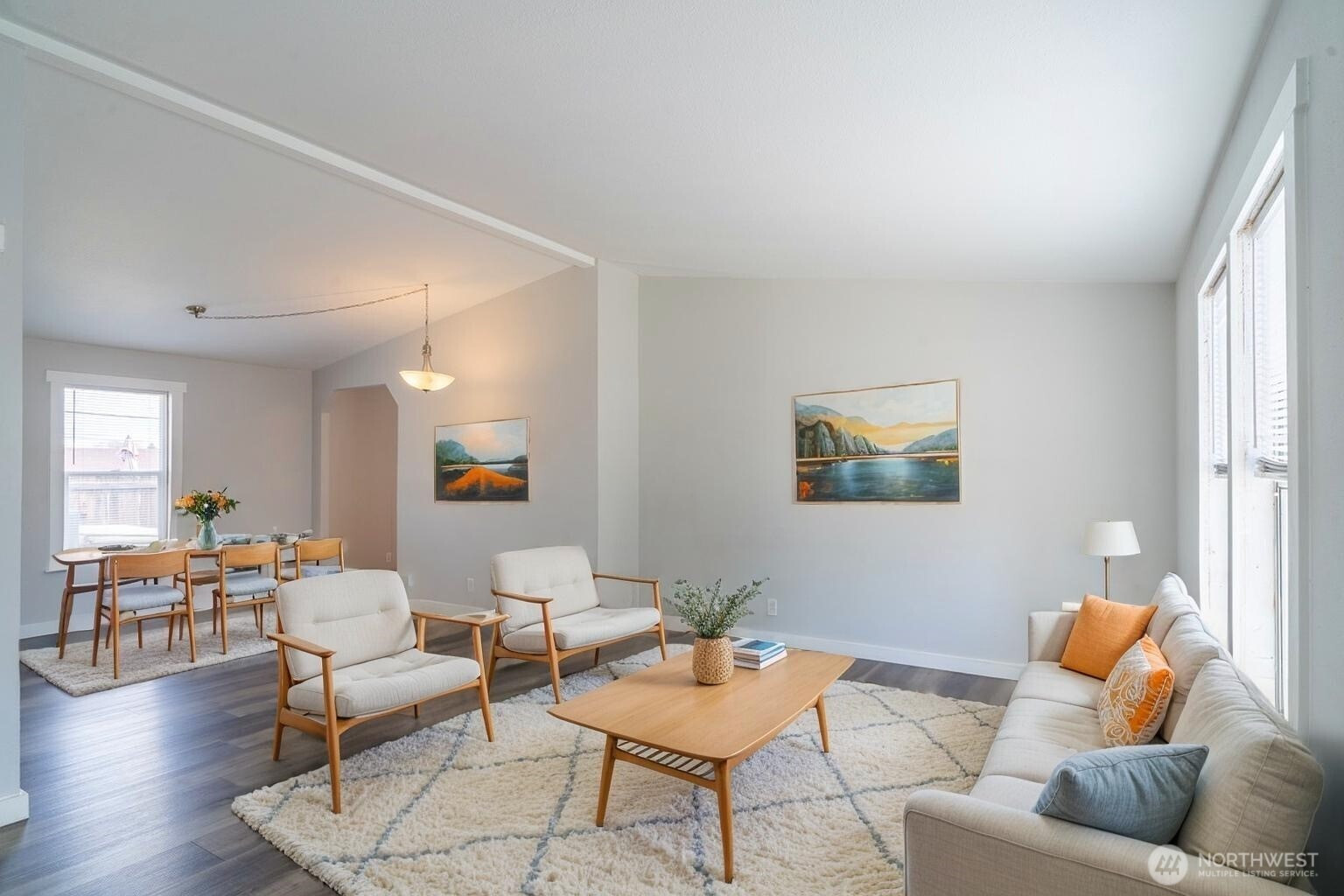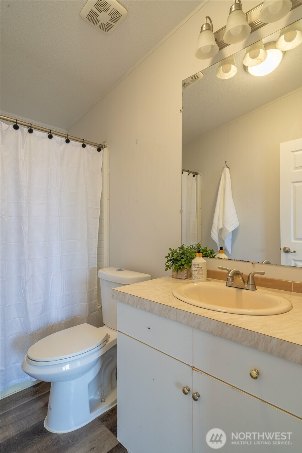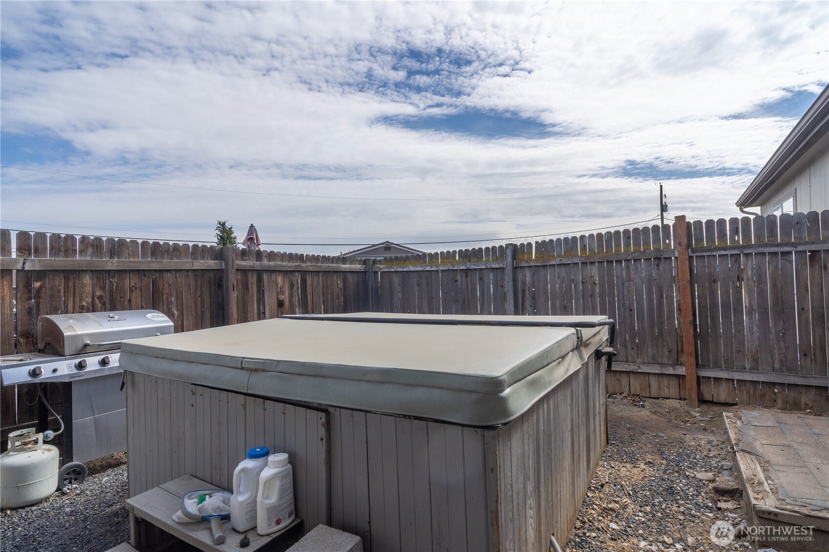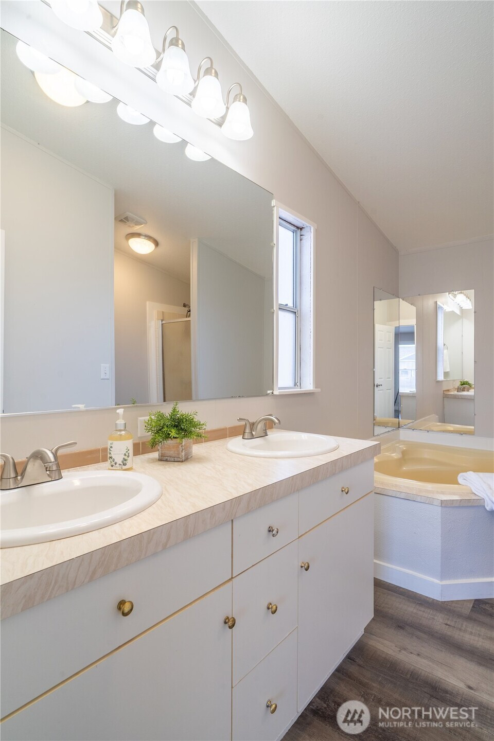 Tucked onto a quiet corner lot on Moses Lake's sought-after Guffin-Eccles, this 3-bedroom, 2-bath home pairs a fresh, modern feel with an unbeatable location. Steps from the water and walkable to downtown shops, with Moses Lake High and Frontier Middle in-district. Inside, luxury vinyl plank flooring and fresh paint run throughout an open, light-filled floor plan. The spacious living room flows into a dining area and open kitchen featuring a center island, breakfast bar, abundant cabinetry, and vaulted ceilings that keep things bright and airy. Thoughtfully split for privacy, the primary suite offers a walk-in closet and spa-style en-suite with dual vanities and a soaking tub. Two additional bedrooms and a full bath sit on the opposite side - ideal for guests, a home office, or hobbies. A dedicated laundry room with modern washer and dryer, freezer, and extra storage adds everyday ease. Outside, enjoy a partially fenced area perfect for a hot tub, decorative pavers framing a welcoming gravel patio for evening gatherings, peek-a-boo lake views, and two storage sheds. This manufactured home is on a sturdy concrete block foundation. A covered carport plus ample off-street parking complete the package. Central A/C, electric forced-air heat, updated flooring, and fresh paint - all at an approachable price point. Schedule your showing today.