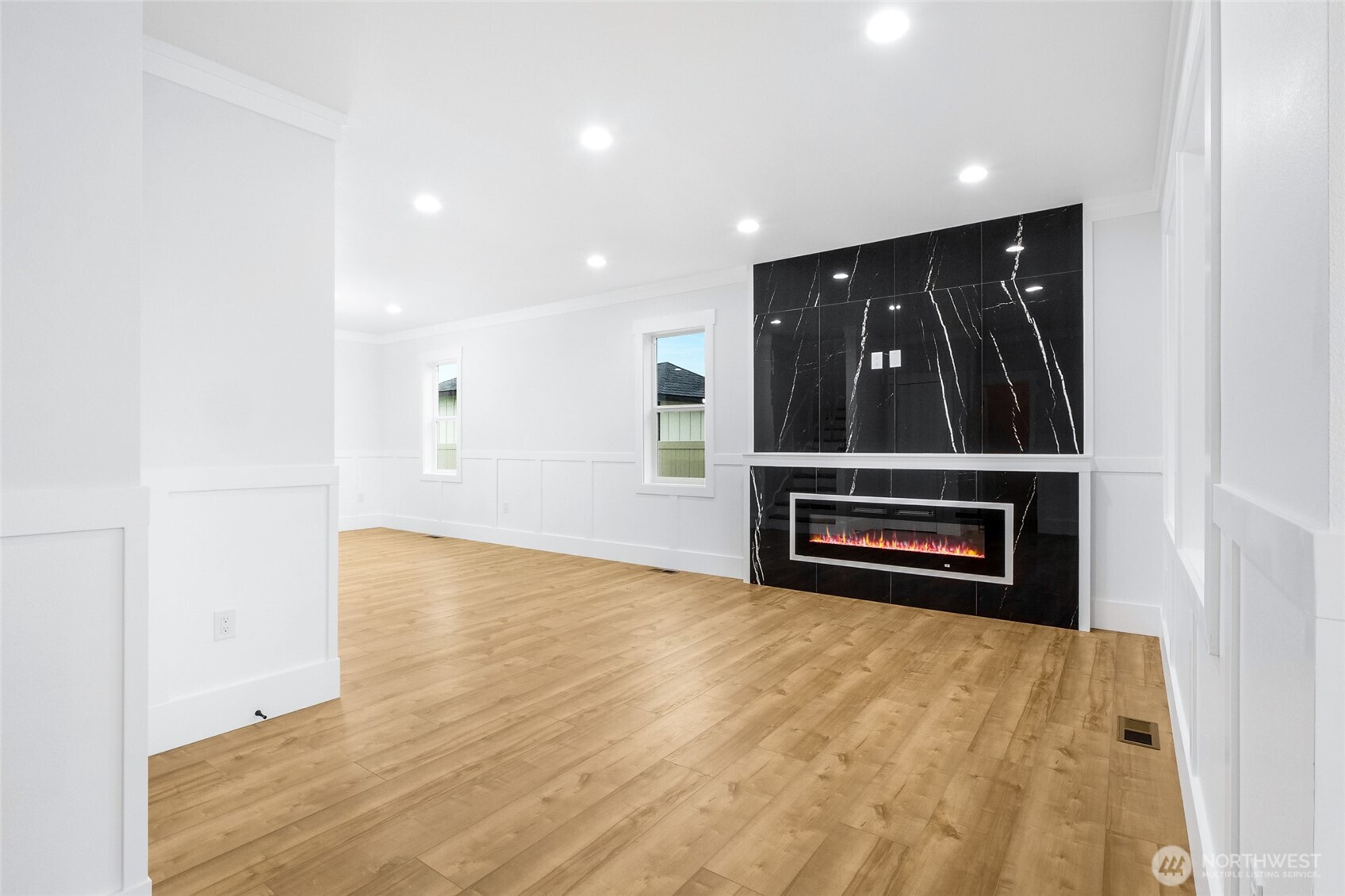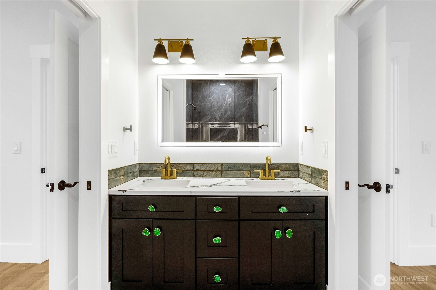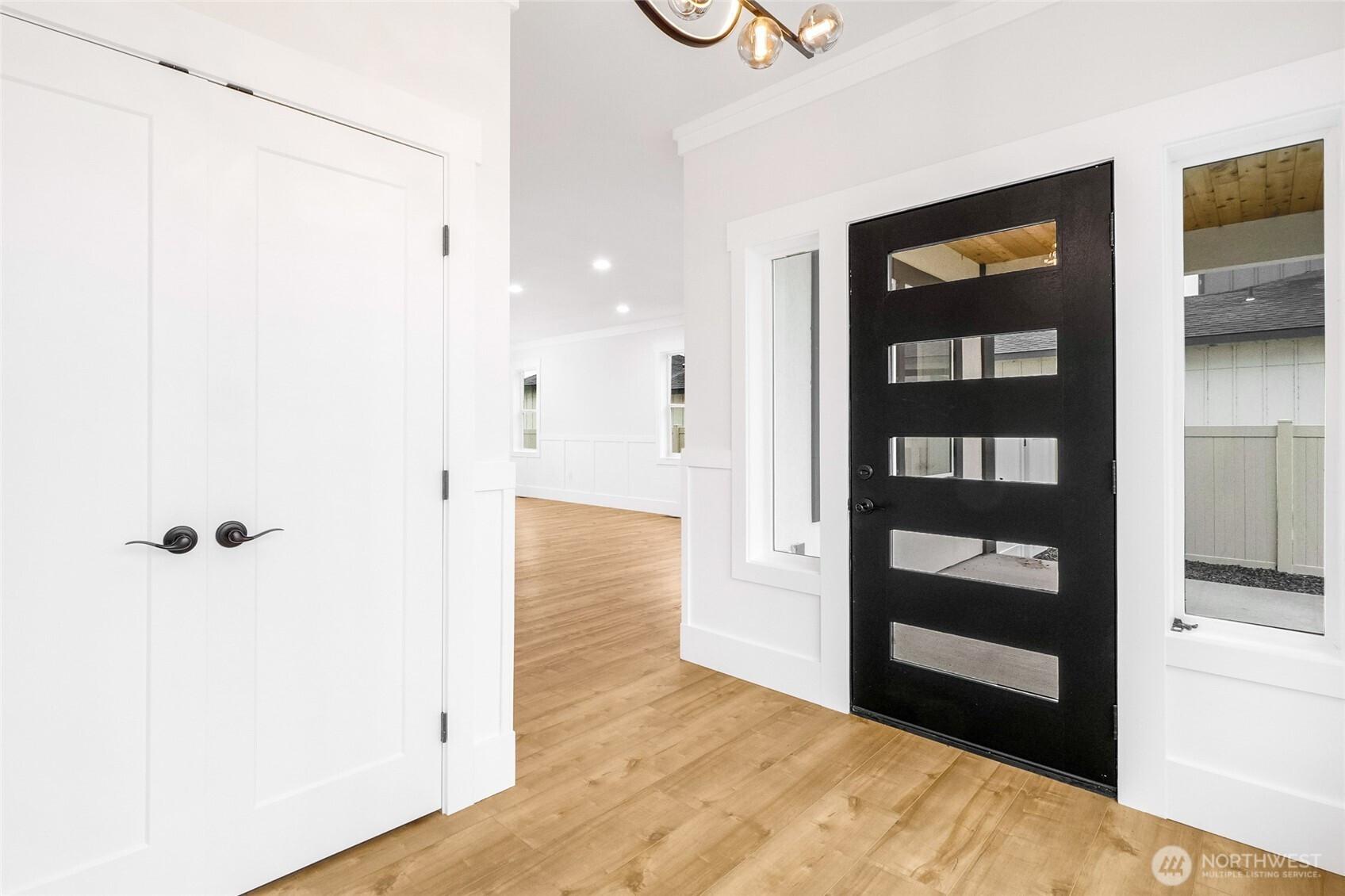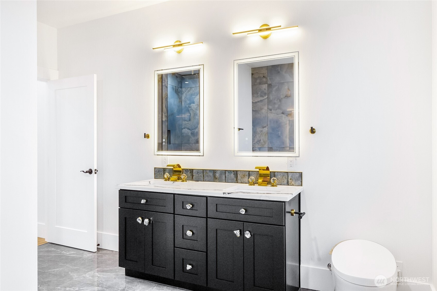 This brand-new modern lakefront home delivers unmatched style, and breathtaking scenery. The main floor primary suite designed for relaxation, featuring a luxurious soaker bathtub and refined finishes that create a peaceful retreat. Upstairs, a second primary suite opens to a private deck with panoramic lake views - your own front row seats to sunrise and sunsets. The home offers 4 bedrooms plus a den giving you space for work or guests. A fully finished garage with painted walls and sealed floors add both convenience and sophistication. Outside, your private dock (currently being installed) makes it easy to enjoy everything lake living has to offer. This property delivers the ultimate lakefront lifestyle.