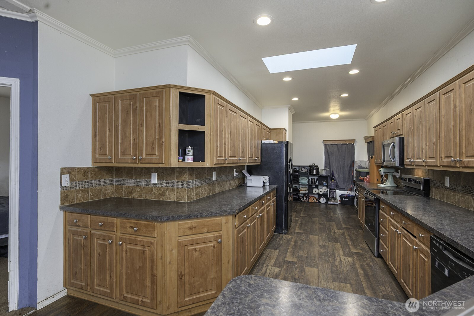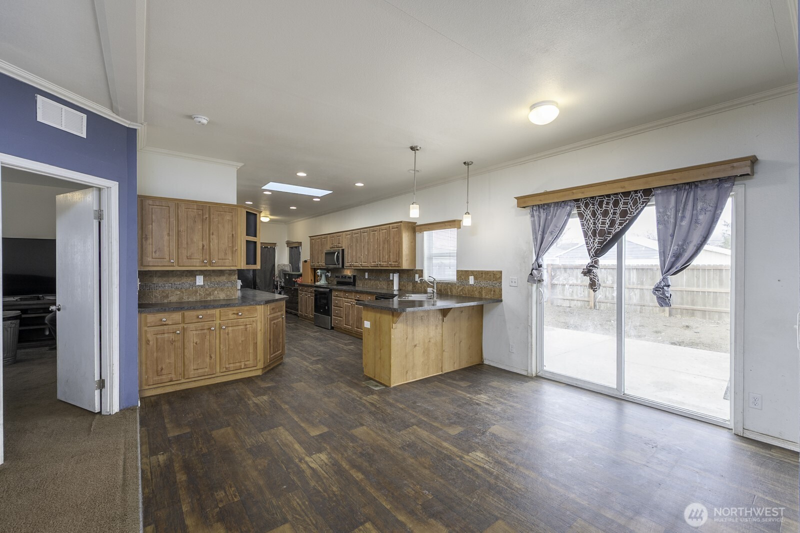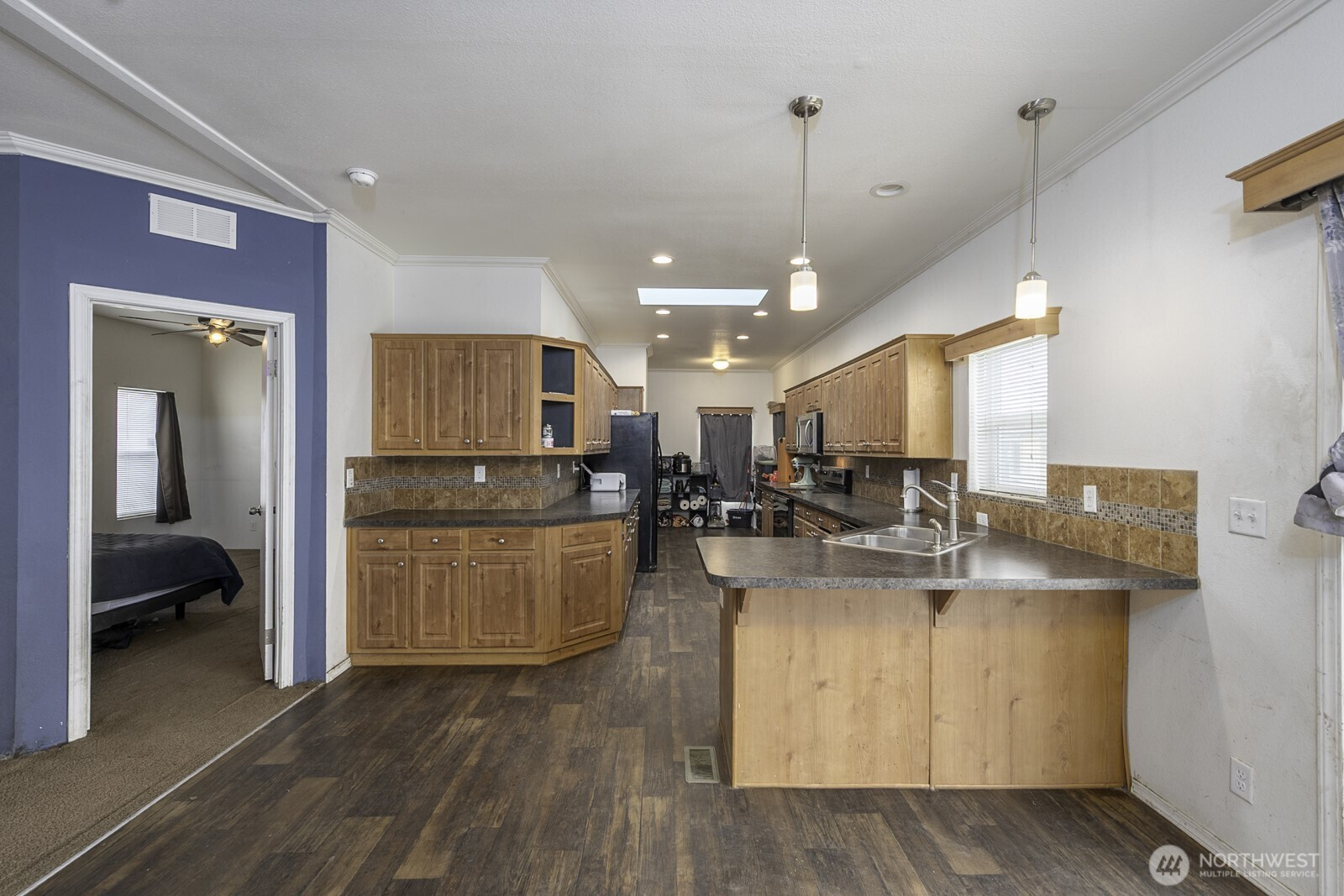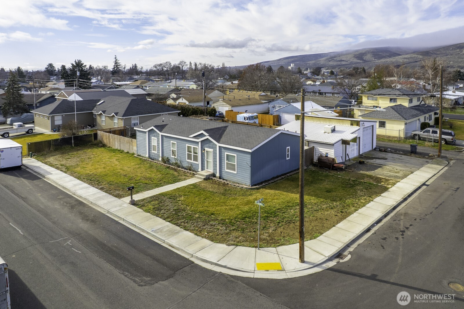 This one hits all the buttons! This 1,512 sqft, 2018 MH has fresh interior paint, central heat and a/c, is on a double lot with a large fenced yard, patio, has a chicken coop,and a 1000+ sqft insulated shop with heat, radiant heat flooring, and a 3/4 bath, that is plumbed for an additional water heater. This property has alley access as well as a place to park your RV.